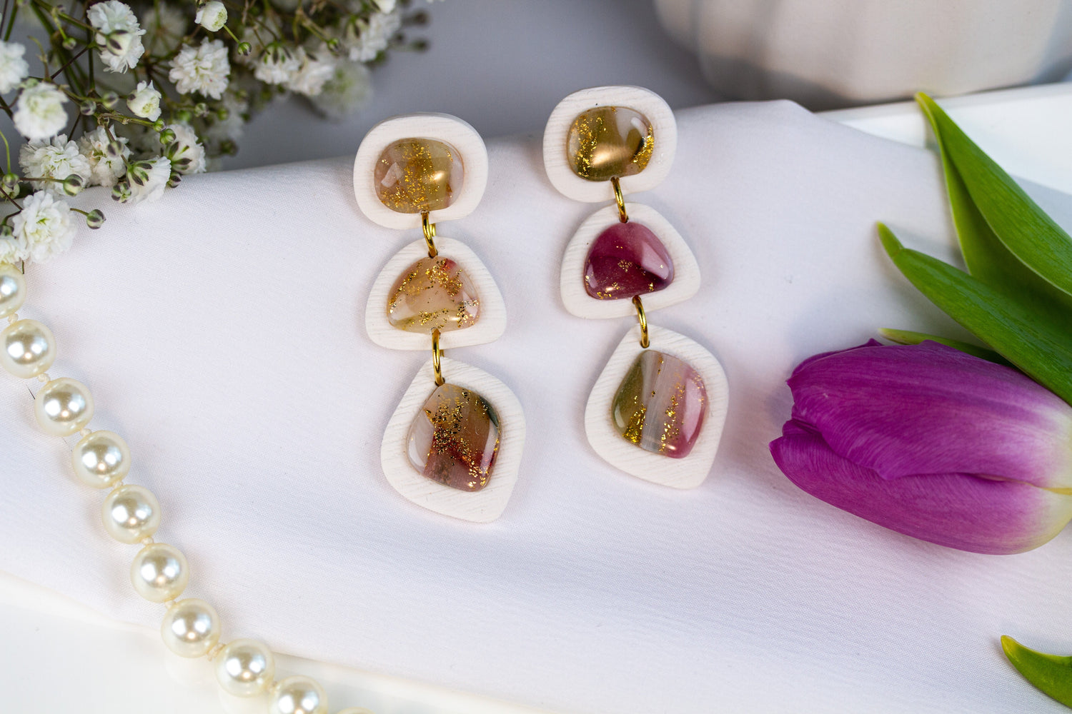 Statement Ohrringe – Dangle 3-teilig – Amber Bloom Collection