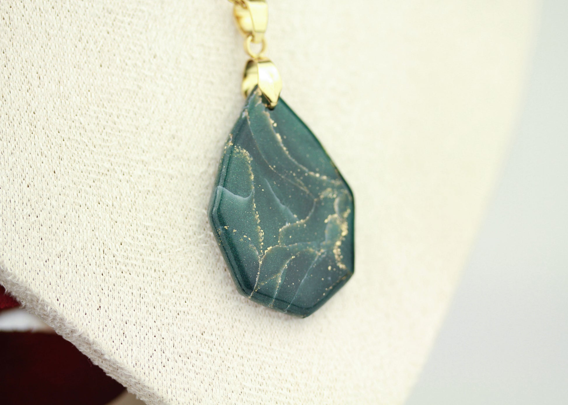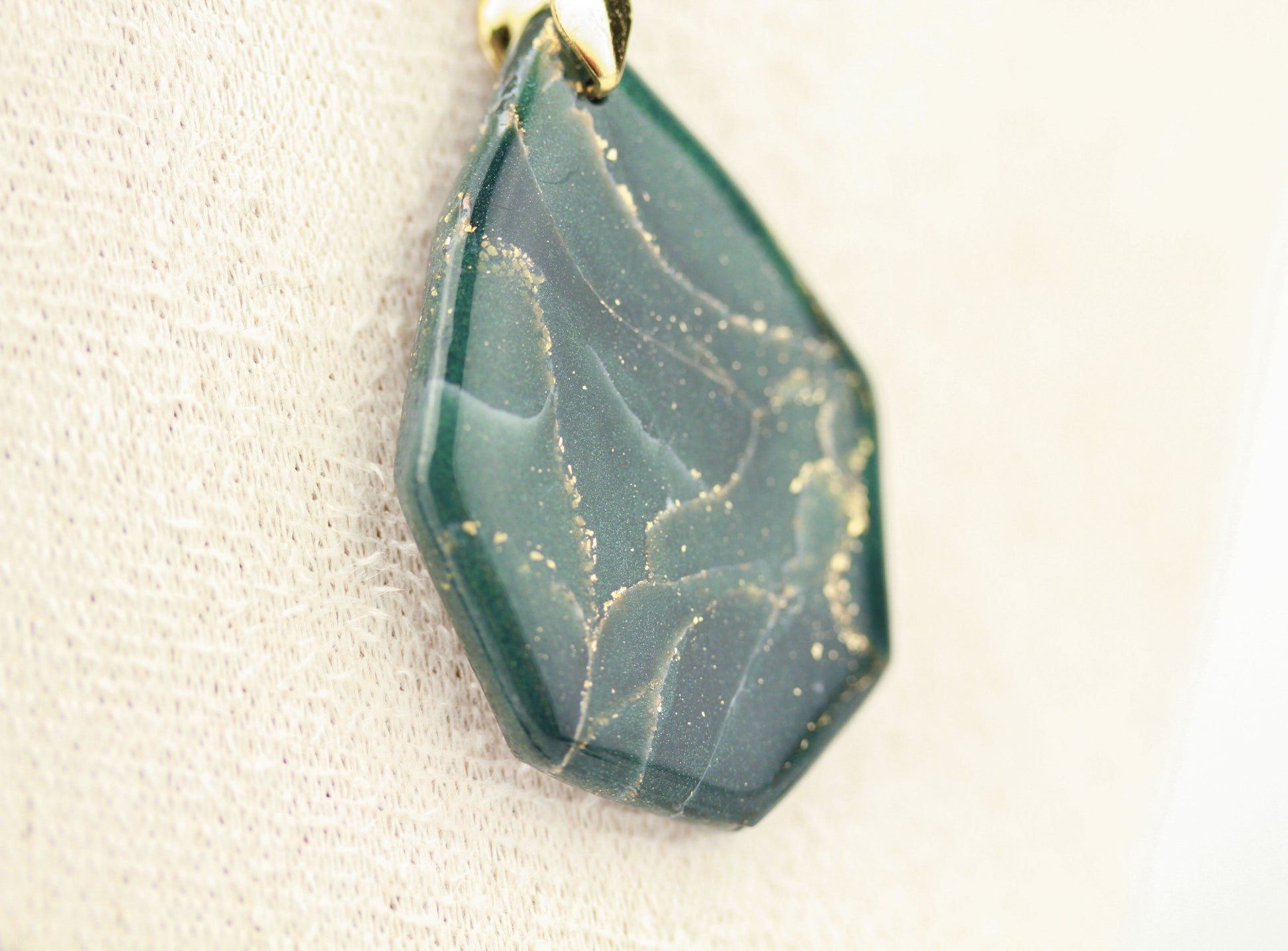 Dunkelgrün-Gold Marmor Ohrringe & Halskette – Elegantes Polymer Clay Set | Kollektion Verdora