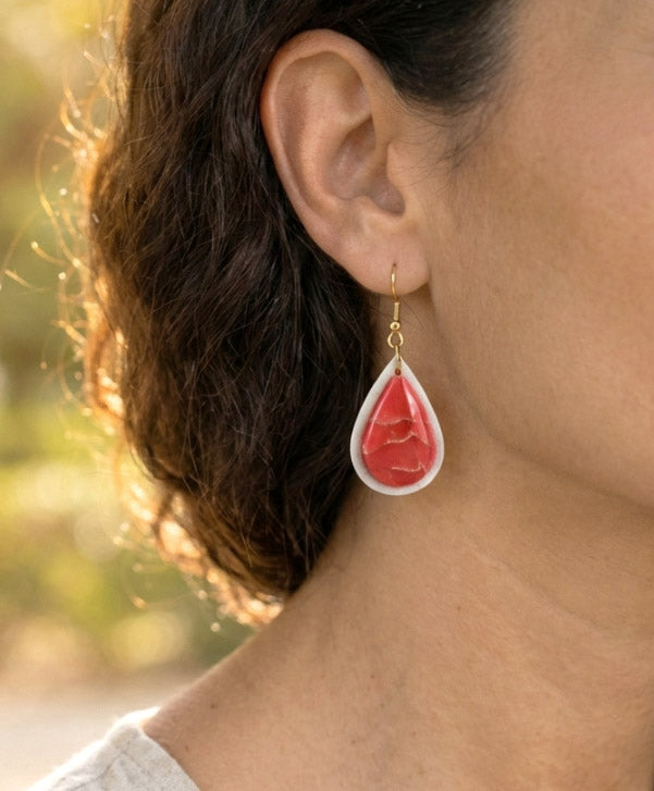 Rot-Weiß Marmor Tropfen Ohrringe – Handgefertigte Polymer Clay Schmuckset