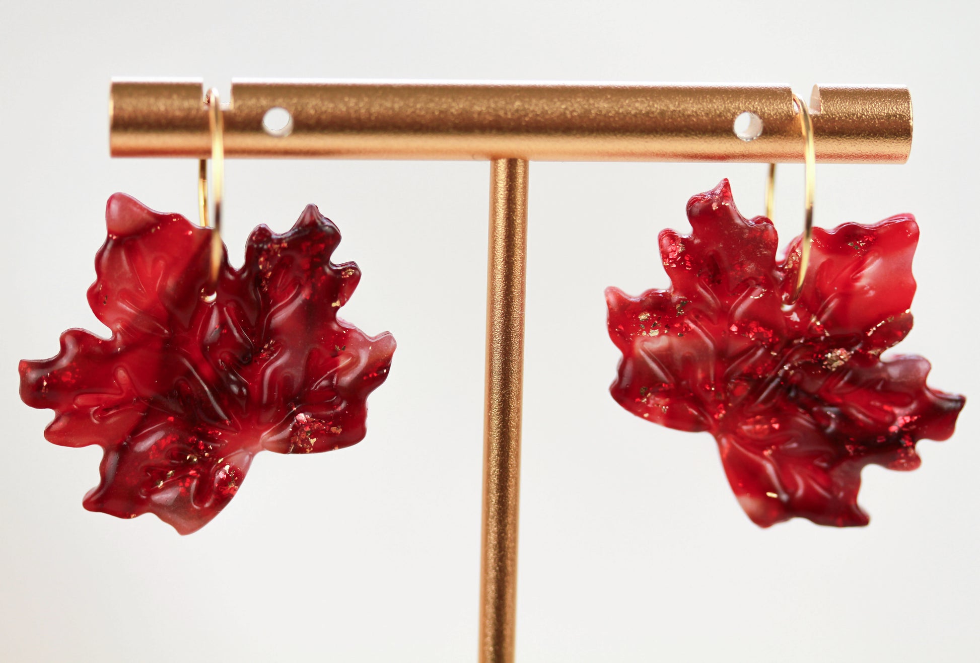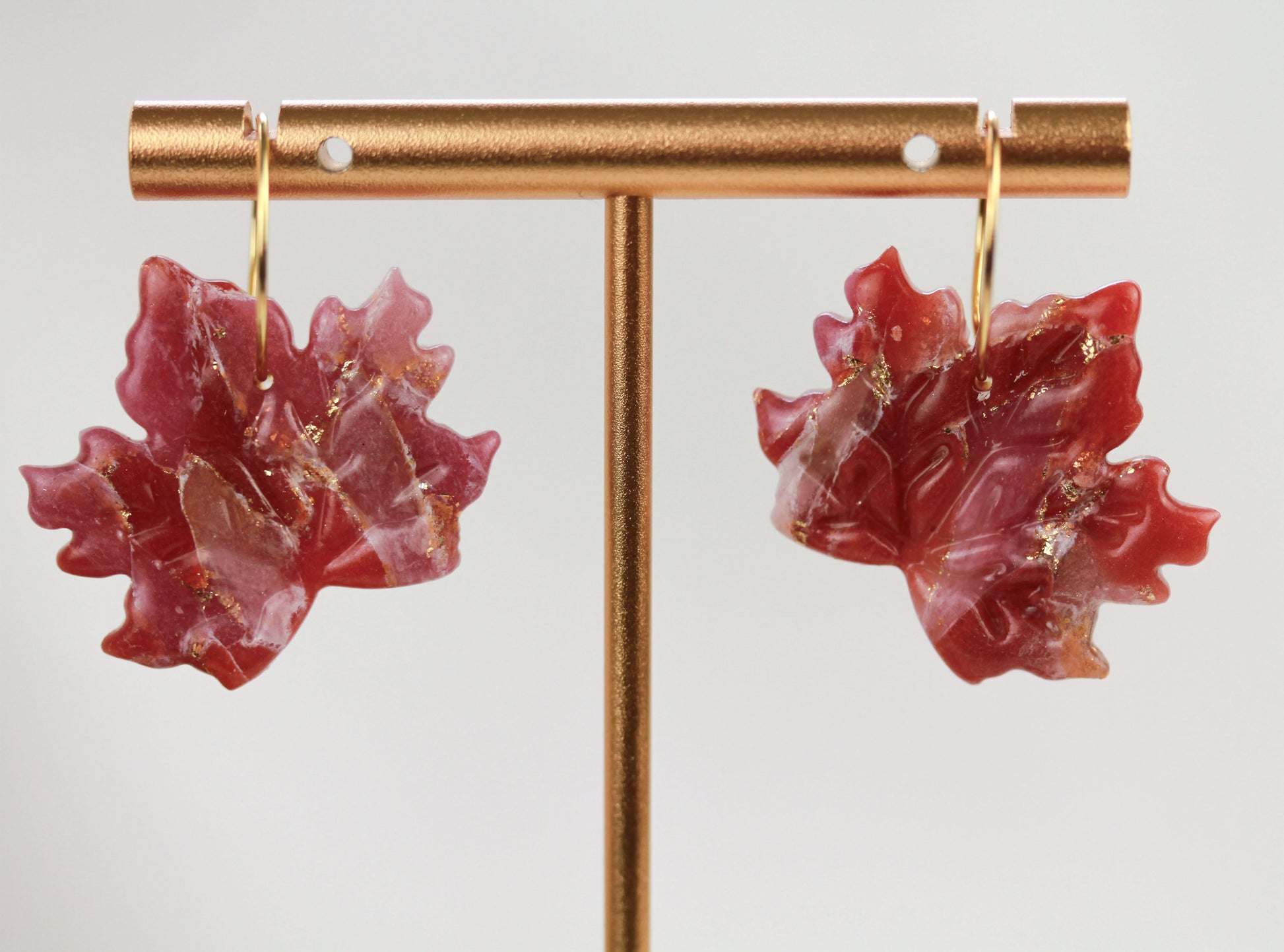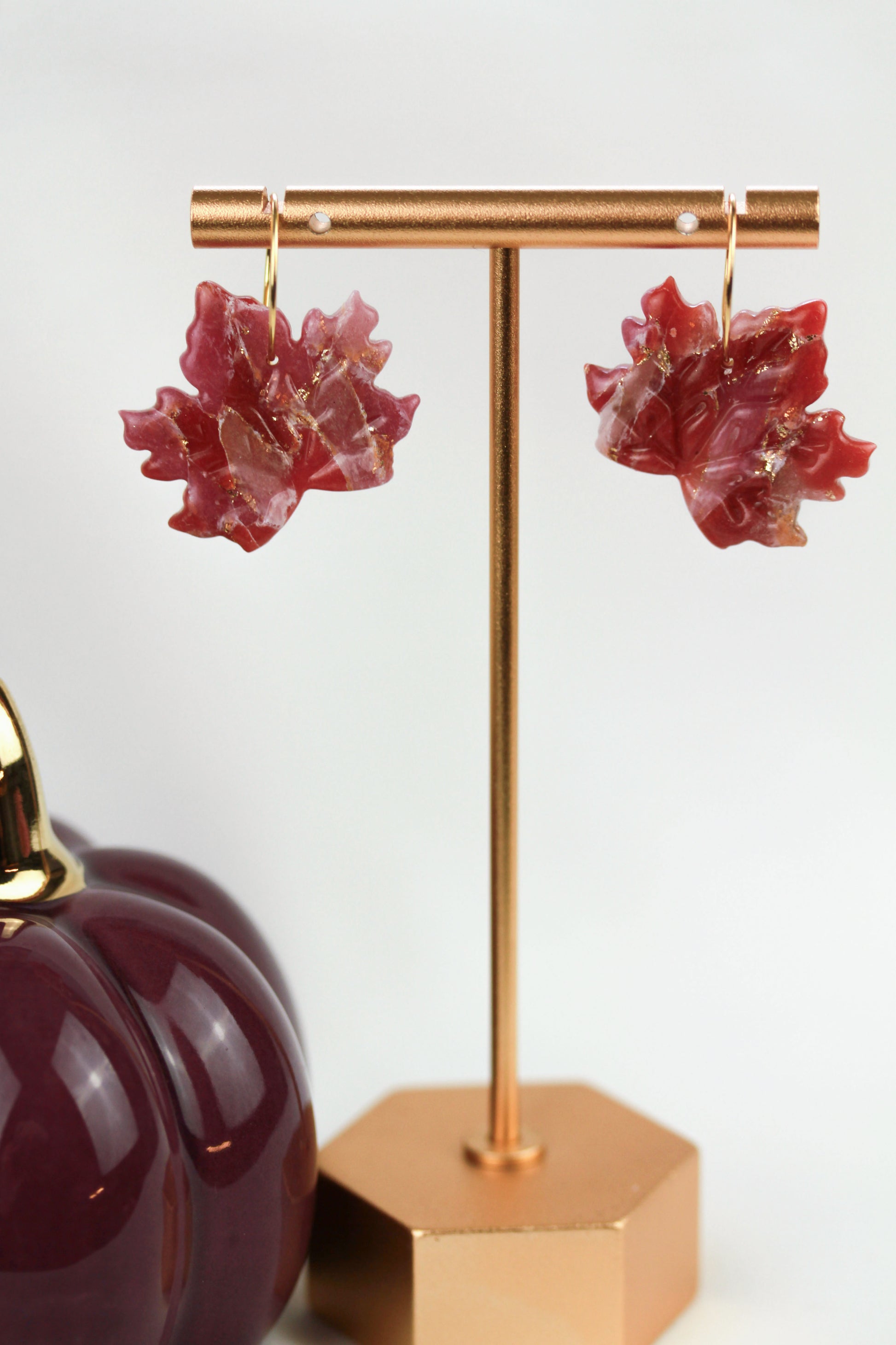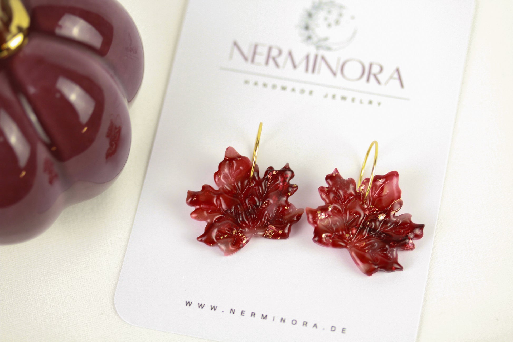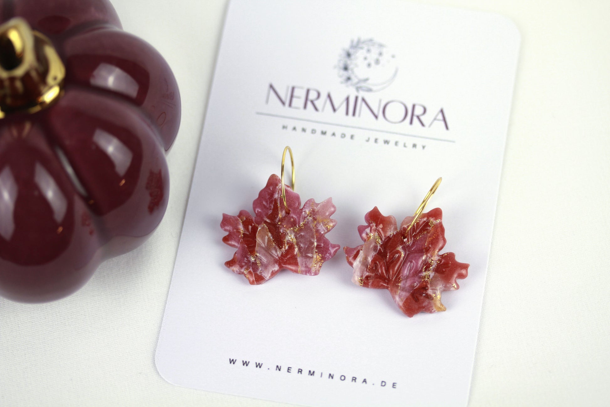 Ahornblatt Ohrringe – Handgefertigte herbstliche Polymer Clay Ohrringe