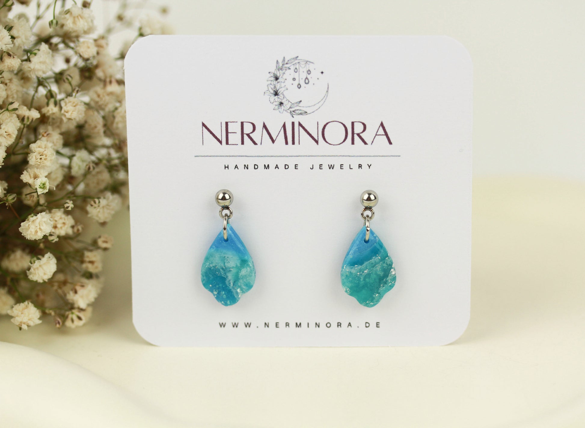 Diese eleganten Ohrringe aus Polymer Clay verbinden maritimen Charme mit Alltagstauglichkeit und einem Hauch von Eleganz. In Blau und Silber gehalten, erinnern sie an die beruhigende Marmorierung des Meeres und werden durch glitzernde Kristallakzente dezent veredelt. Perfekt, um Ihrem Look einen stilvollen und vielseitigen Akzent zu verleihen.