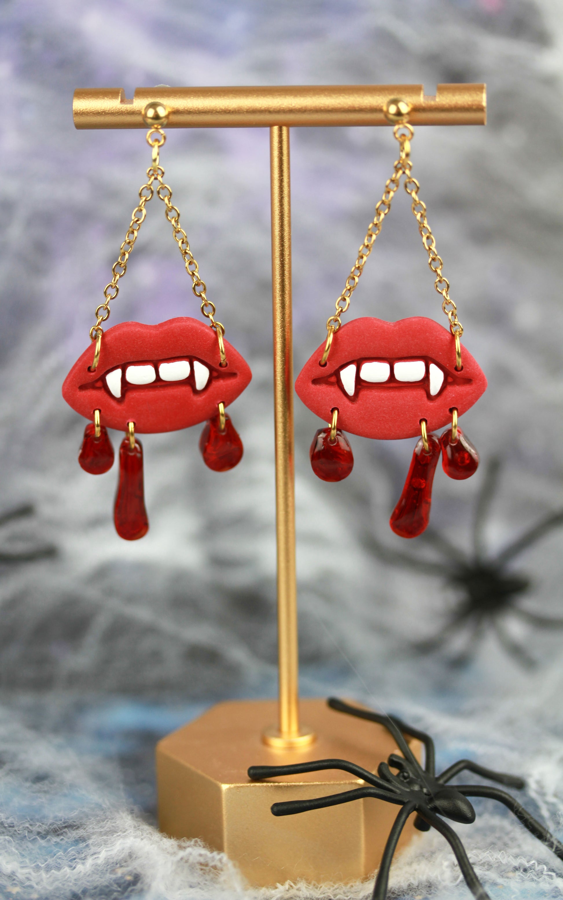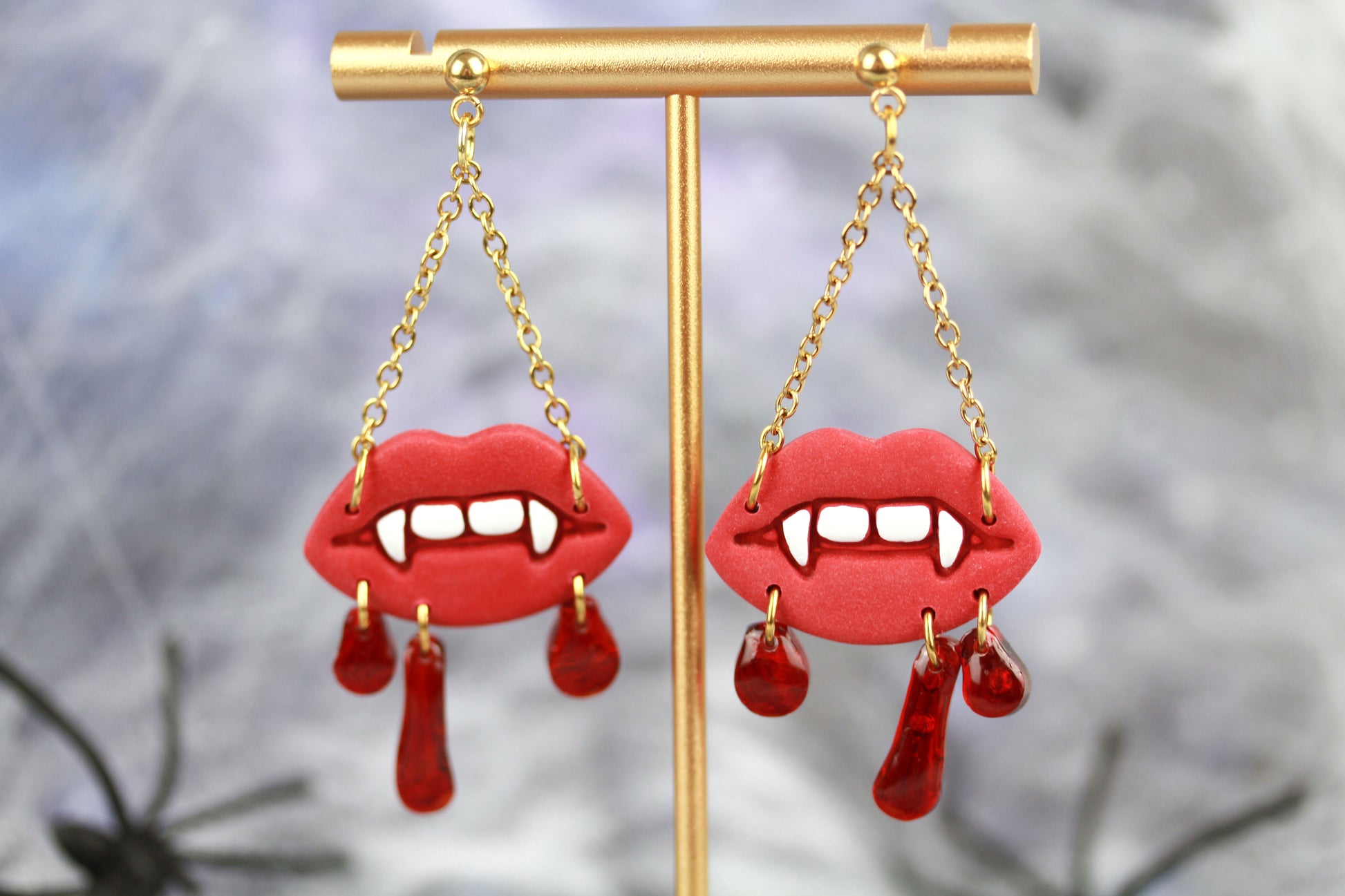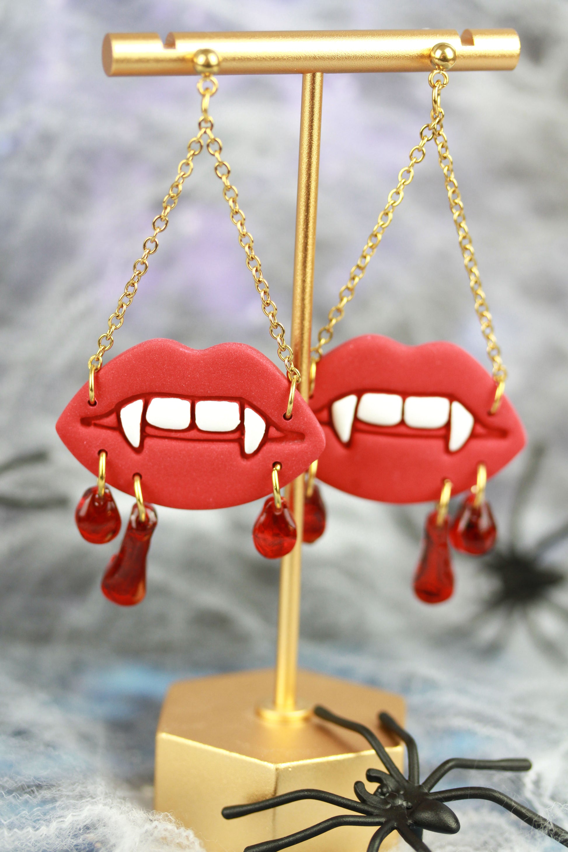 Blutige Lippen Ohrringe – Handgefertigte Horror Statement Ohrringe | Halloween Edition