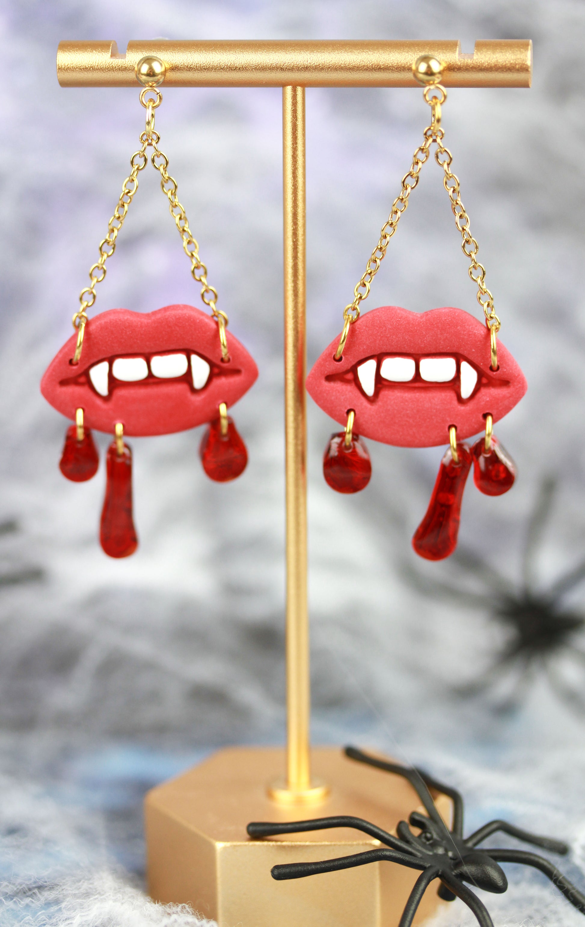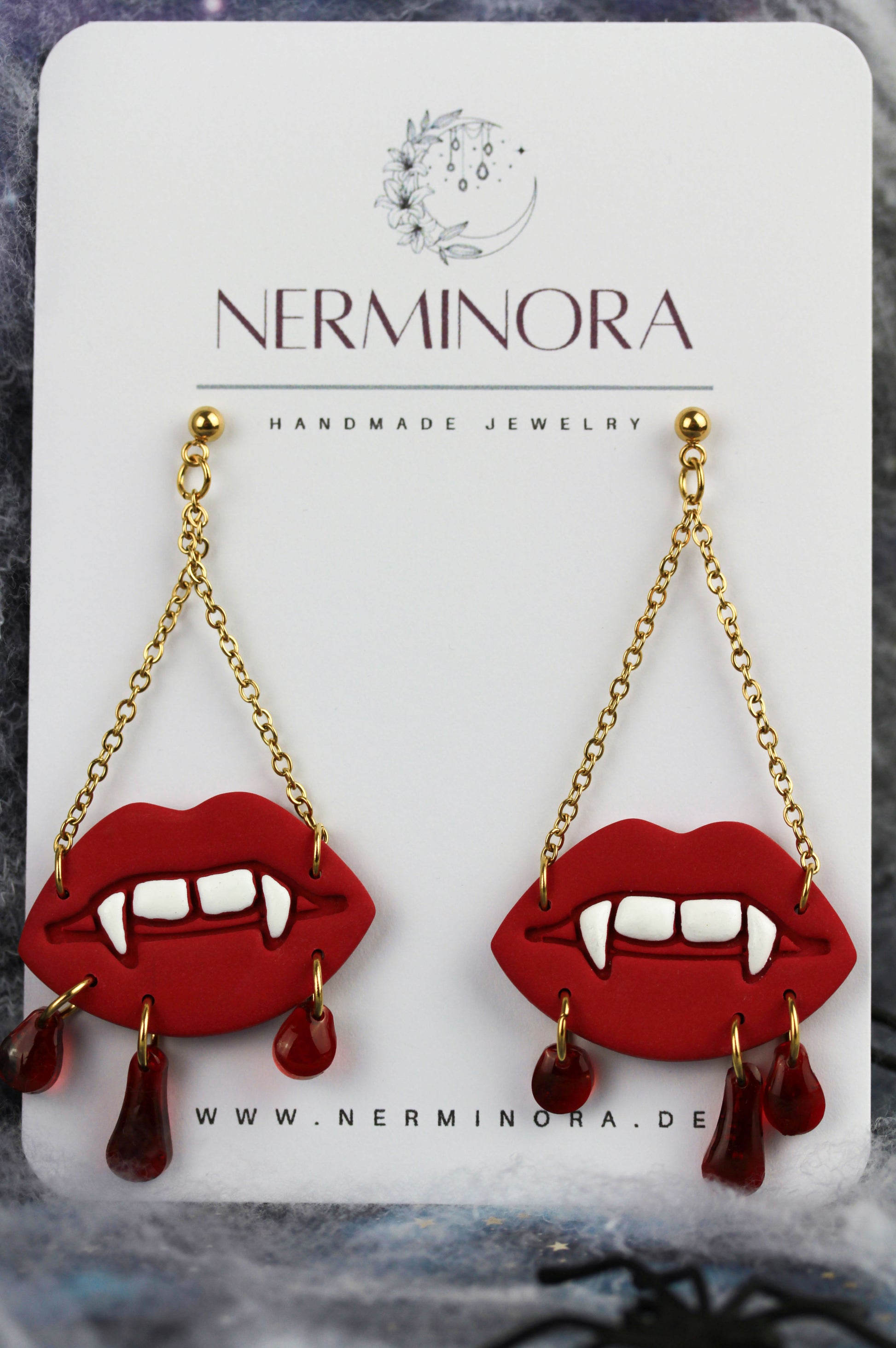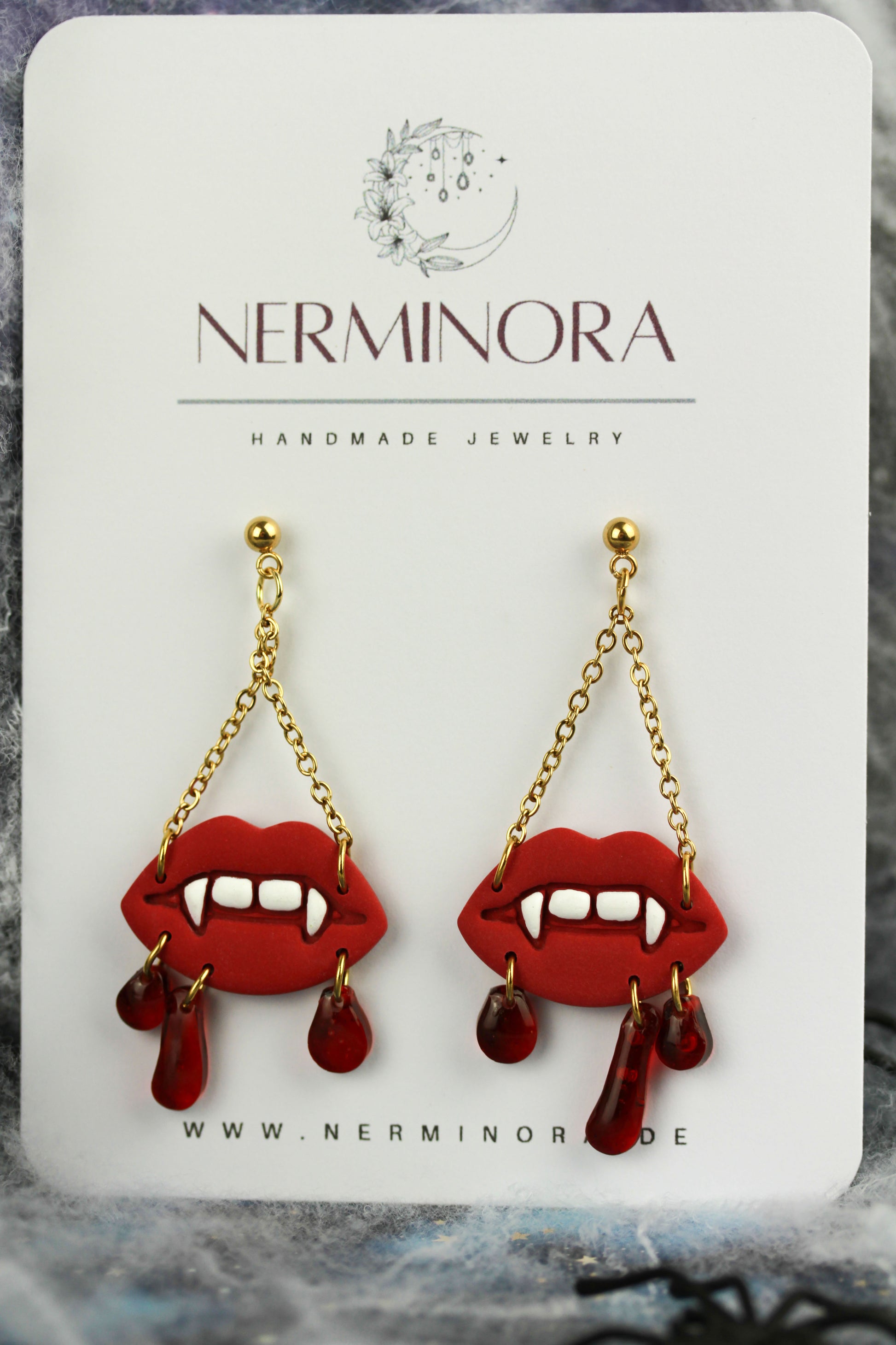 Blutige Lippen Ohrringe – Handgefertigte Horror Statement Ohrringe | Halloween Edition