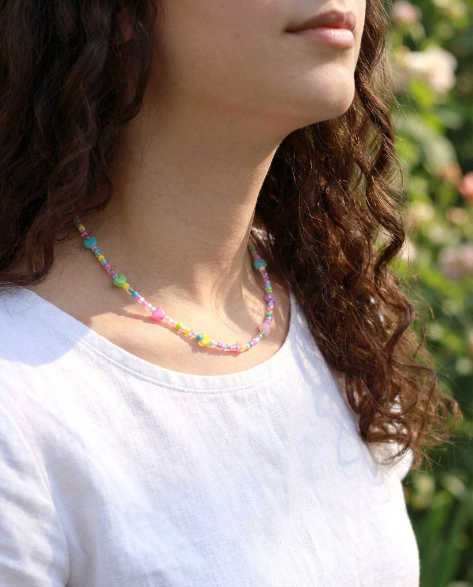 Bunte Herzchen Perlenkette – Handgefertigte süße Perlenhalskette