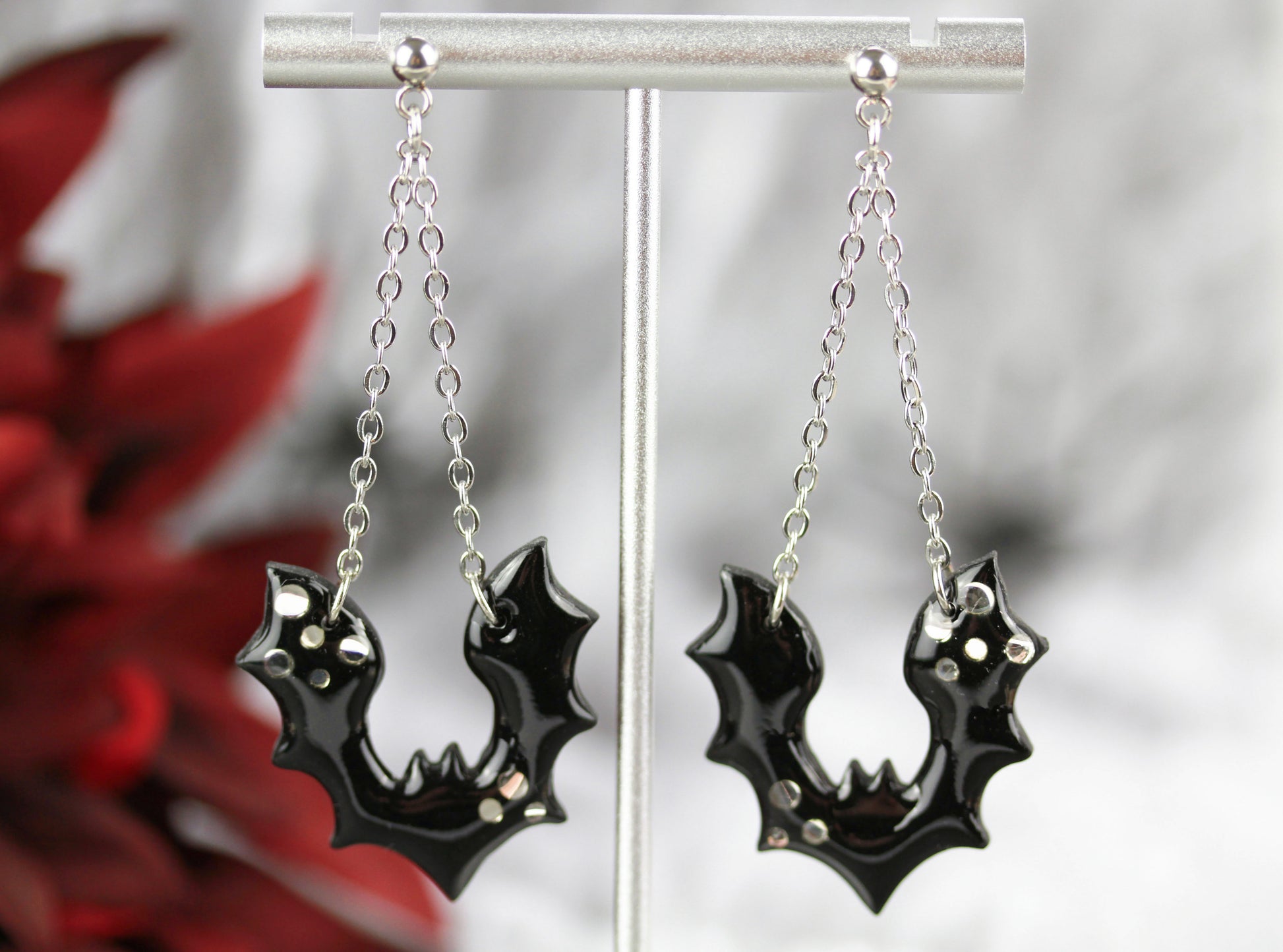 Fledermaus Ohrringe mit Kettengliedern – Polymer Clay Statement | Halloween Edition