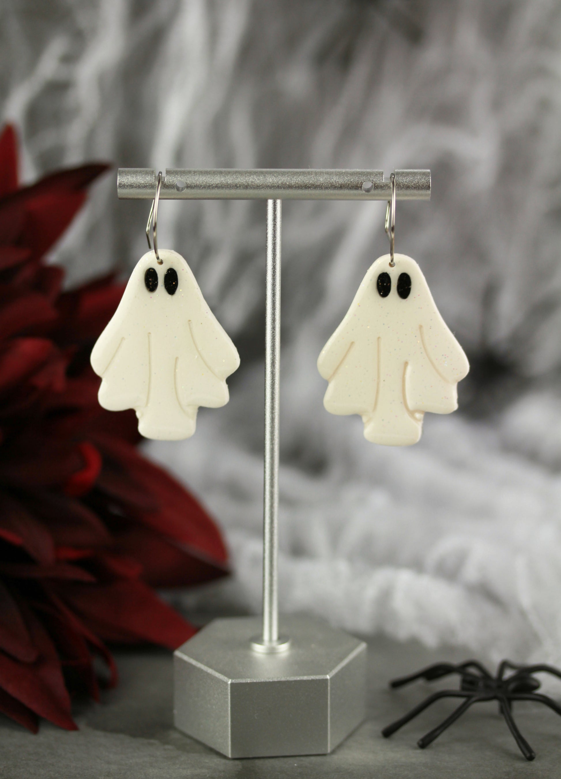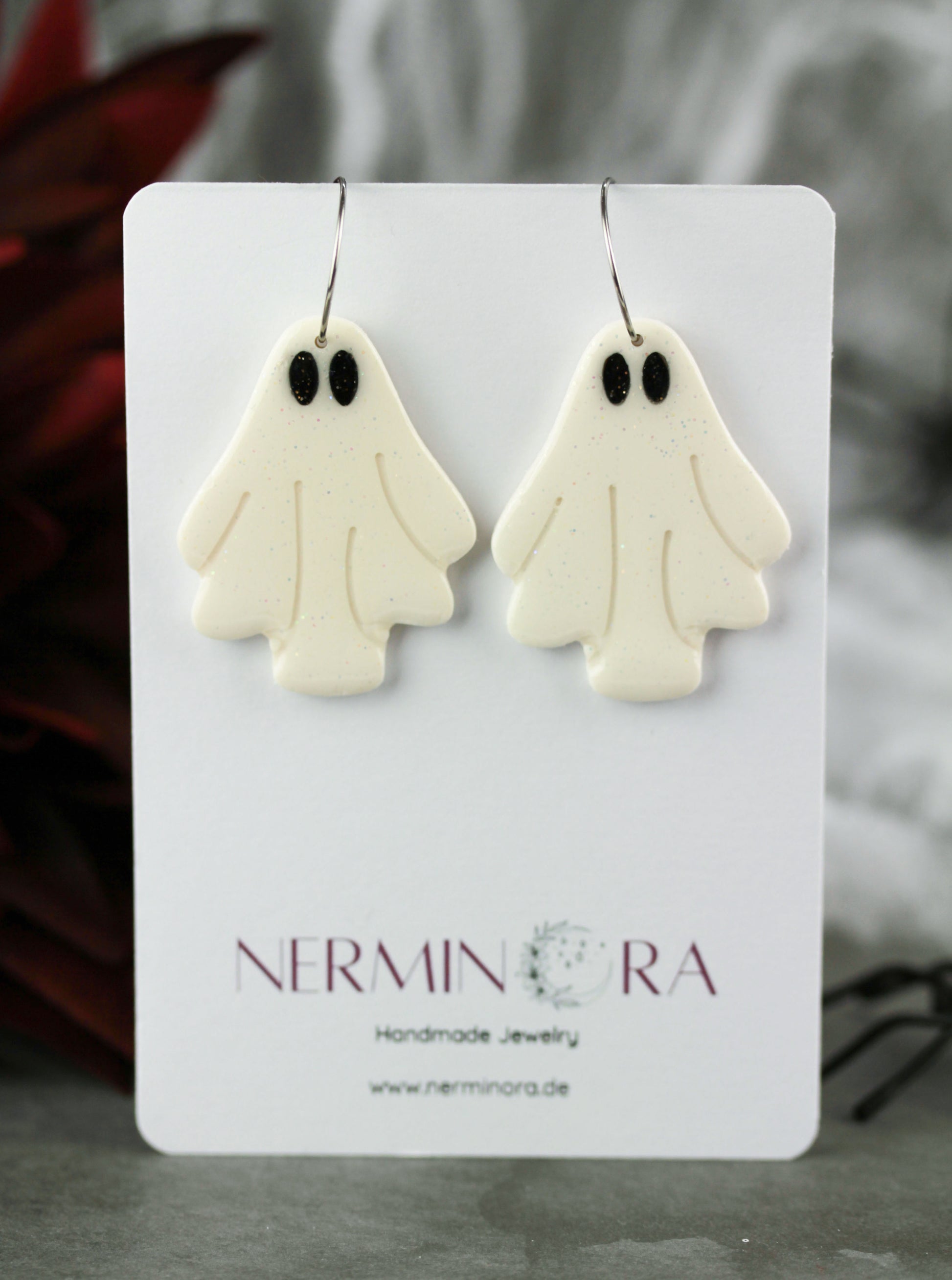 Glitzer Geister Ohrringe – Handgefertigte Polymer Clay Statement | Halloween Edition