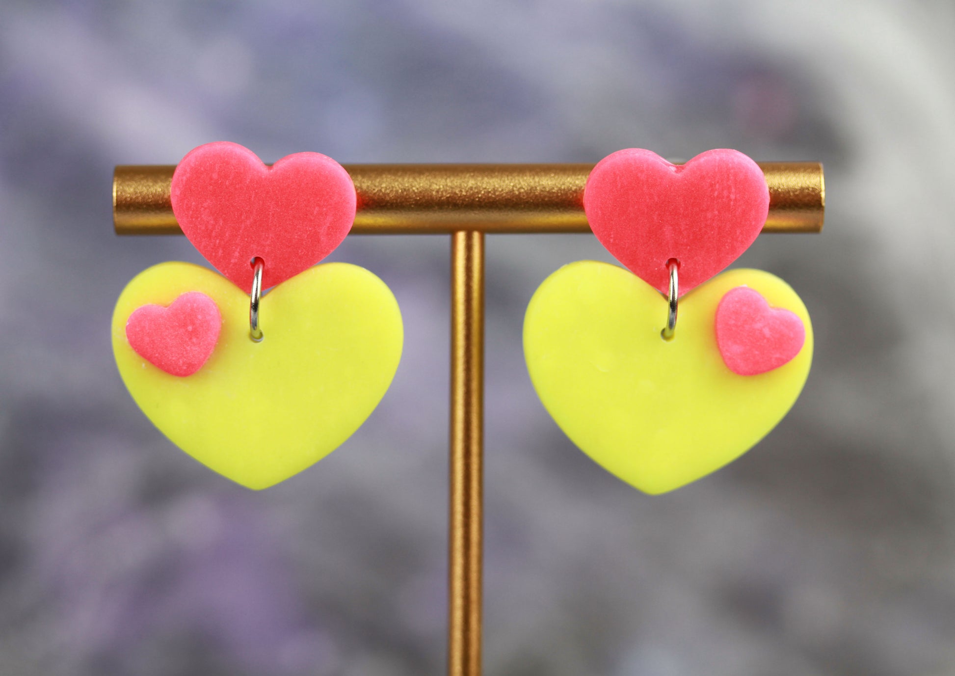 Diese gelb-pinken Glow in the Dark Herz Ohrringe aus Polymer Clay bringen leuchtende Akzente in deine Halloween-Styles. Sie strahlen im Dunkeln und sorgen für einen verspielten, einzigartigen Look, der garantiert alle Blicke auf sich zieht.