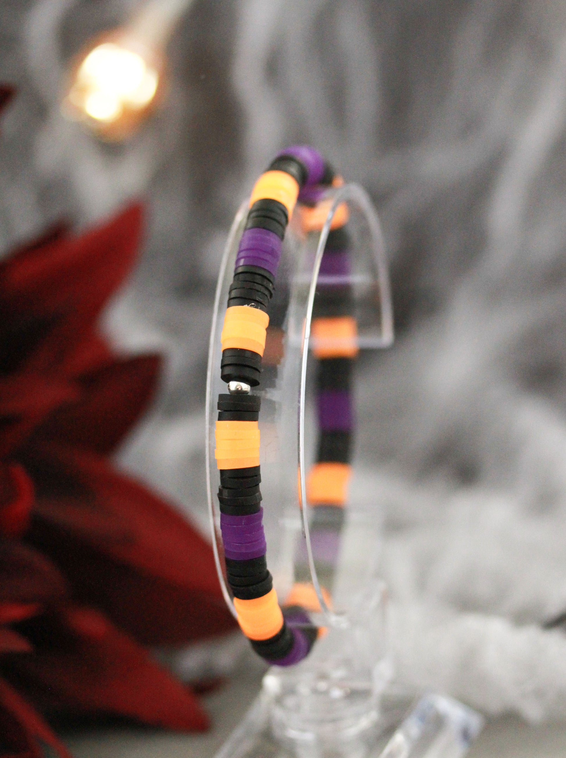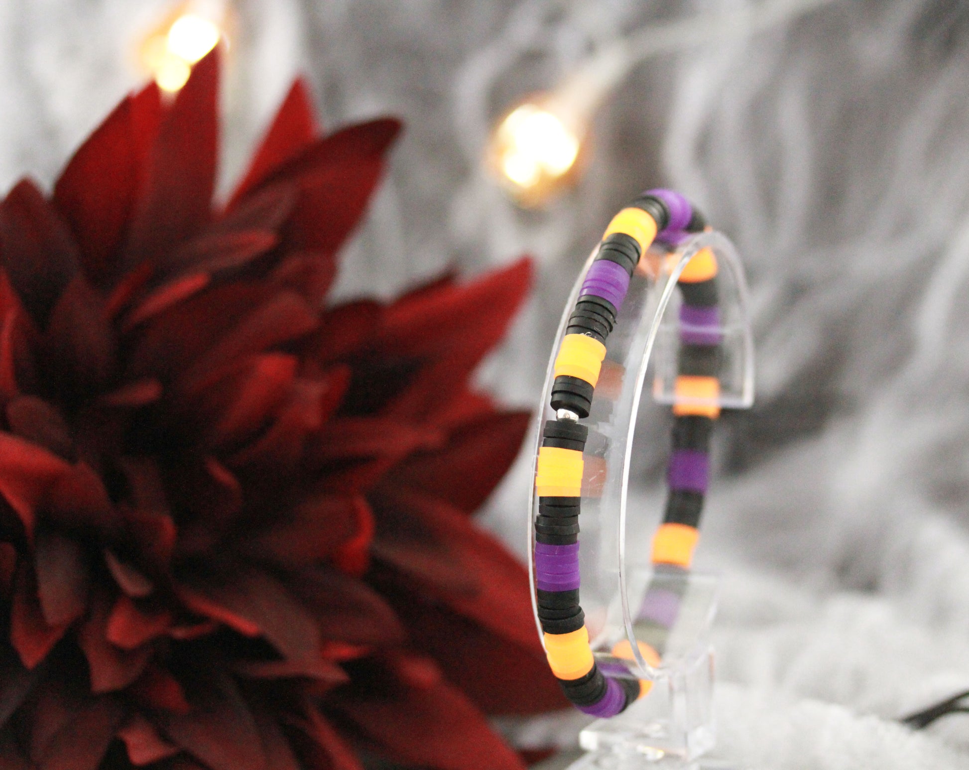 Diese verspielte Schmuckstücke bestehen aus 6 mm großen Katsuki-Perlen in den klassischen Halloweenfarben Orange, Lila und Schwarz. Perfekt, um deinem Outfit zur Gruselzeit einen farbenfrohen und stilvollen Akzent zu verleihen. Leicht und angenehm zu tragen – ideal für Halloweenpartys oder den Alltag mit einem Hauch von festlicher Stimmung.