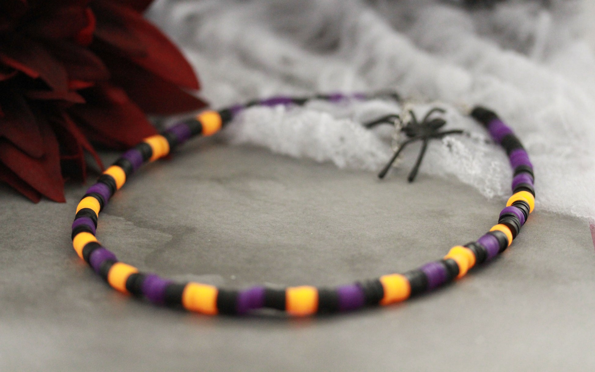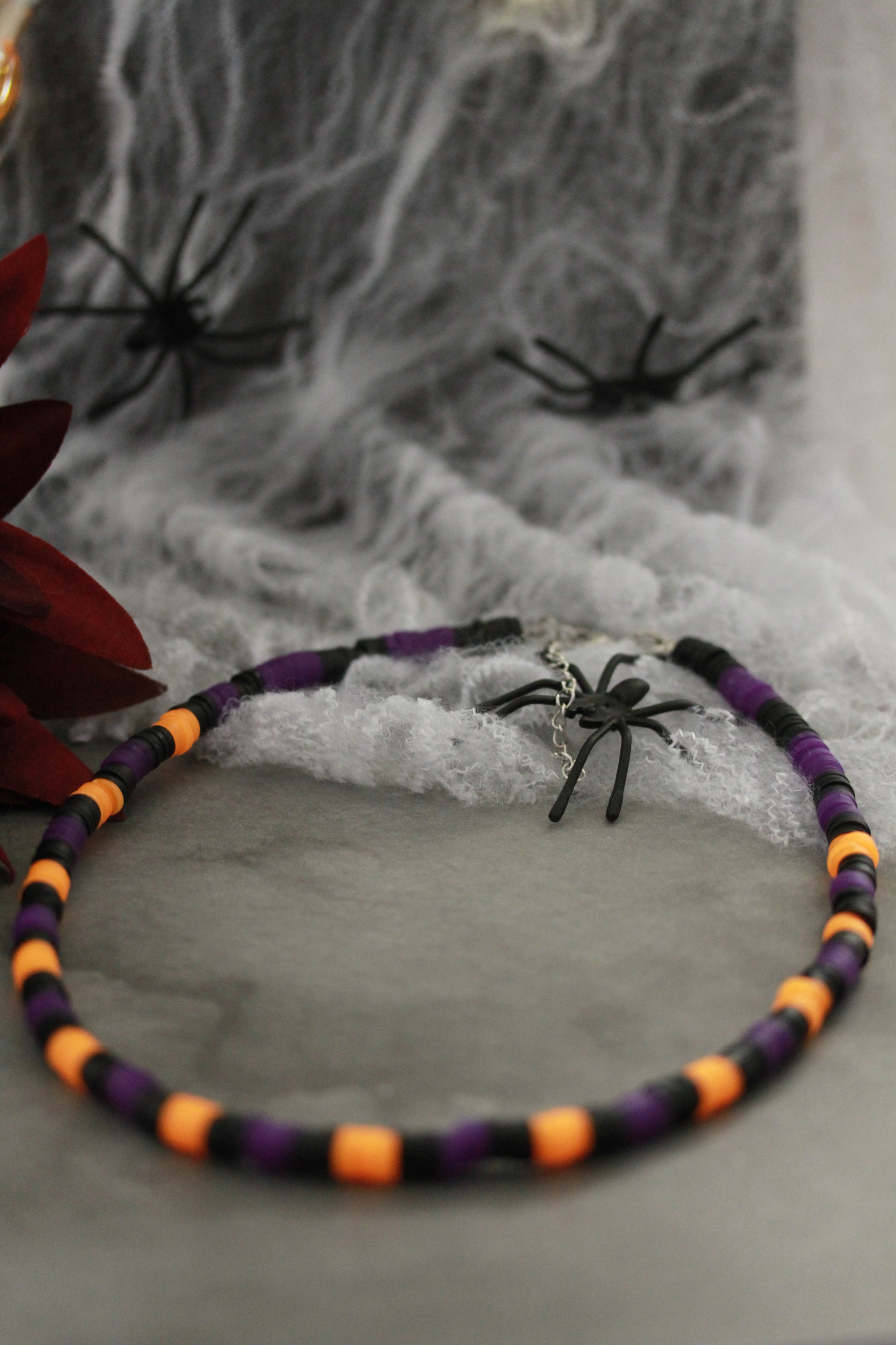 Neon Orange-Schwarz-Lila Schmuckset – Armband & Halskette | Halloween