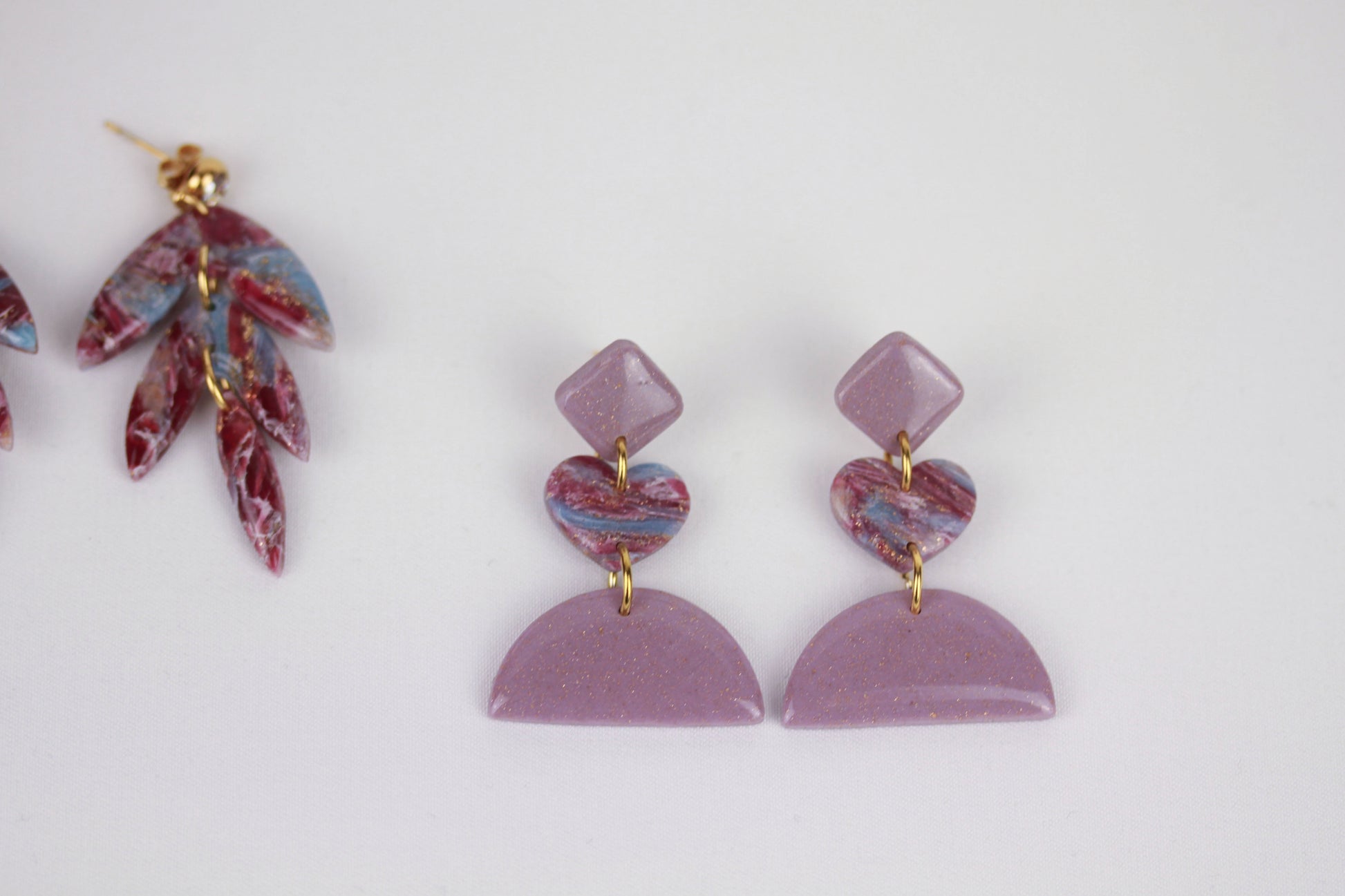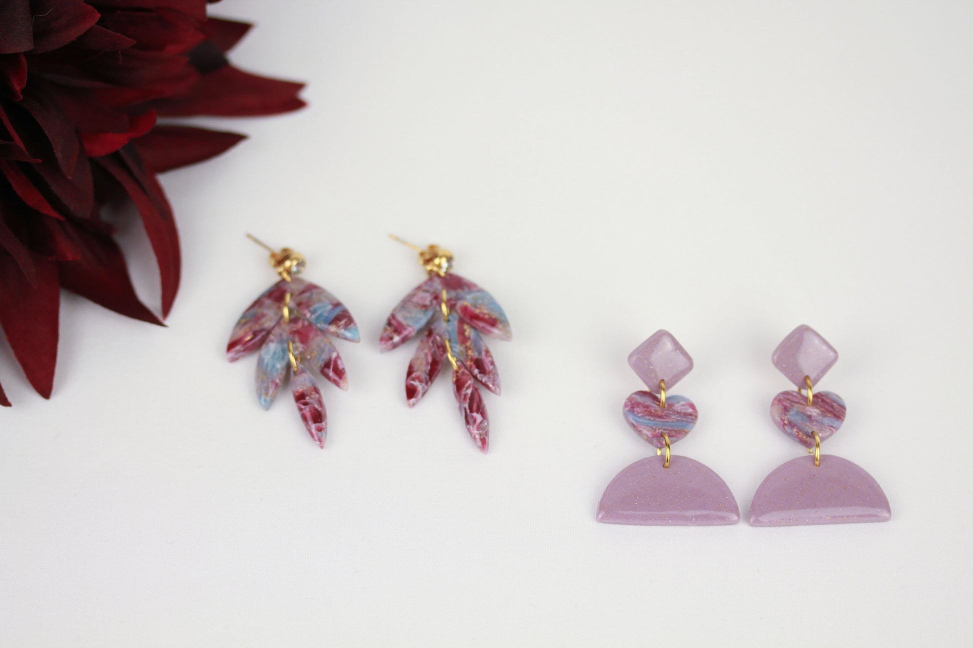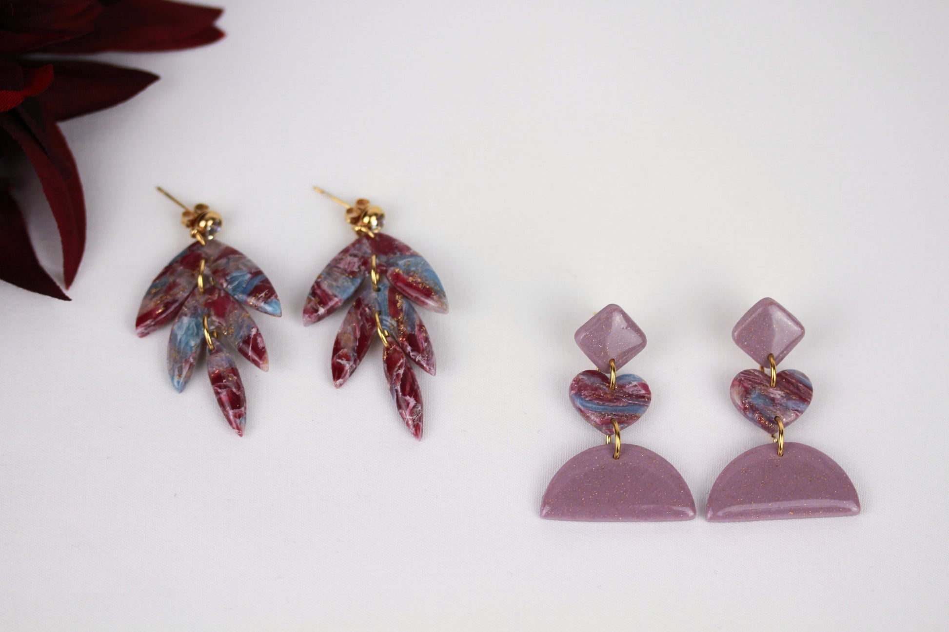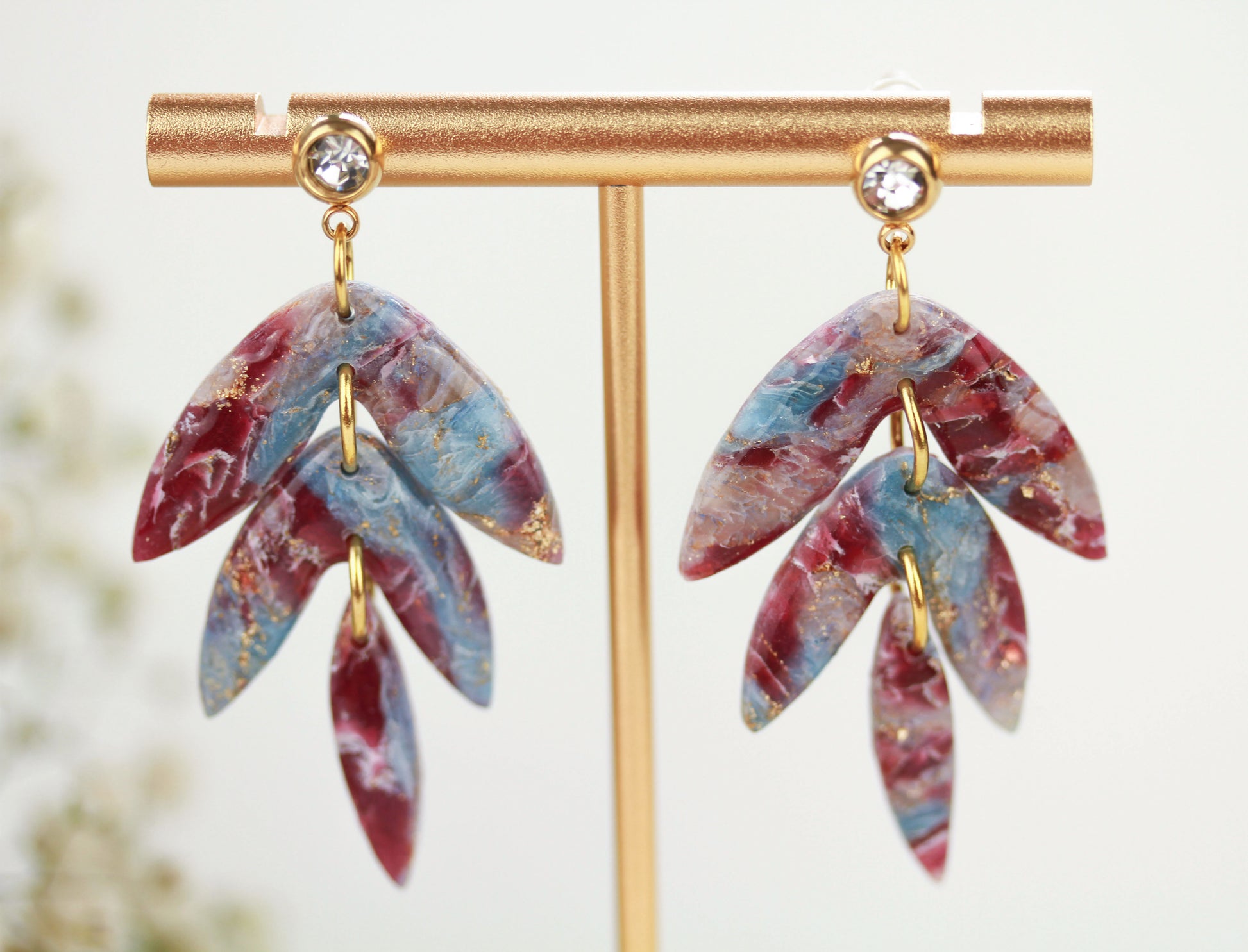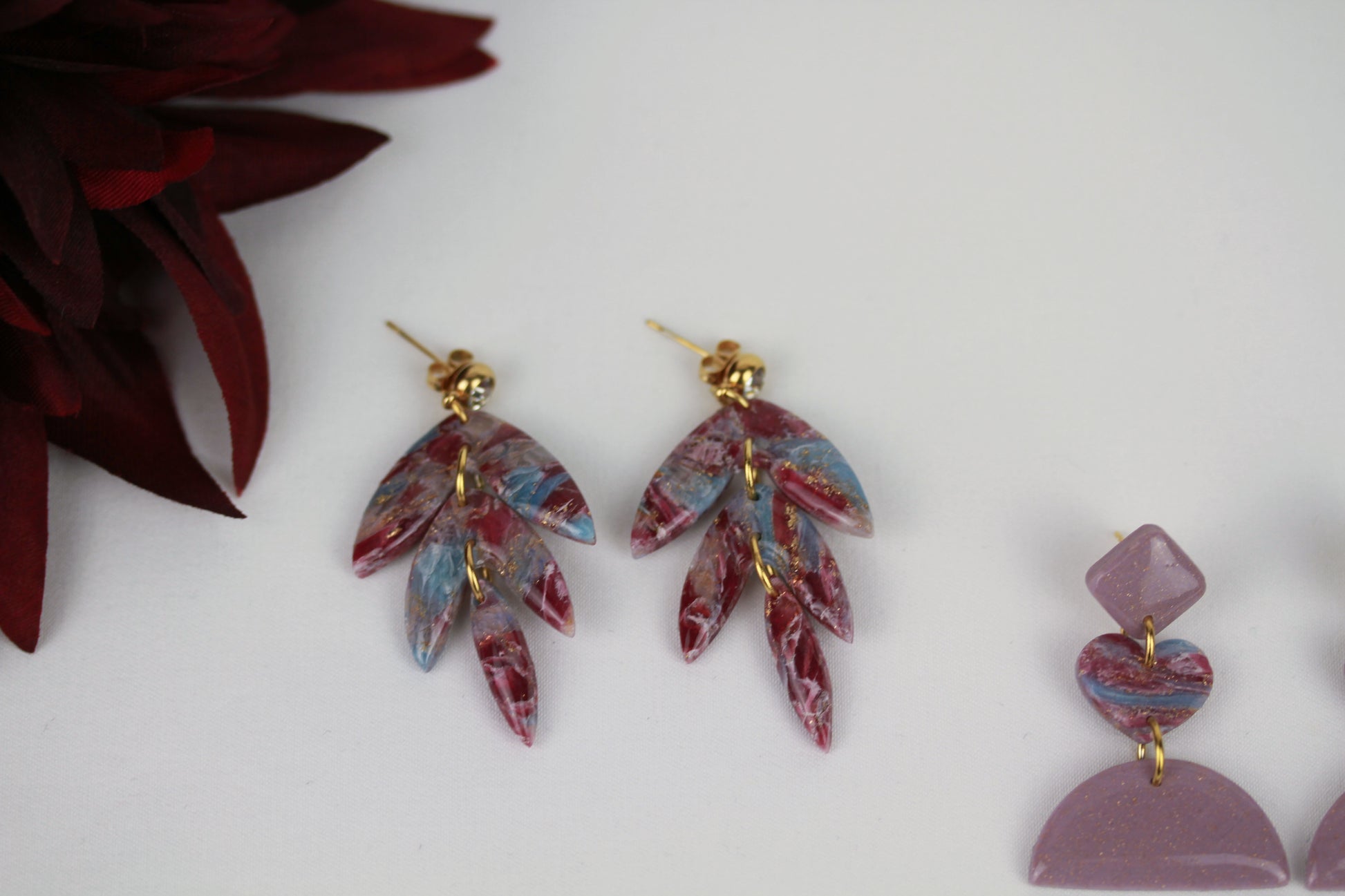 Polymer Clay Hängeohrringe – Kollektion Saphir Scarlet | Statement Schmuck