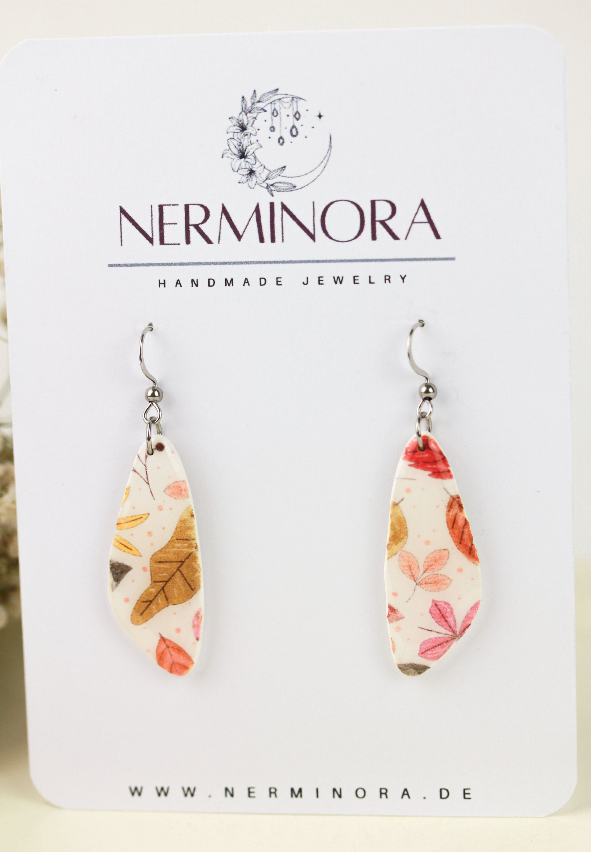 Diese herbstlichen Blatt-Hängeohrringe aus Polymer Clay zeichnen sich durch ein filigranes Blattmuster in warmen Tönen aus, das die Schönheit der Saison einfängt. Leicht und elegant, ergänzen sie jedes Outfit mit einer subtilen, natürlichen Anmutung und verleihen Ihrem Look eine edle, saisonale Note.