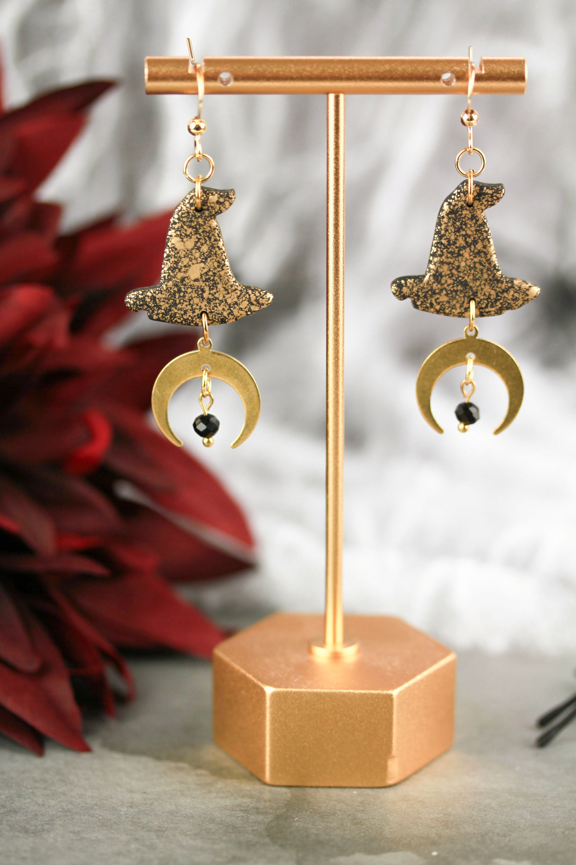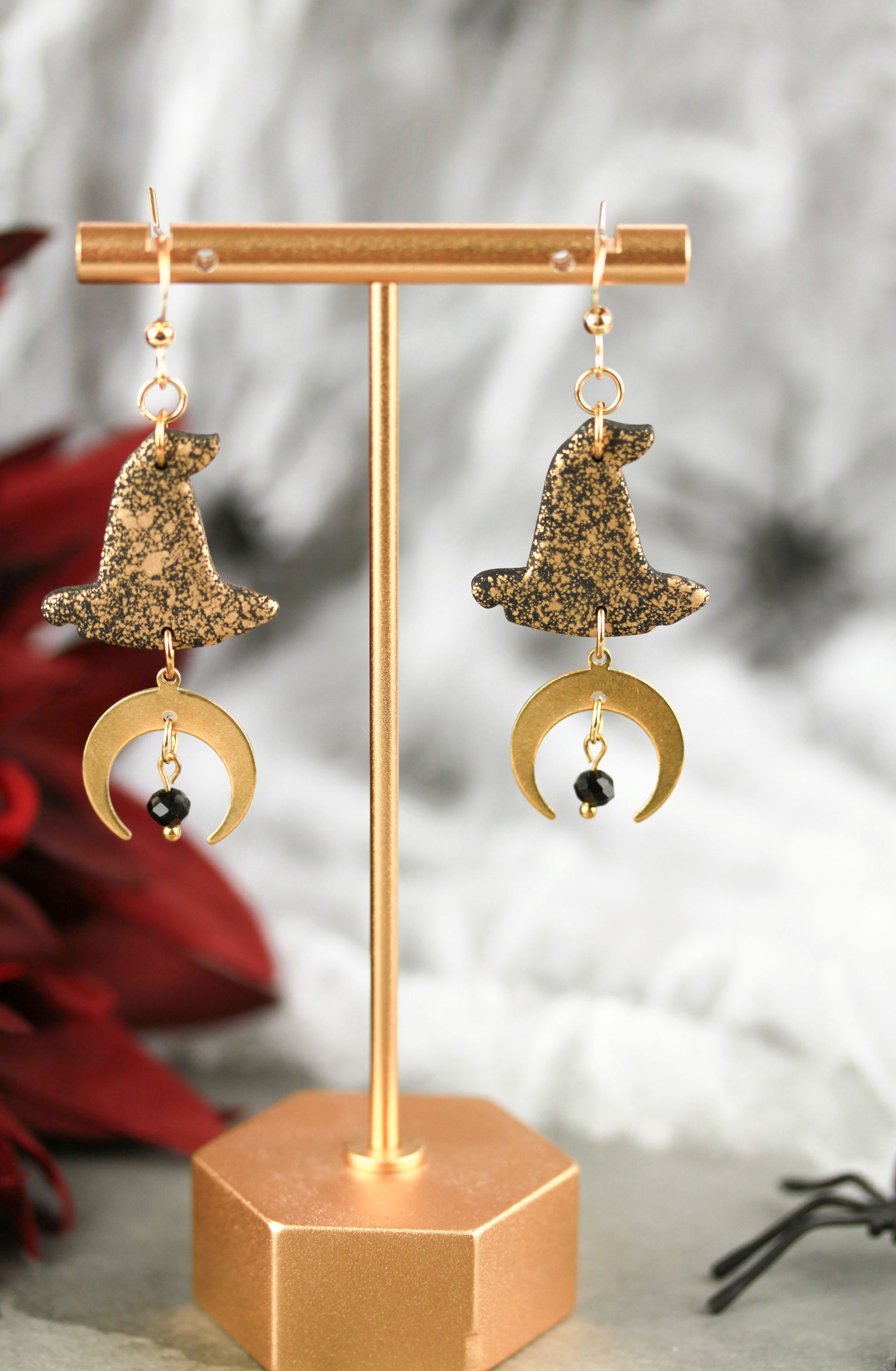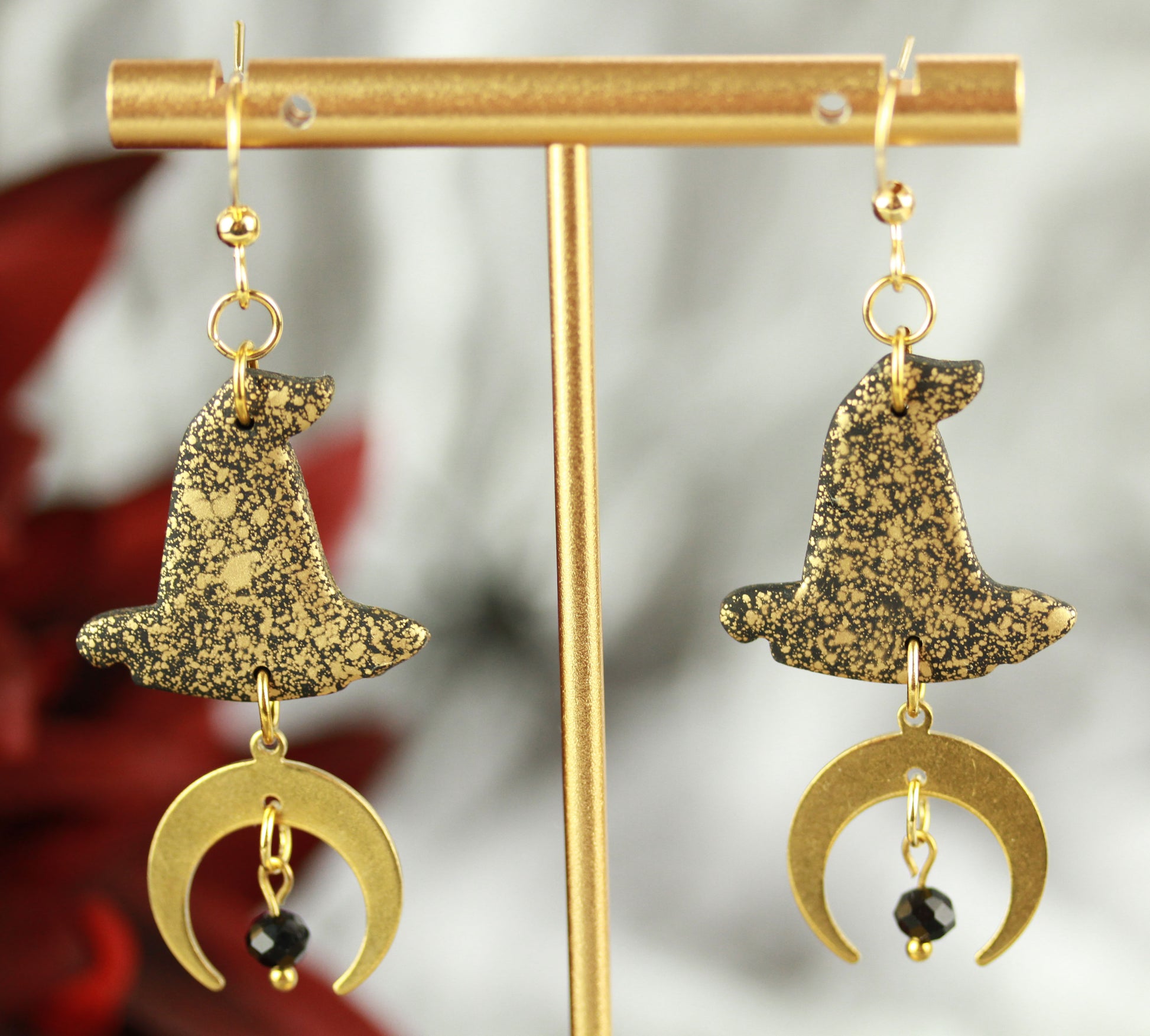 Hexenhut & Mond Ohrringe – Handgefertigte Halloween Polymer Clay Ohrringe | Halloween Edition