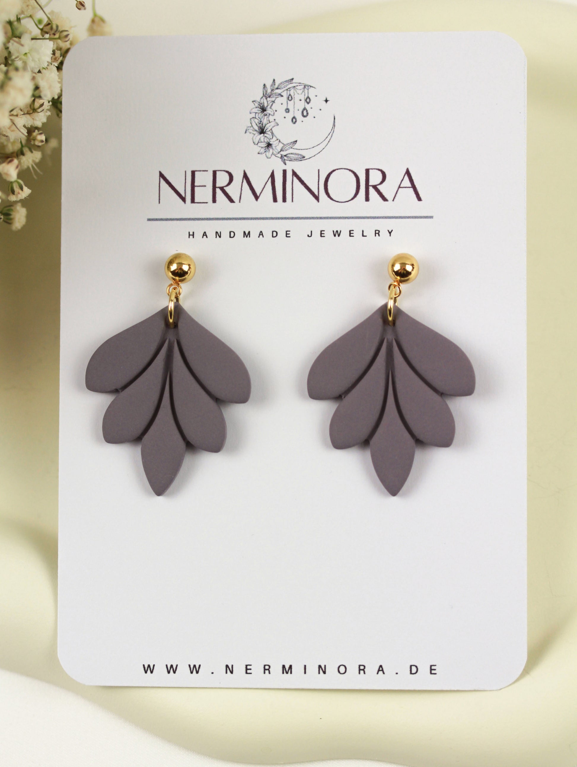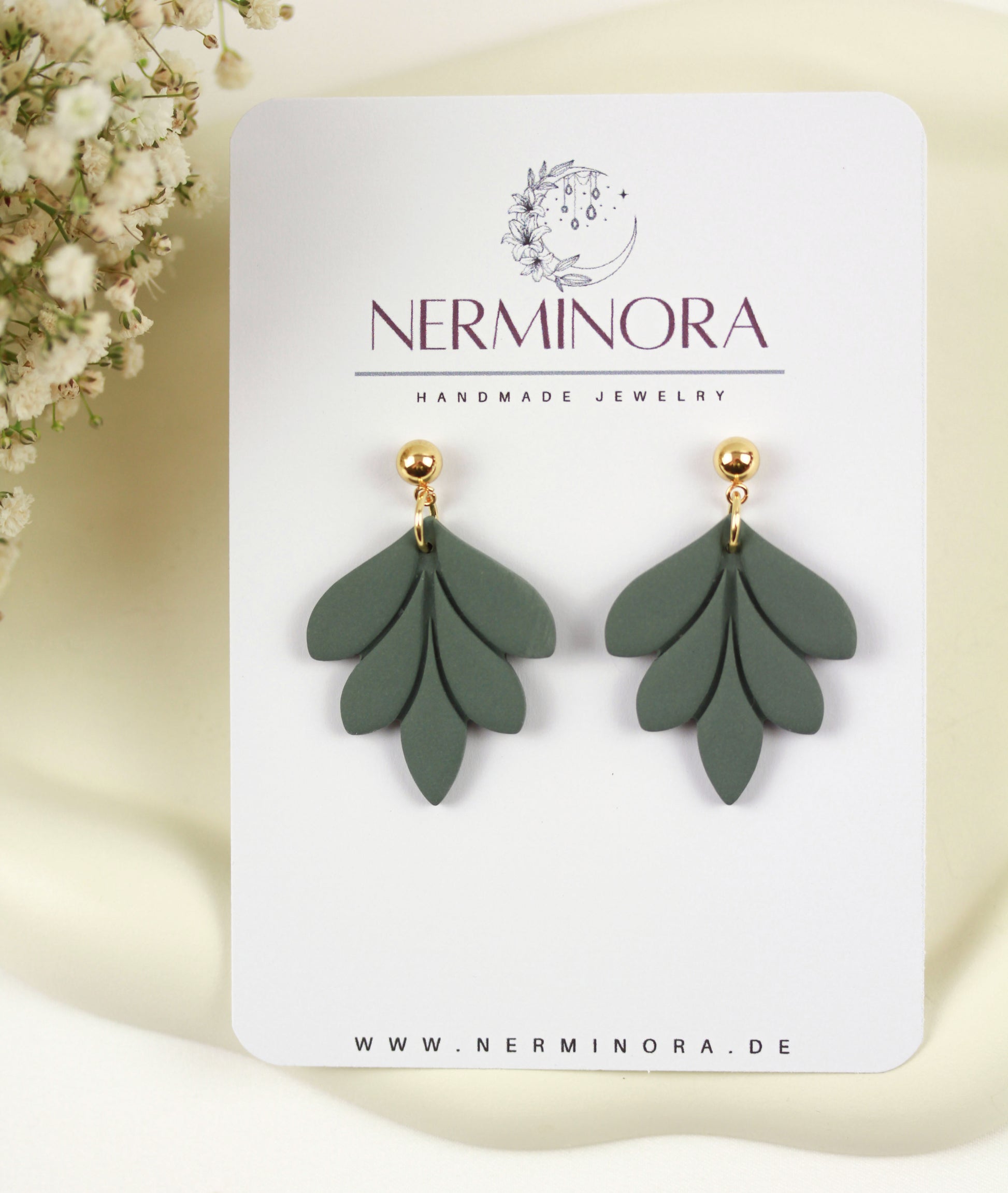 Aus handgemischten Farben formen sich zarte Einzelteile, die nach dem Härten behutsam geschliffen werden. Eine leichte Versiegelung sorgt – je nach Modell – für seidige Glätte und angenehmen Tragekomfort. Jedes Element wird mit Sorgfalt zusammengesetzt und zu einem einzigartigen Ohrring vollendet.