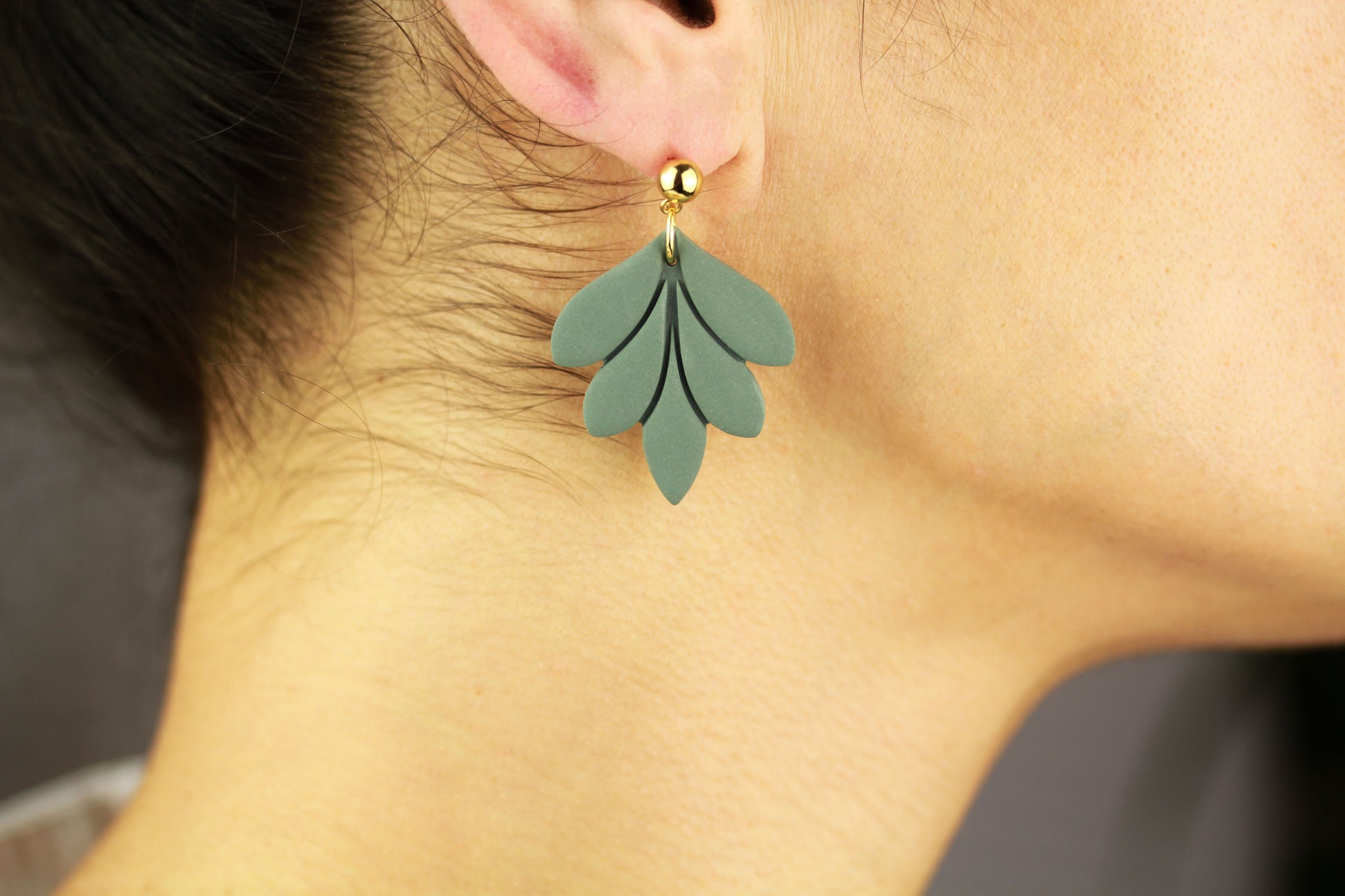 Große Blatt Polymer Clay Ohrringe – Kollektion Dewlight
