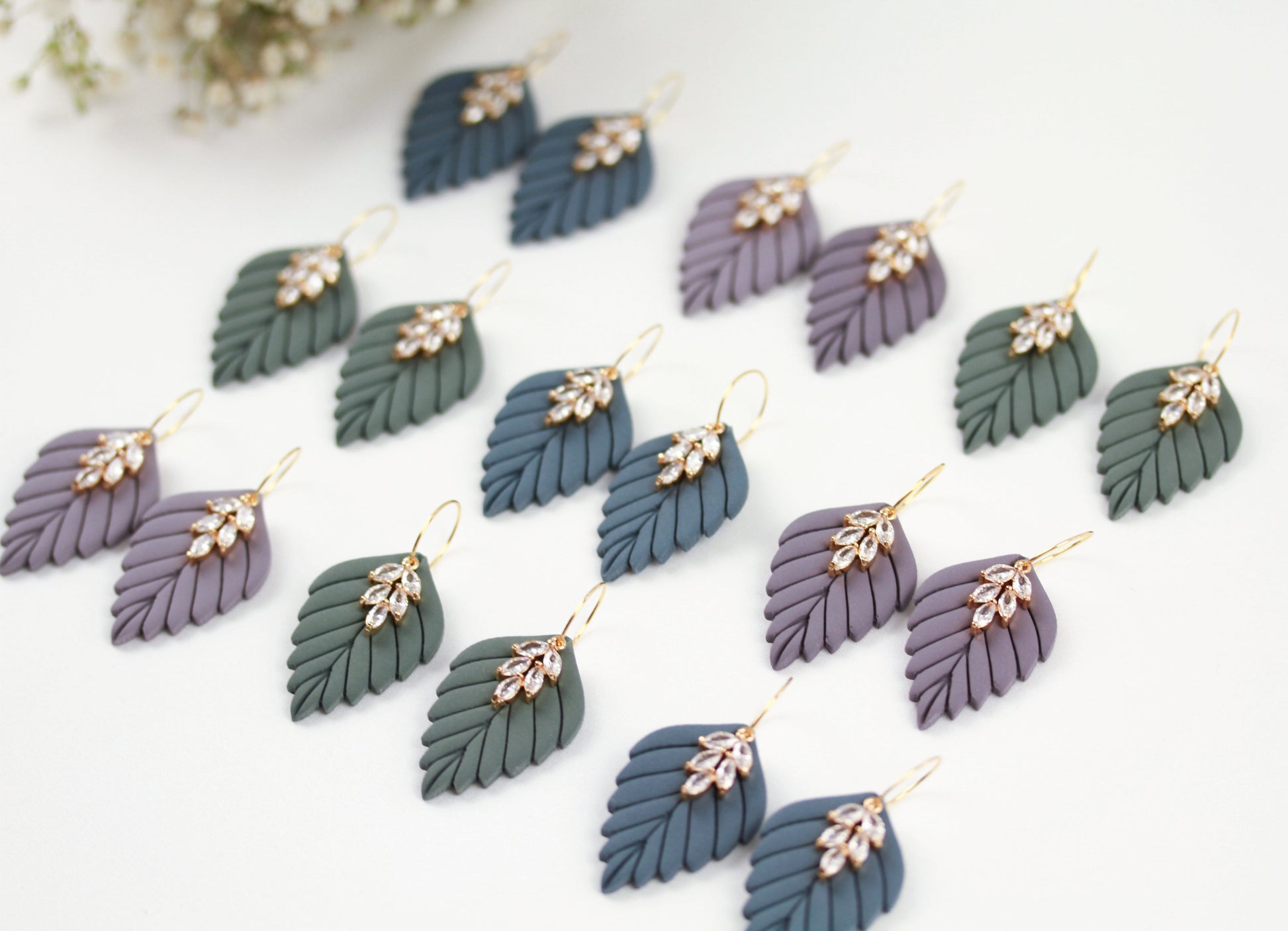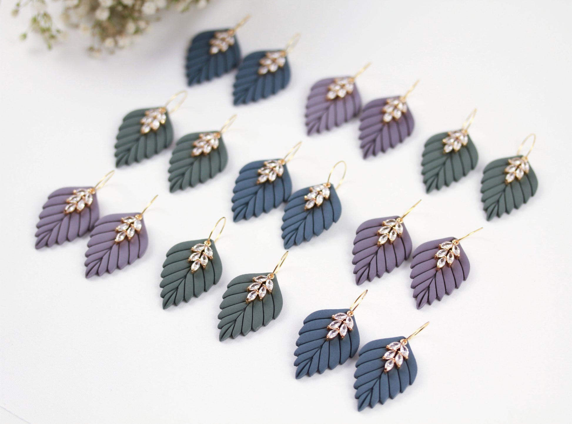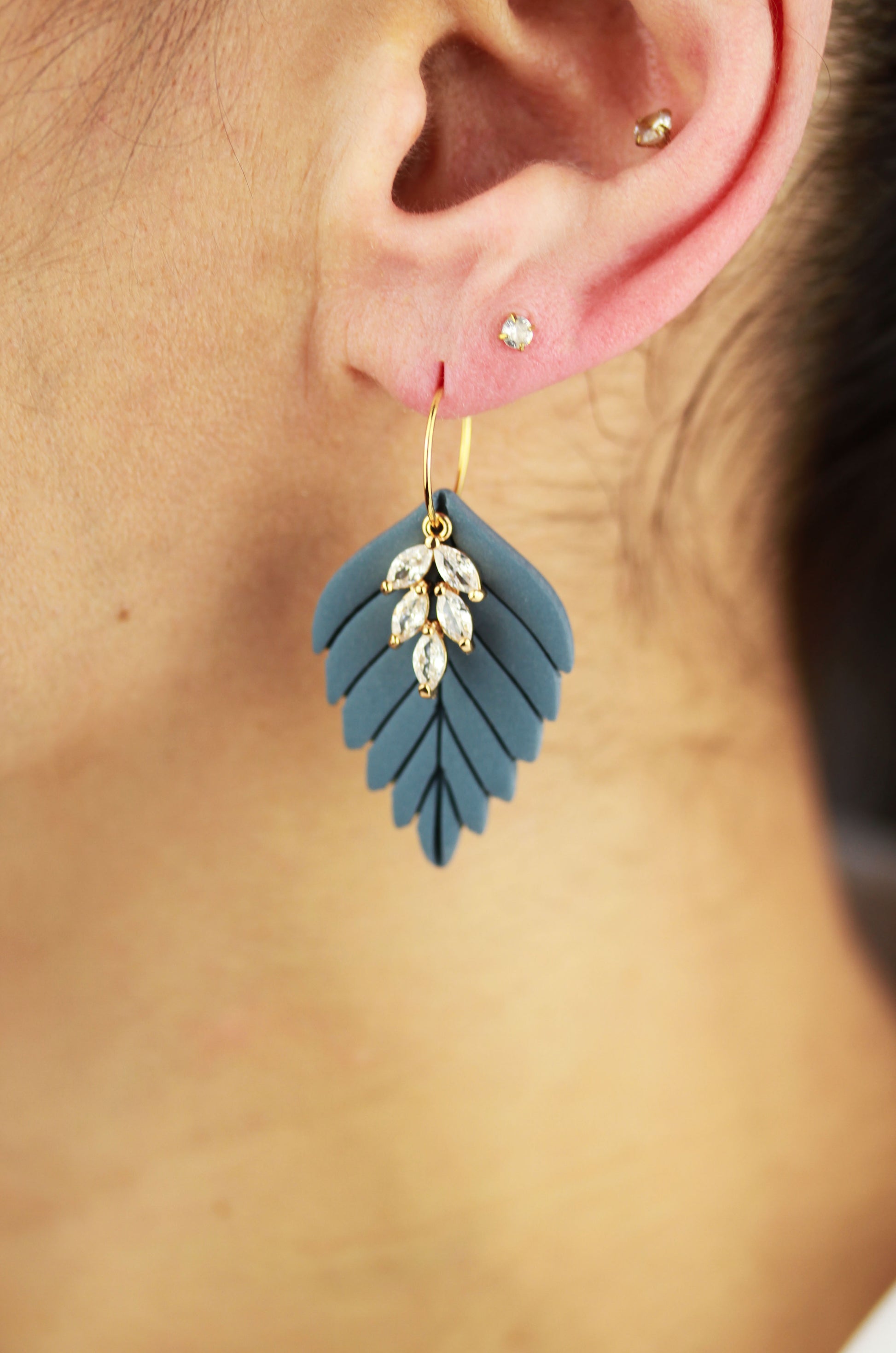 Aus handgemischten Farben formen sich zarte Einzelteile, die nach dem Härten behutsam geschliffen werden. Eine leichte Versiegelung sorgt – je nach Modell – für seidige Glätte und angenehmen Tragekomfort. Jedes Element wird mit Sorgfalt zusammengesetzt und zu einem einzigartigen Ohrring vollendet.