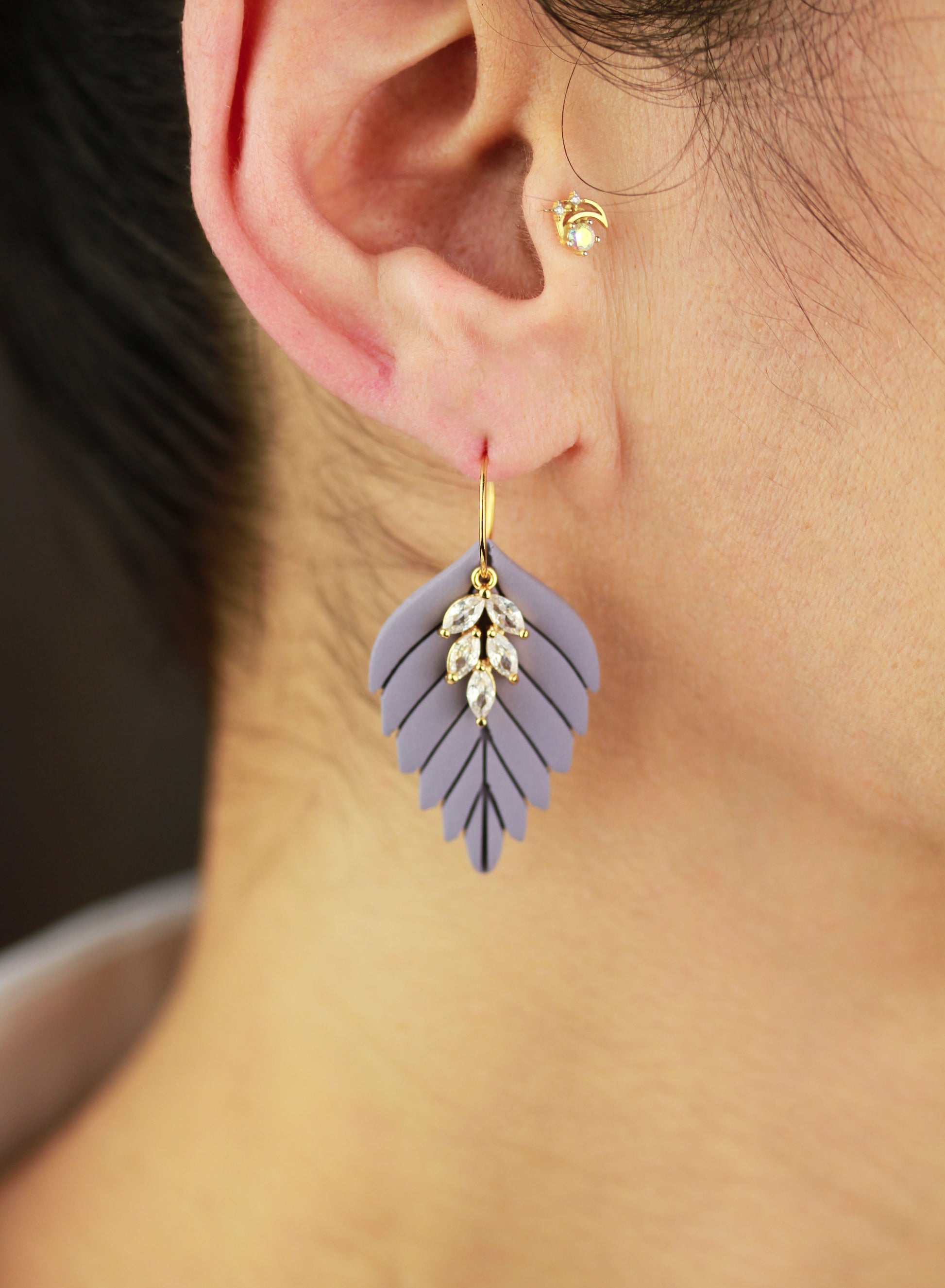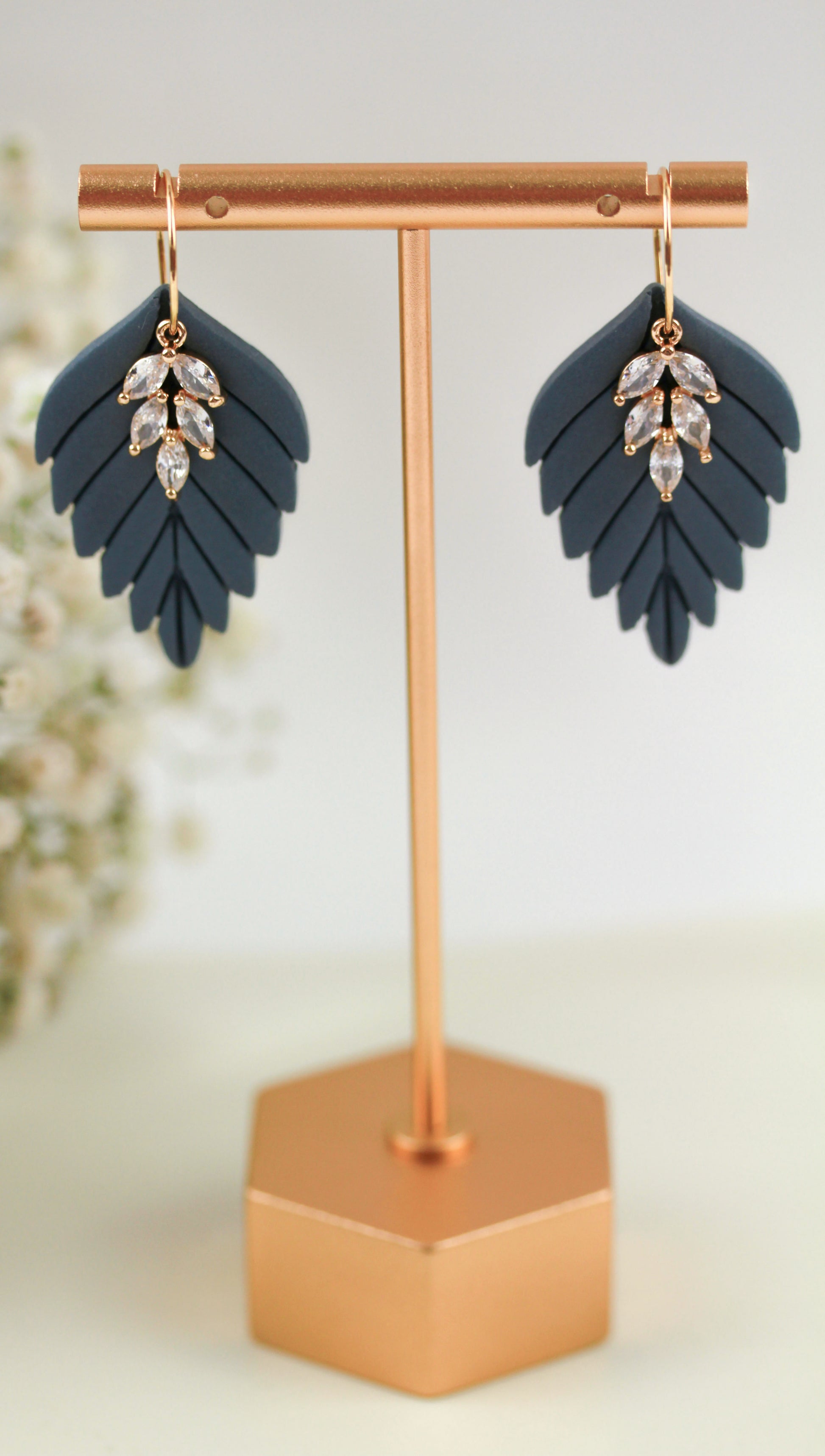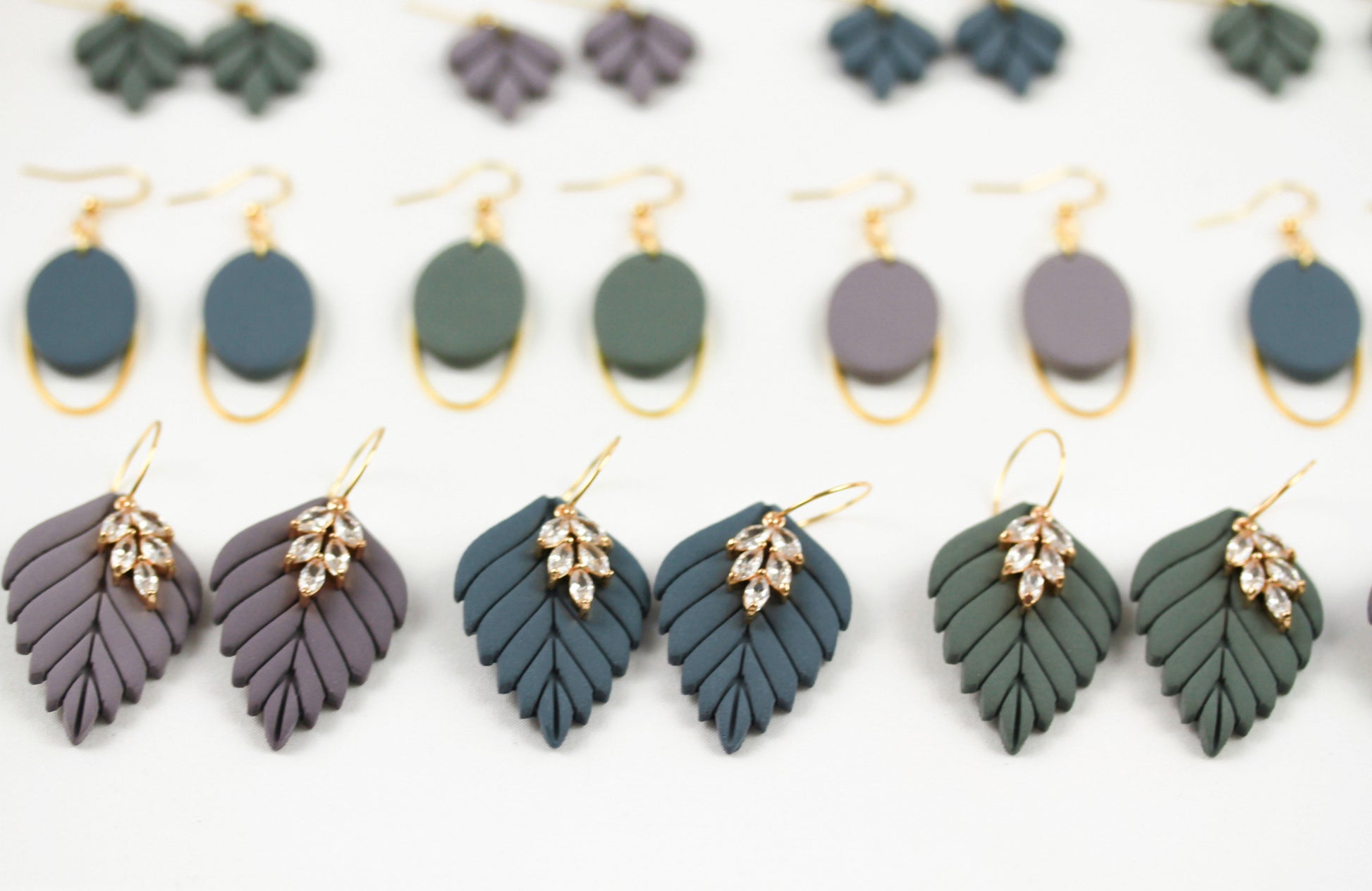 Aus handgemischten Farben formen sich zarte Einzelteile, die nach dem Härten behutsam geschliffen werden. Eine leichte Versiegelung sorgt – je nach Modell – für seidige Glätte und angenehmen Tragekomfort. Jedes Element wird mit Sorgfalt zusammengesetzt und zu einem einzigartigen Ohrring vollendet.