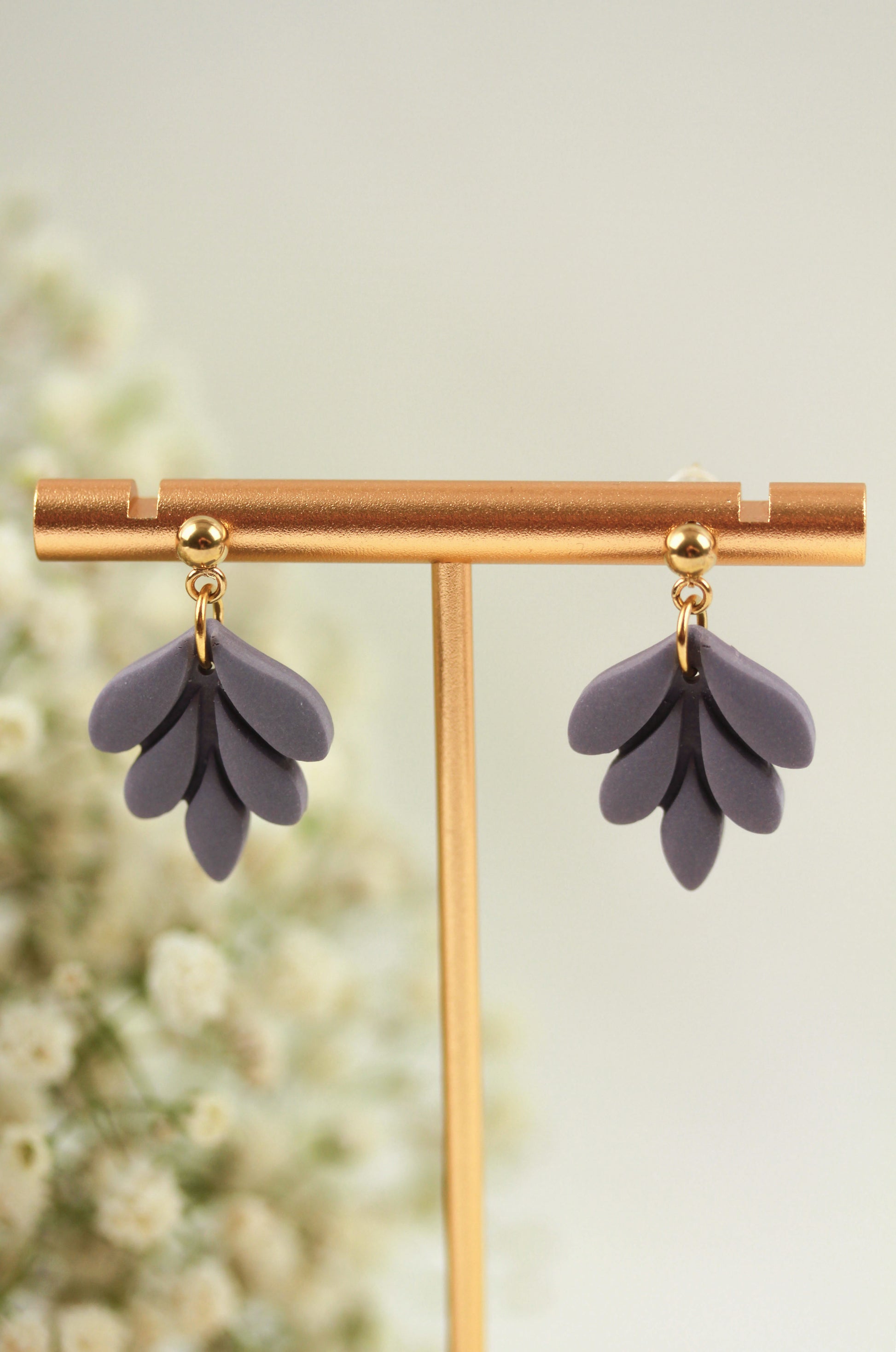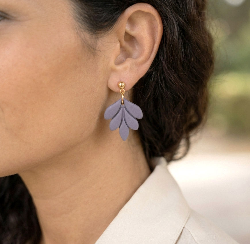 Aus handgemischten Farben formen sich zarte Einzelteile, die nach dem Härten behutsam geschliffen werden. Eine leichte Versiegelung sorgt – je nach Modell – für seidige Glätte und angenehmen Tragekomfort. Jedes Element wird mit Sorgfalt zusammengesetzt und zu einem einzigartigen Ohrring vollendet.