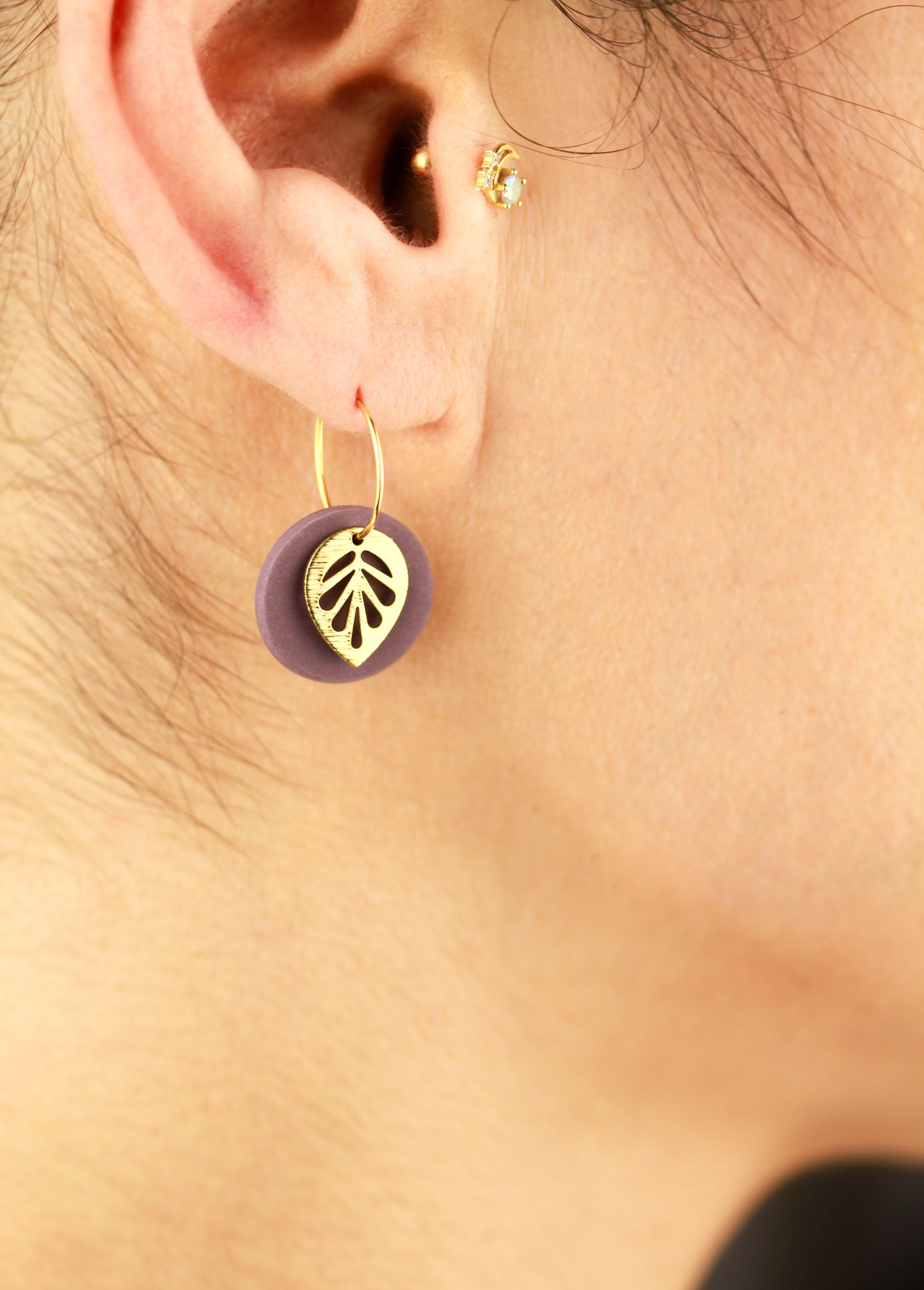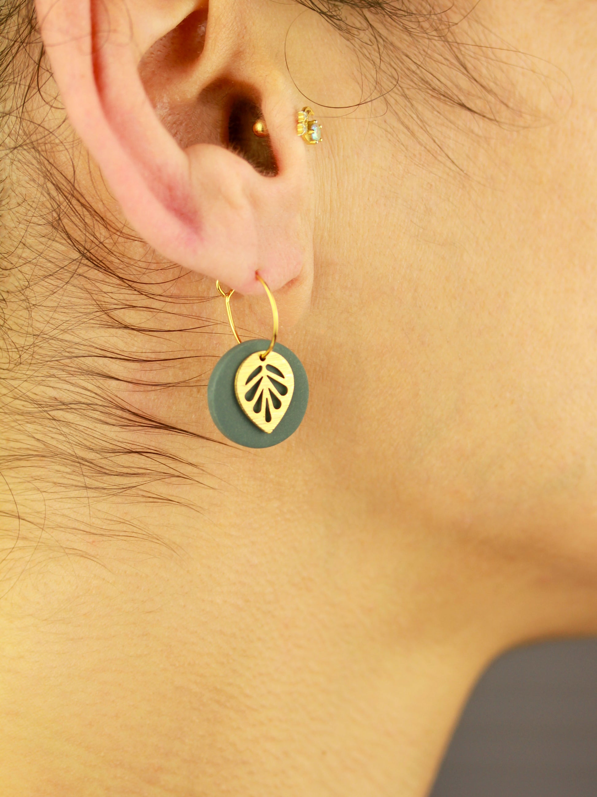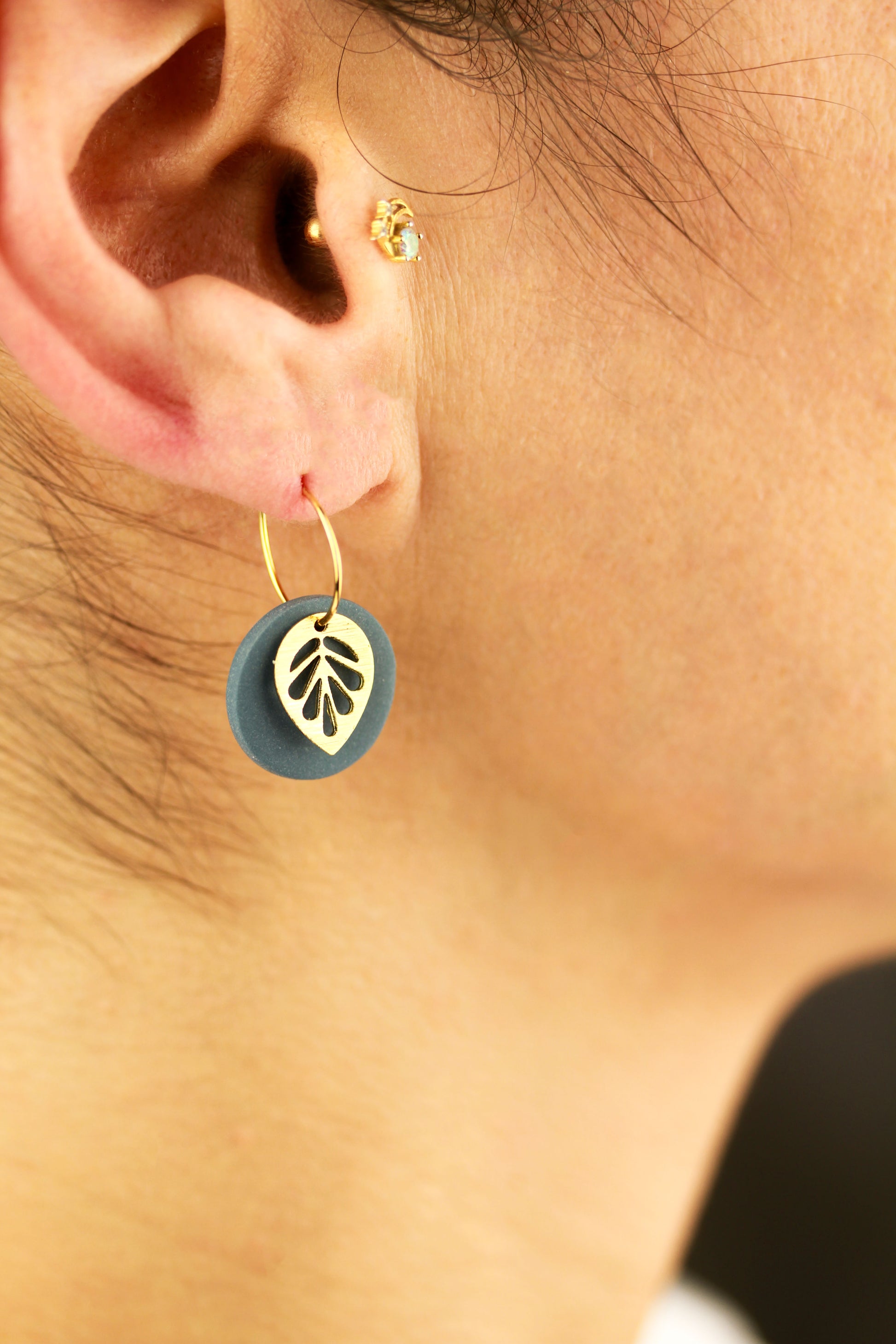 Aus handgemischten Farben formen sich zarte Einzelteile, die nach dem Härten behutsam geschliffen werden. Eine leichte Versiegelung sorgt – je nach Modell – für seidige Glätte und angenehmen Tragekomfort. Jedes Element wird mit Sorgfalt zusammengesetzt und zu einem einzigartigen Ohrring vollendet.