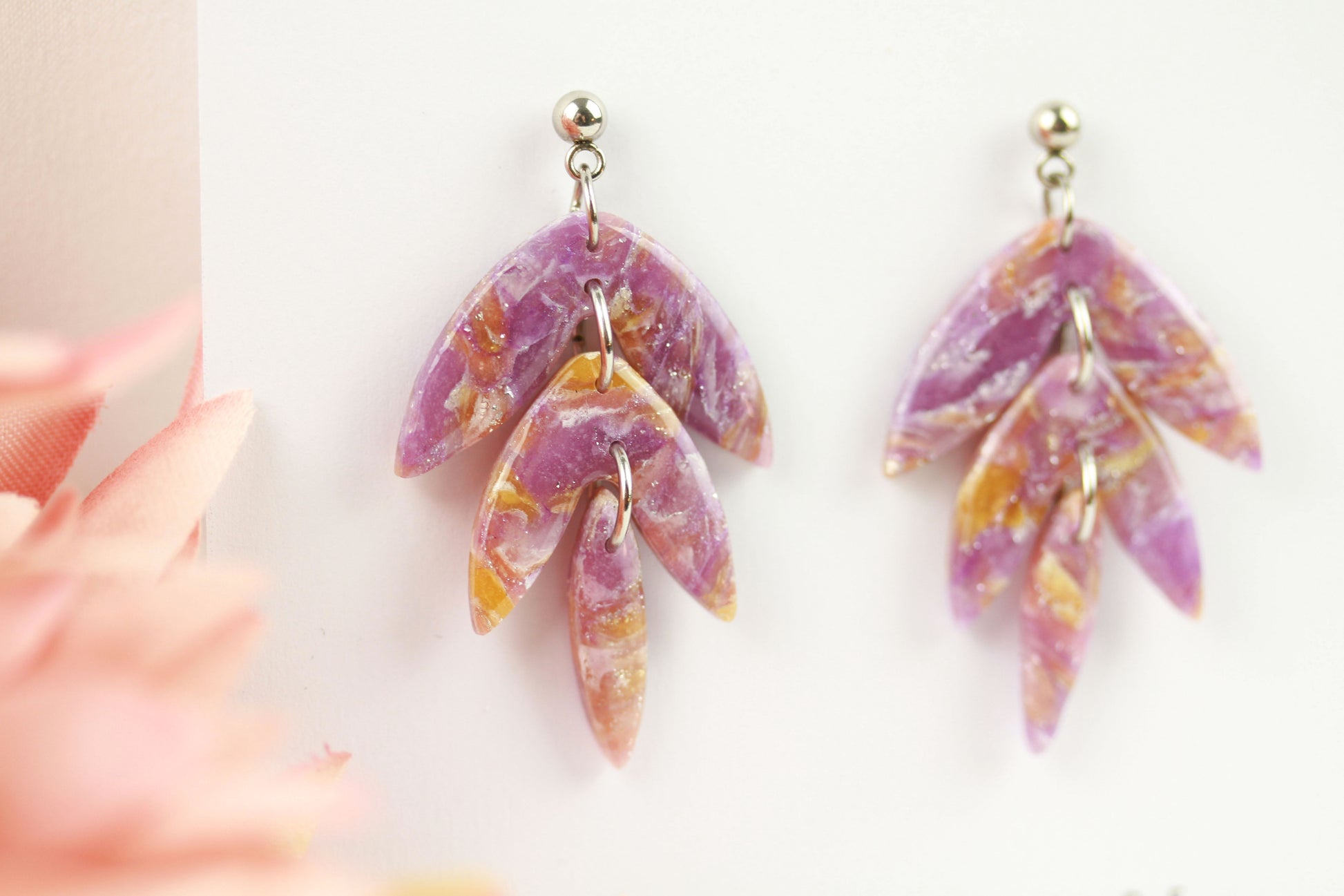 Lila-Gelbe Marmor Ohrringe – Handgefertigte Polymer Clay Statement Ohrringe