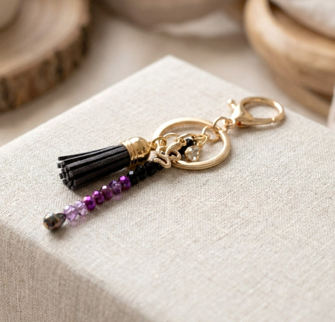 Lila-Schwarzer Perlen Schlüsselanhänger mit Quaste | Nymera | Handgemacht