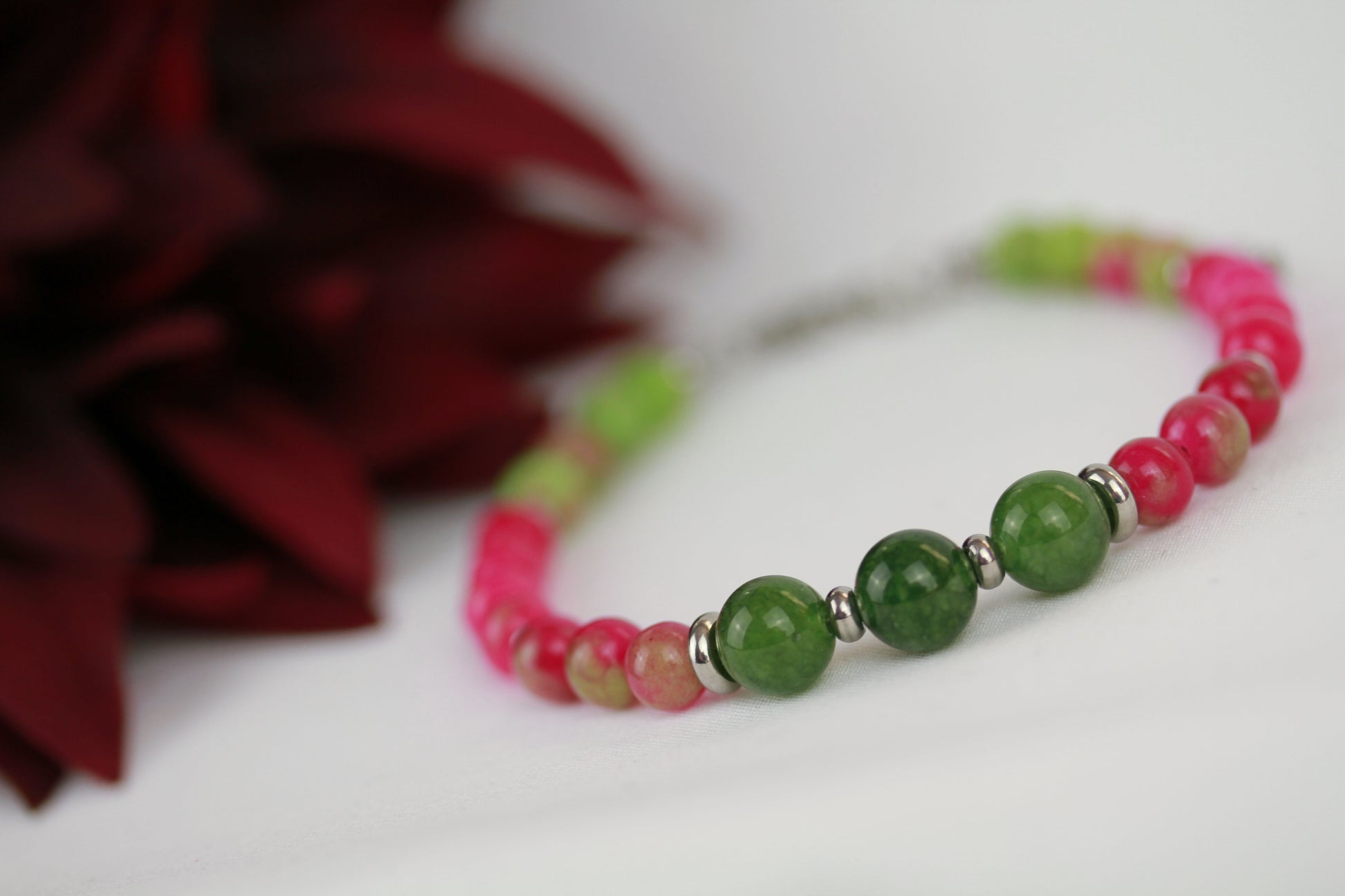 Achat-Serpentin Wassermelonen-Jade Armband – Naturstein Perlenarmband