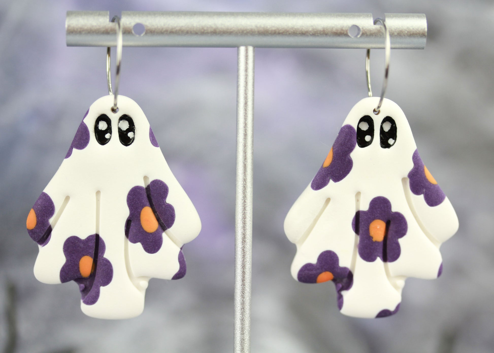 Geister in Blumenkleid Ohrringe – Süße Polymer Clay Ohrringe | Halloween Edition