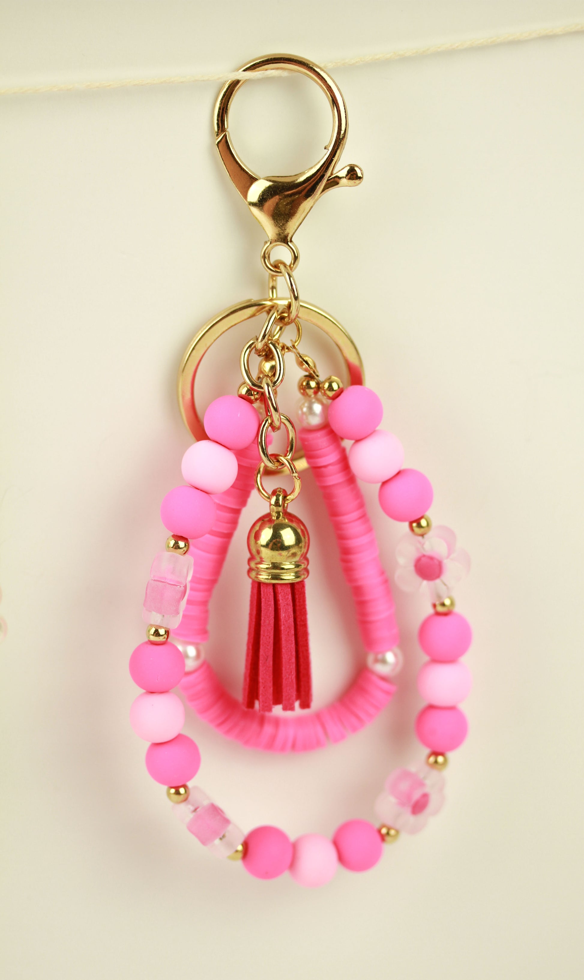 Pink Bubbly – Handgemachter rosa Perlen-Schlüsselanhänger mit Quaste