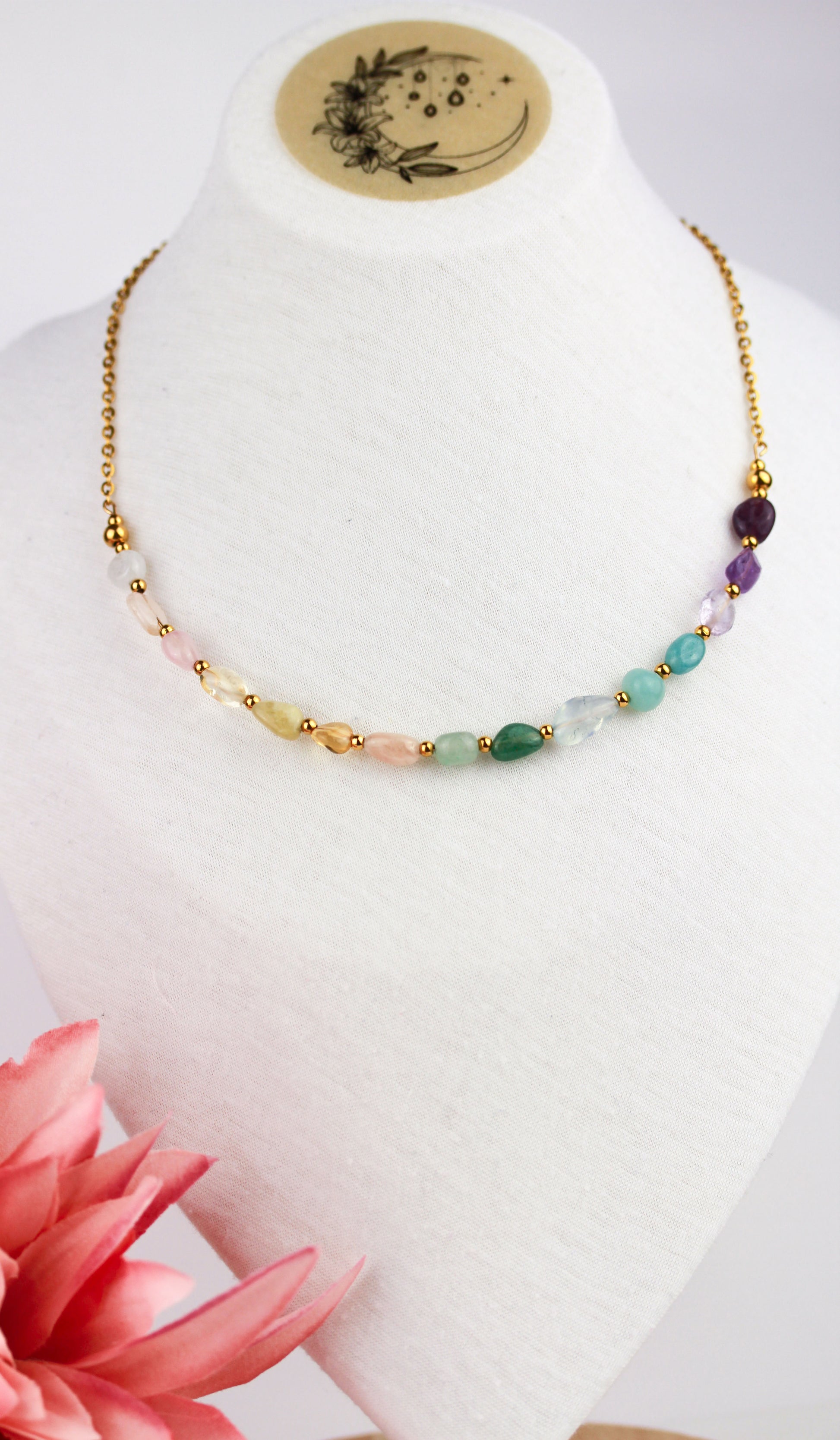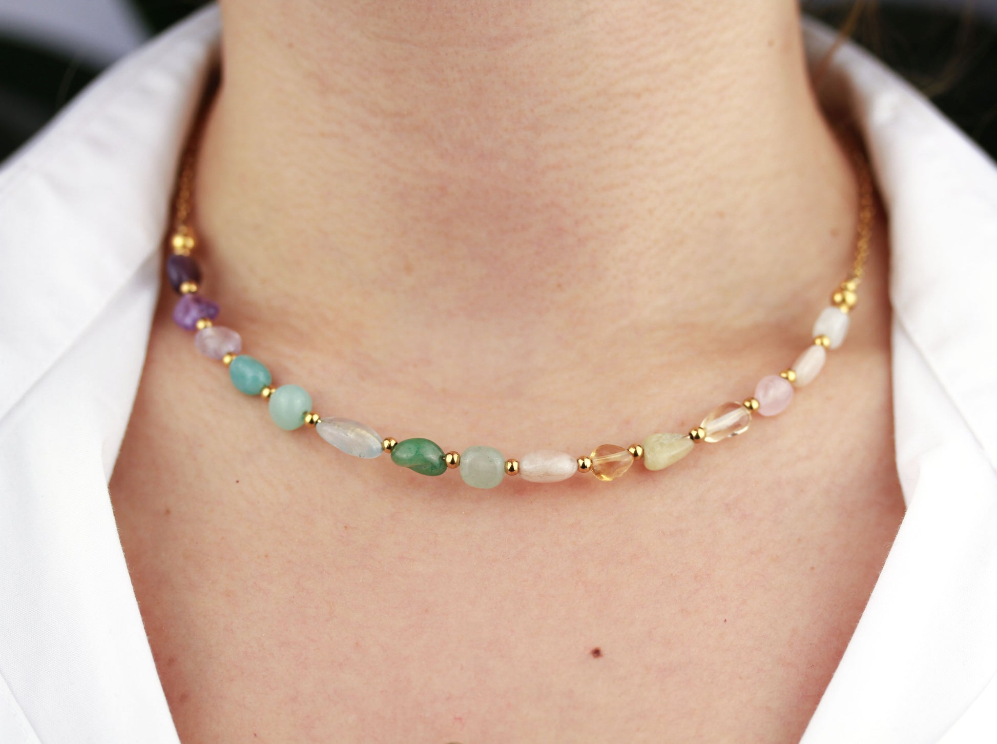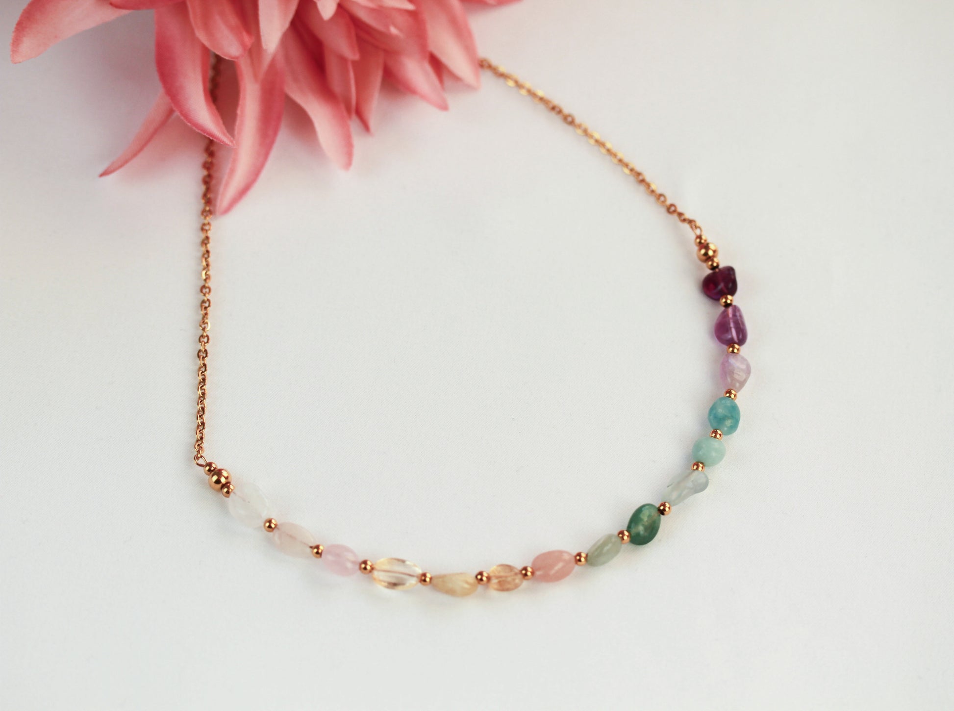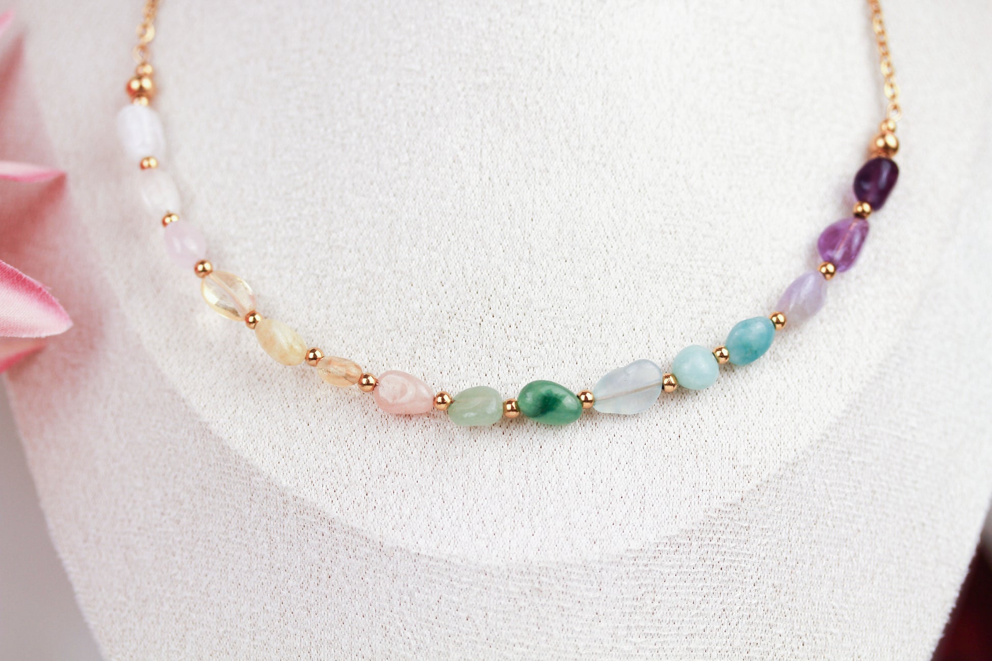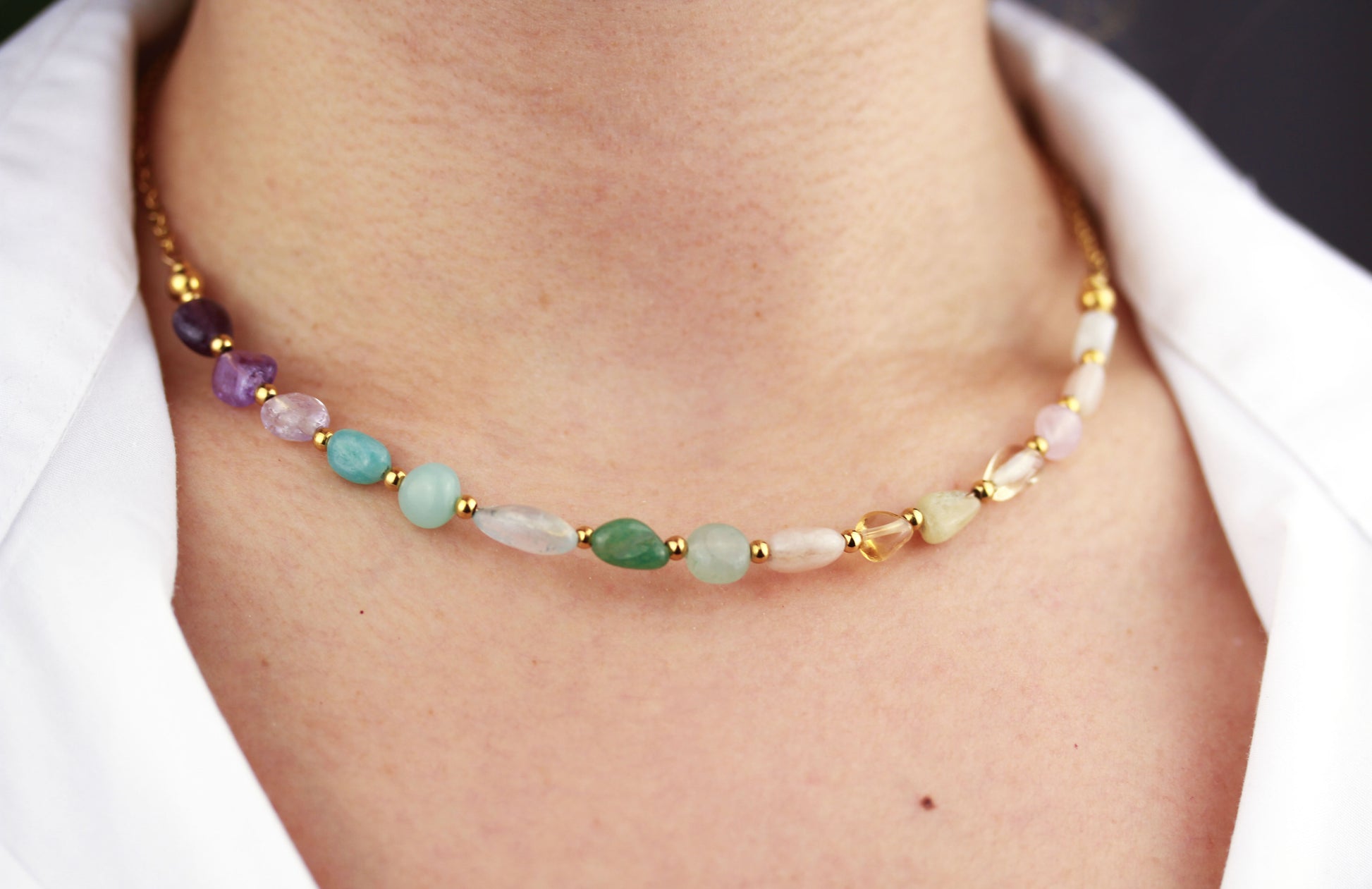 Regenbogen-Edelstein Perlenkette – Harmonische Naturstein-Halskette