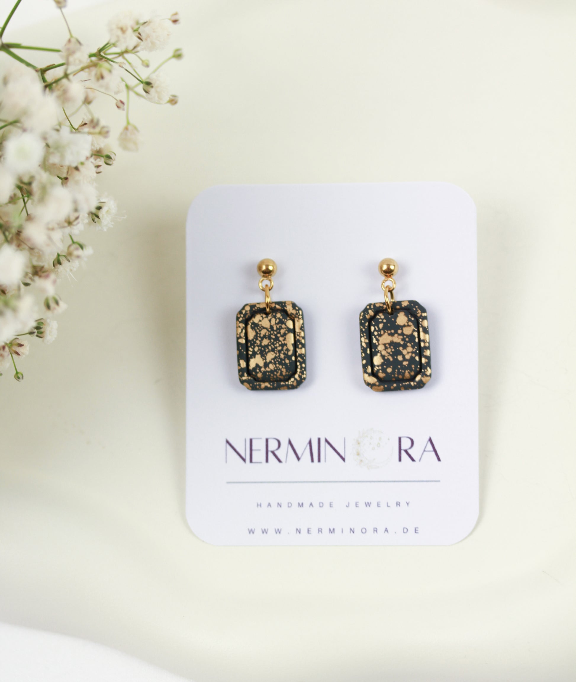 Aus handgemischten Farben formen sich zarte Einzelteile, die nach dem Härten behutsam geschliffen werden. Eine leichte Versiegelung sorgt – je nach Modell – für seidige Glätte und angenehmen Tragekomfort. Jedes Element wird mit Sorgfalt zusammengesetzt und zu einem einzigartigen Ohrring vollendet.