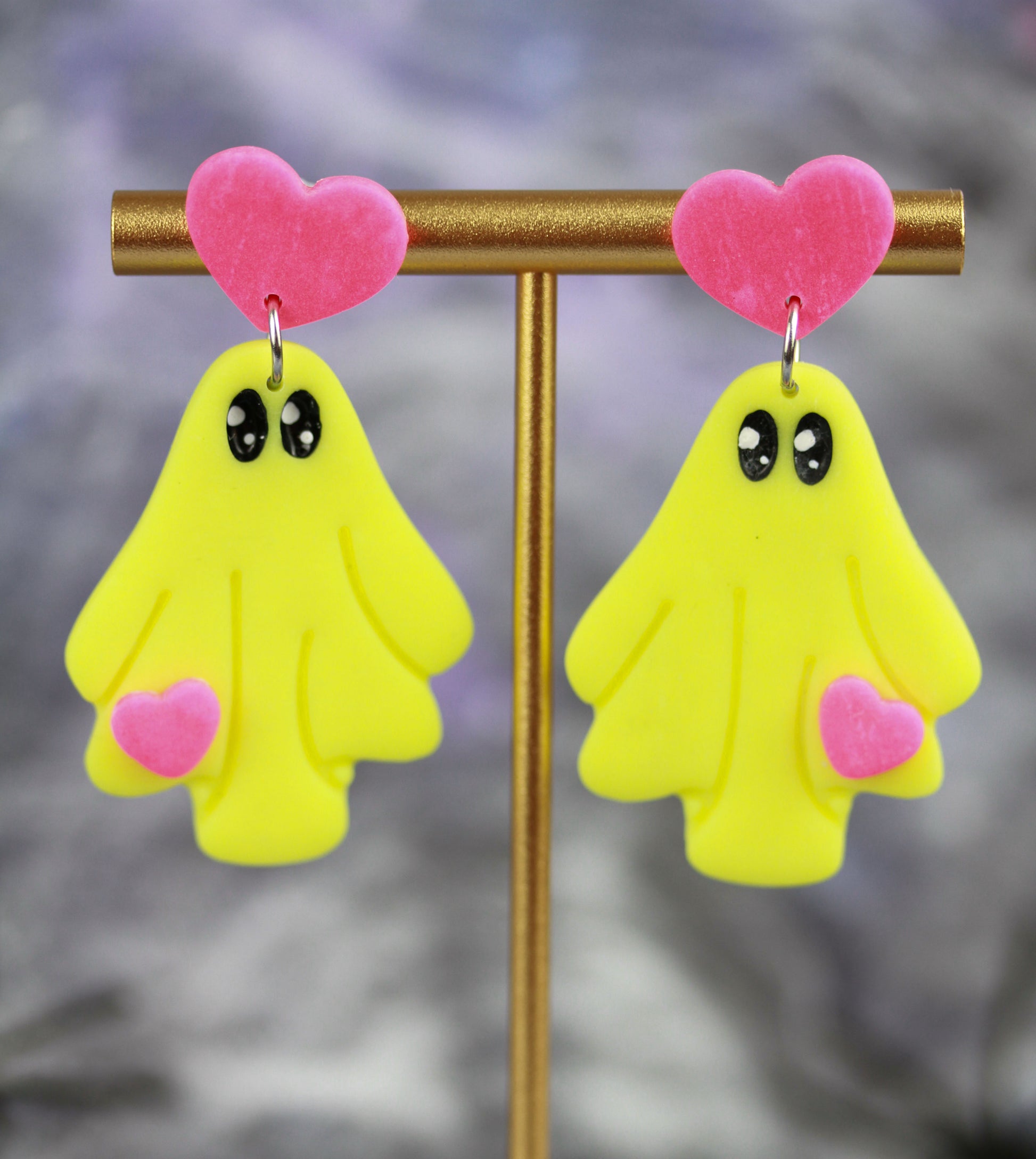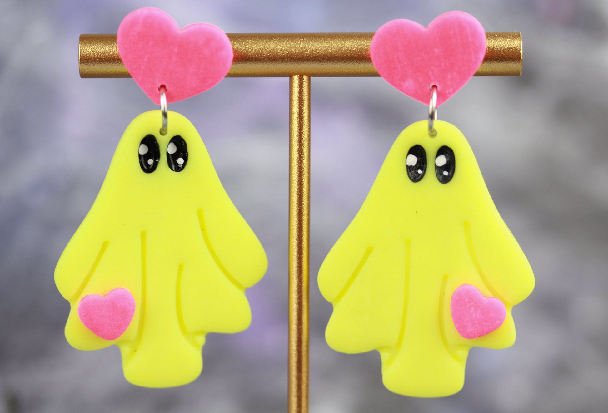 Süße Glow Geister Ohrringe – Rosa-Gelb Leuchteffekt | Halloween Edition