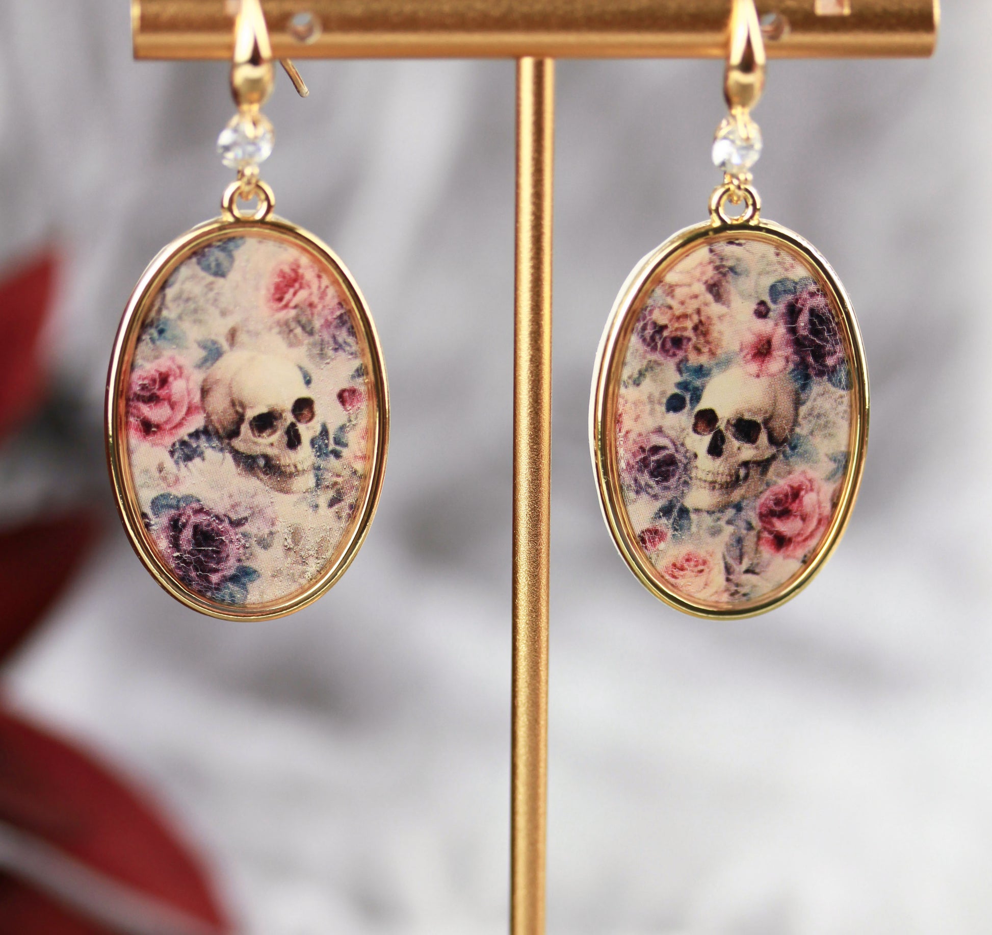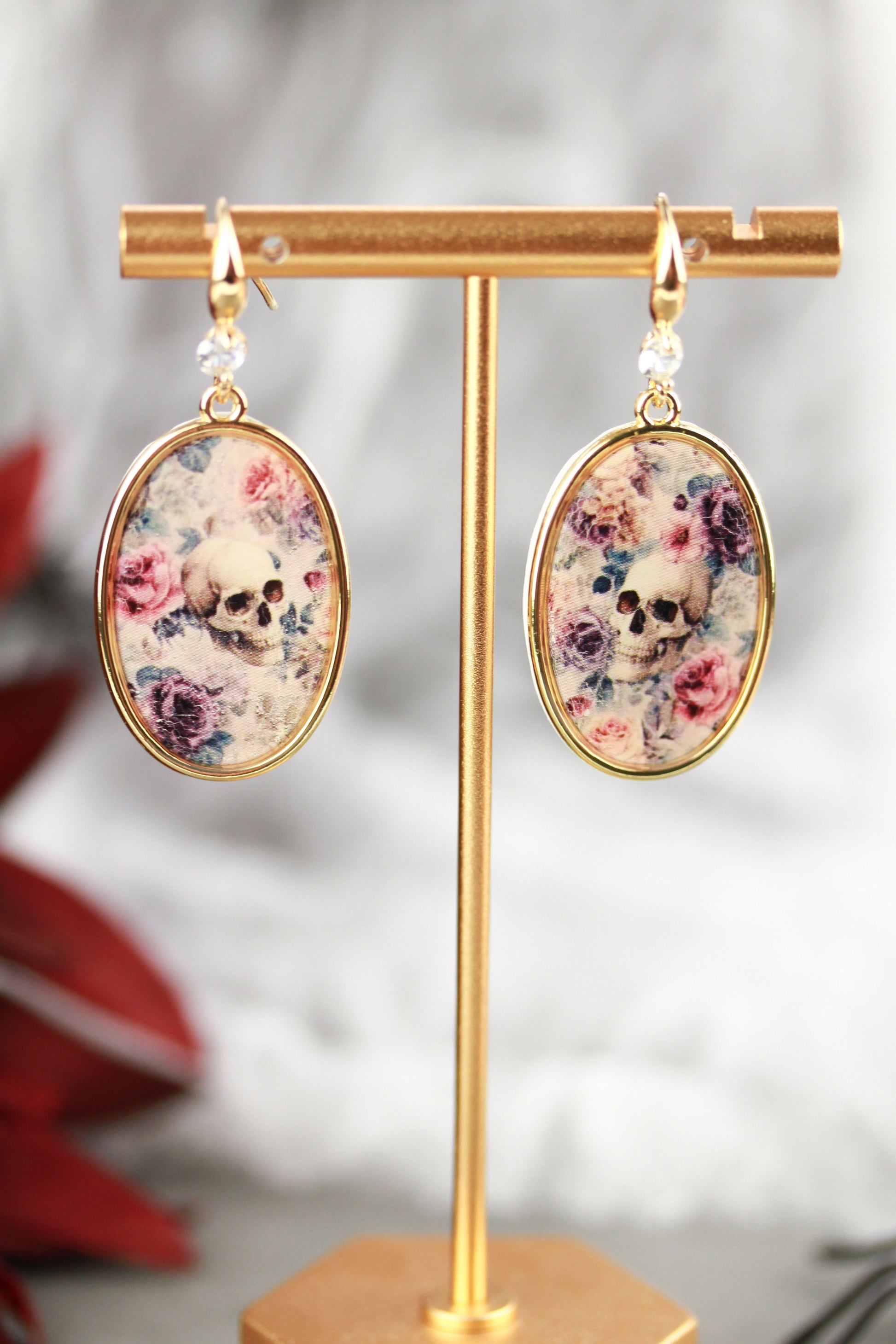 Vintage Skull Roses – Handgefertigte Totenkopf-Rosen Polymer Clay Ohrringe