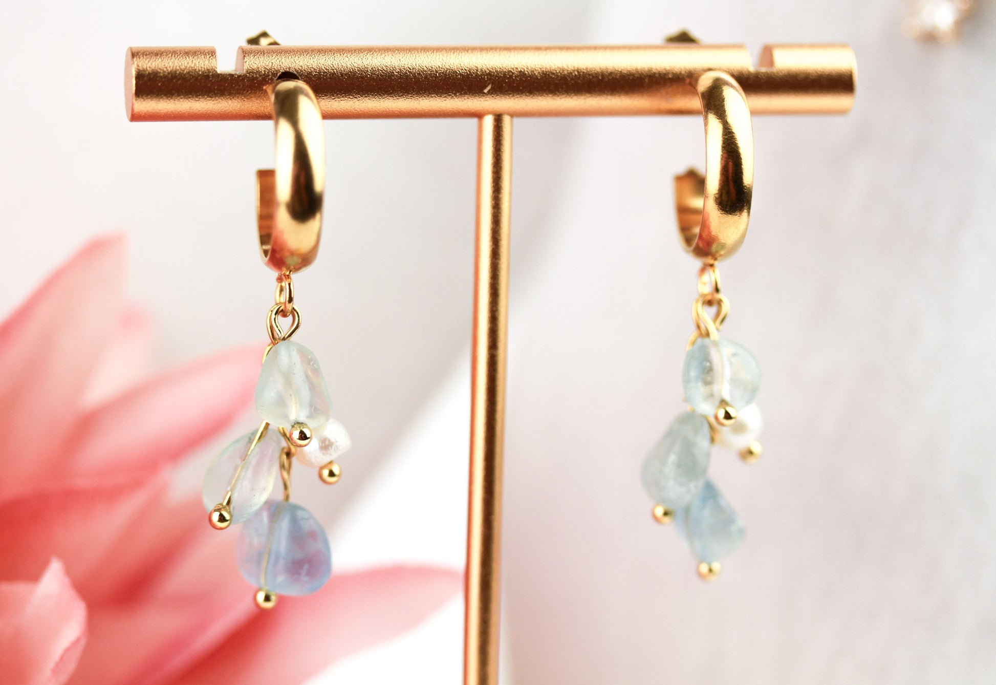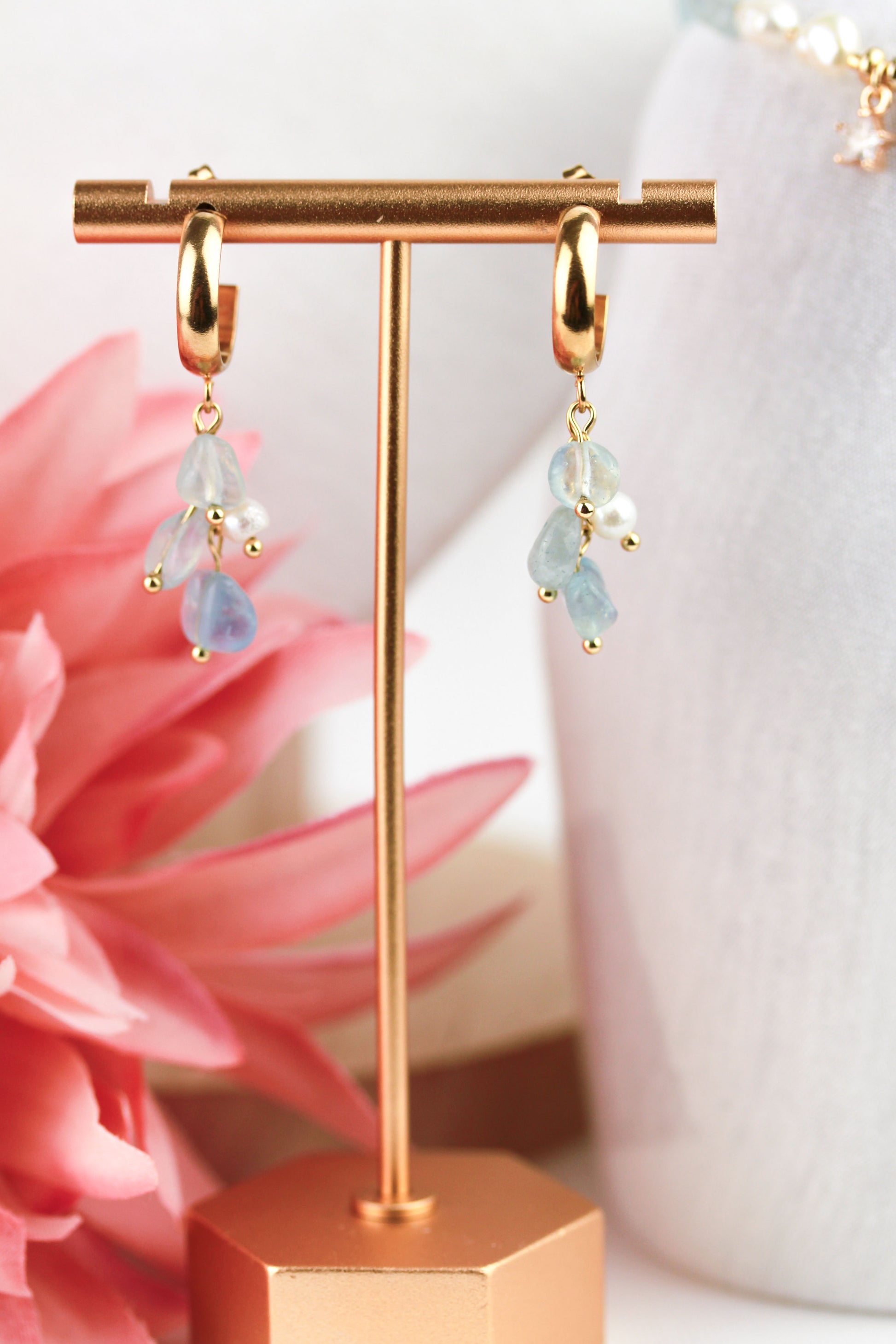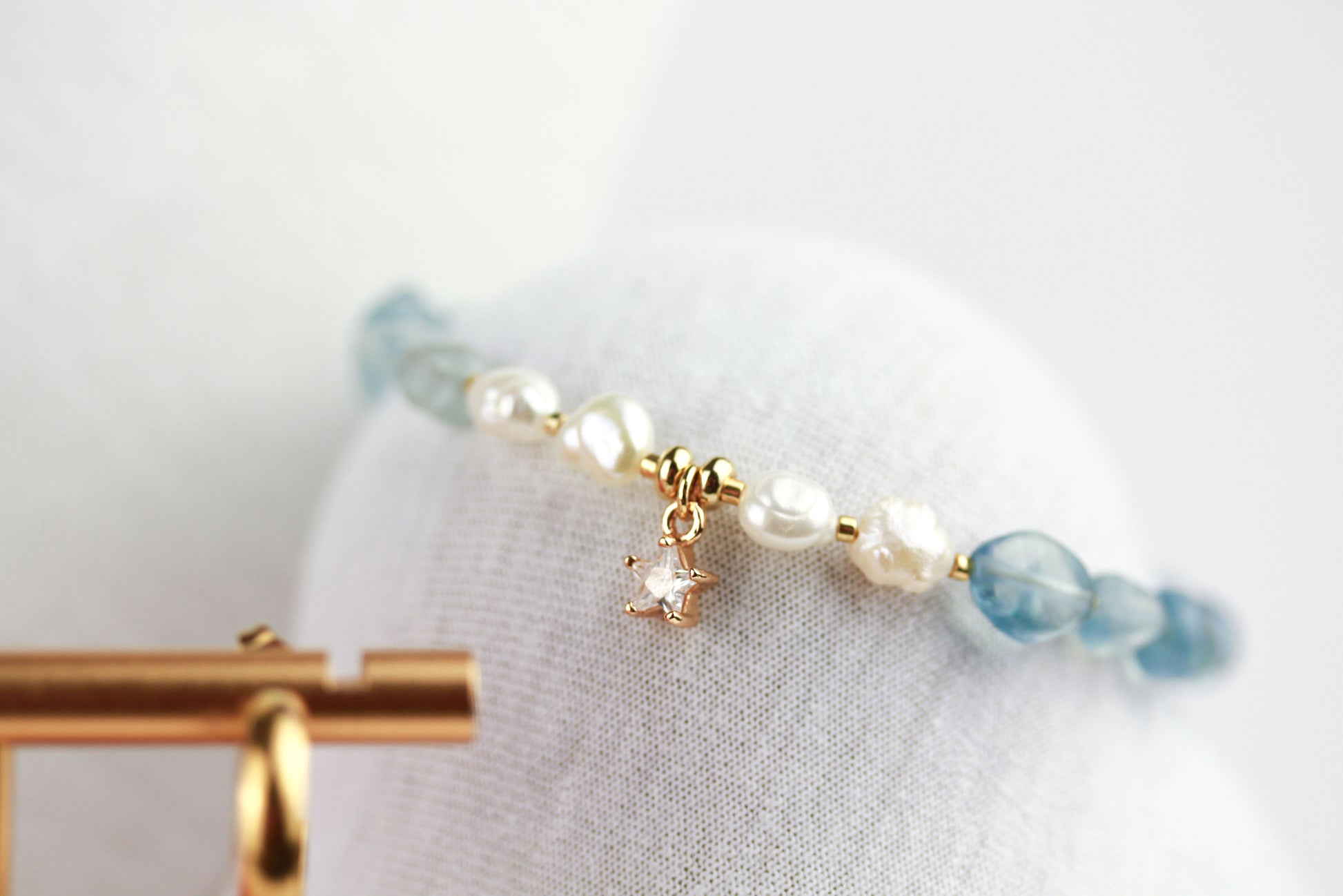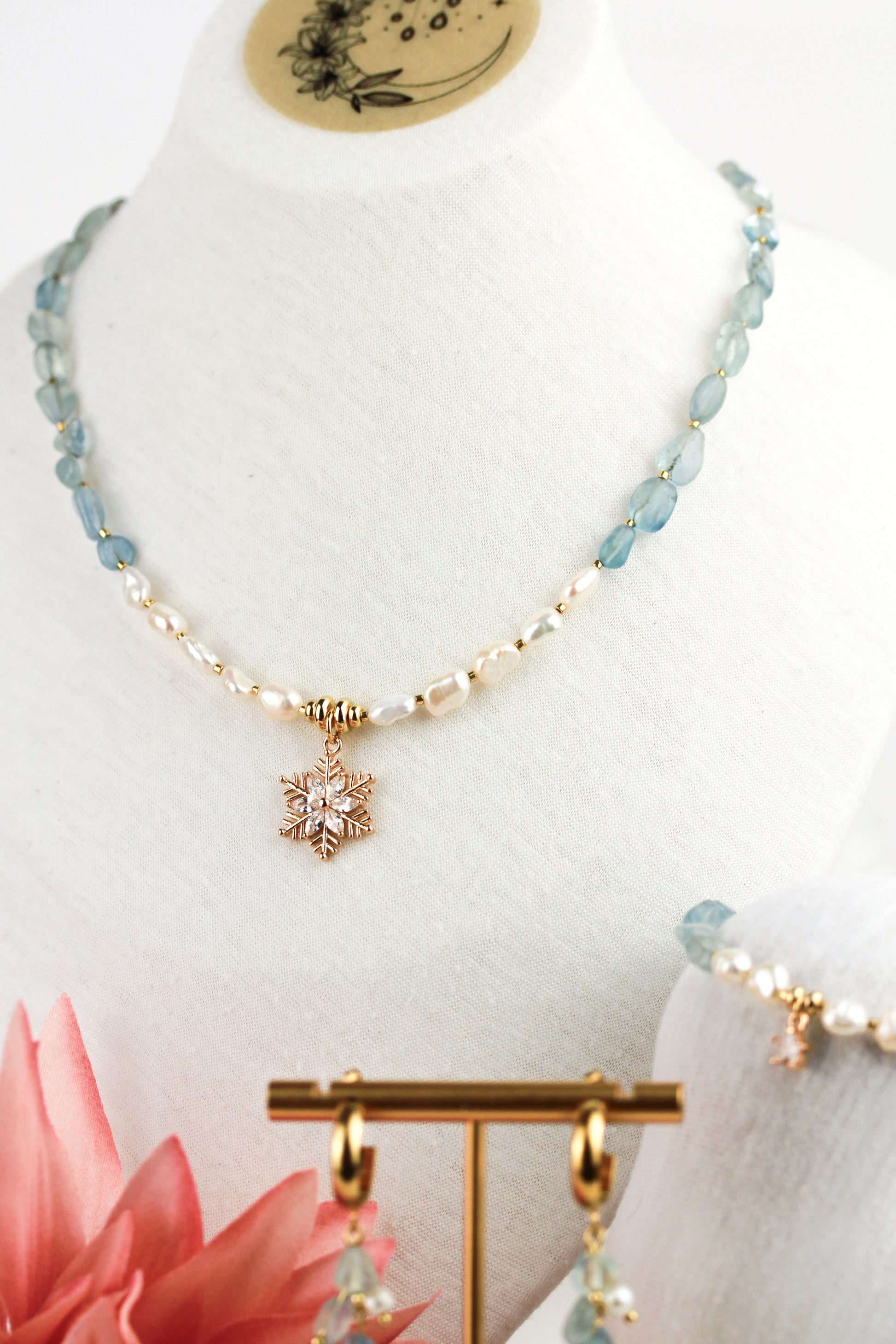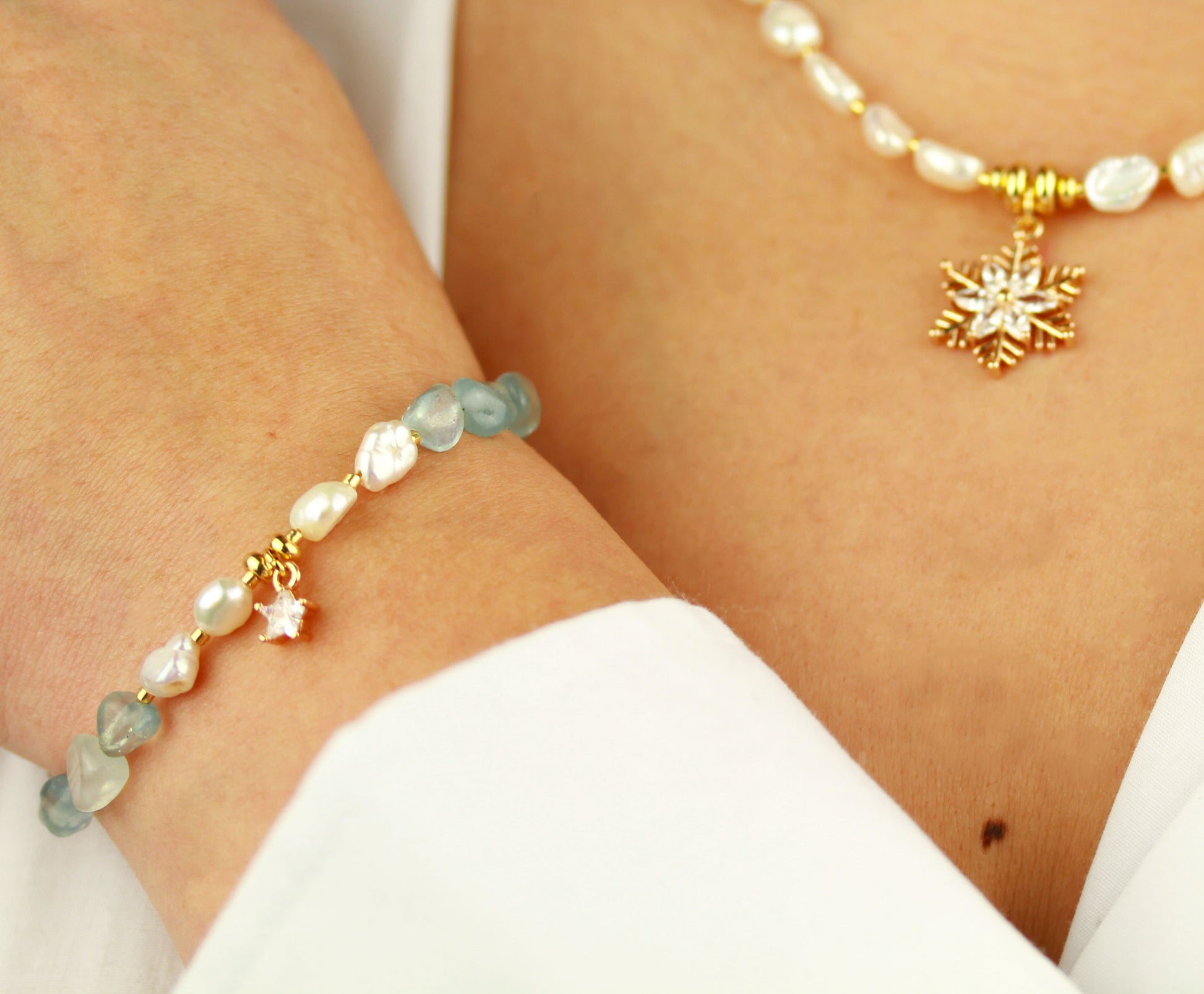 Aquamarin & Süßwasserperlen Schmuckset mit Zirkonia – Handgefertigt