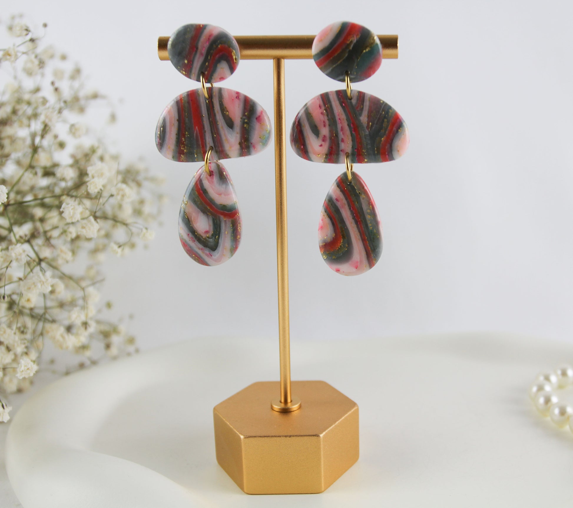 Rosa-Grün Twisted Ohrringe – Elegante handgefertigte Polymer Clay Statement Designs