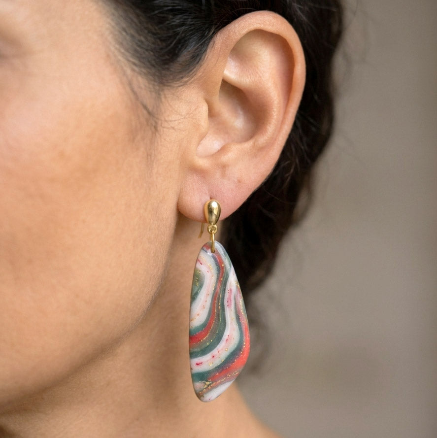Rosa Grün Twisted Ohrringe – Elegante handgefertigte Polymer Clay Statement Designs