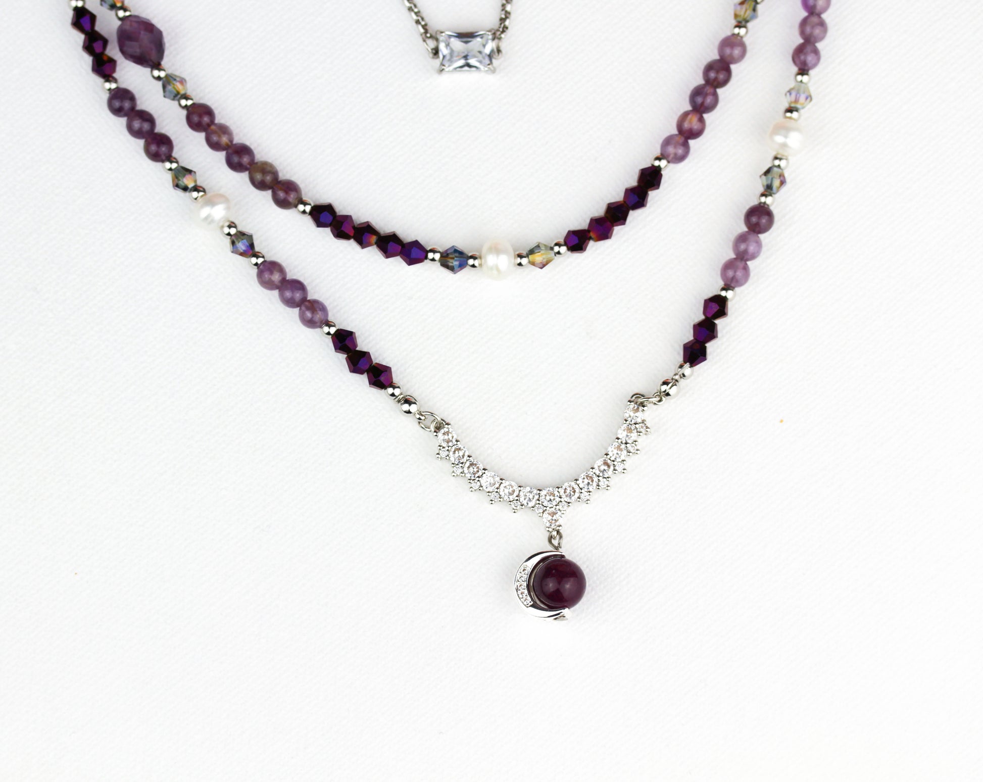 Amethyst & Süßwasserperlen Layering Schmuckset – Handgefertigt