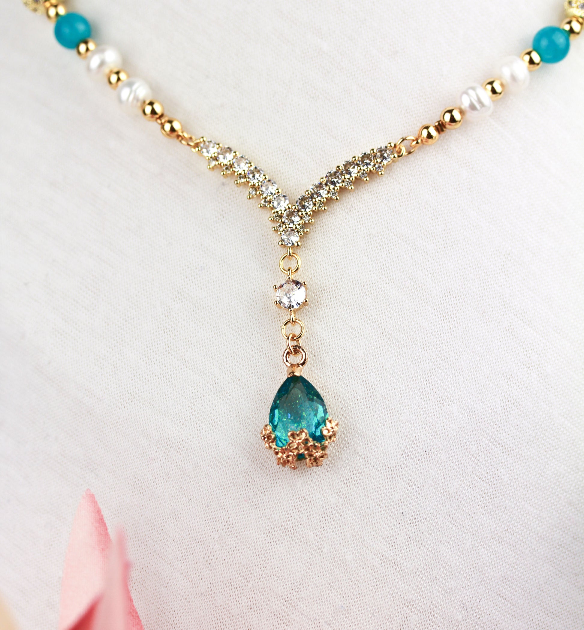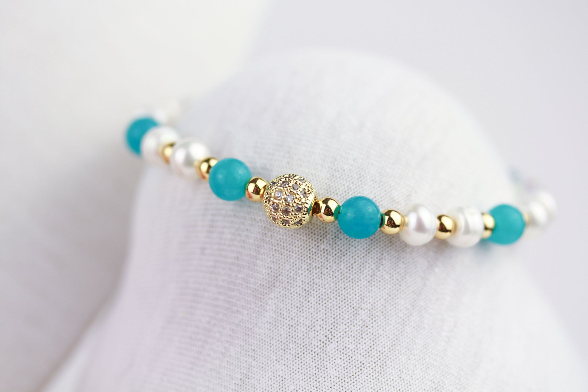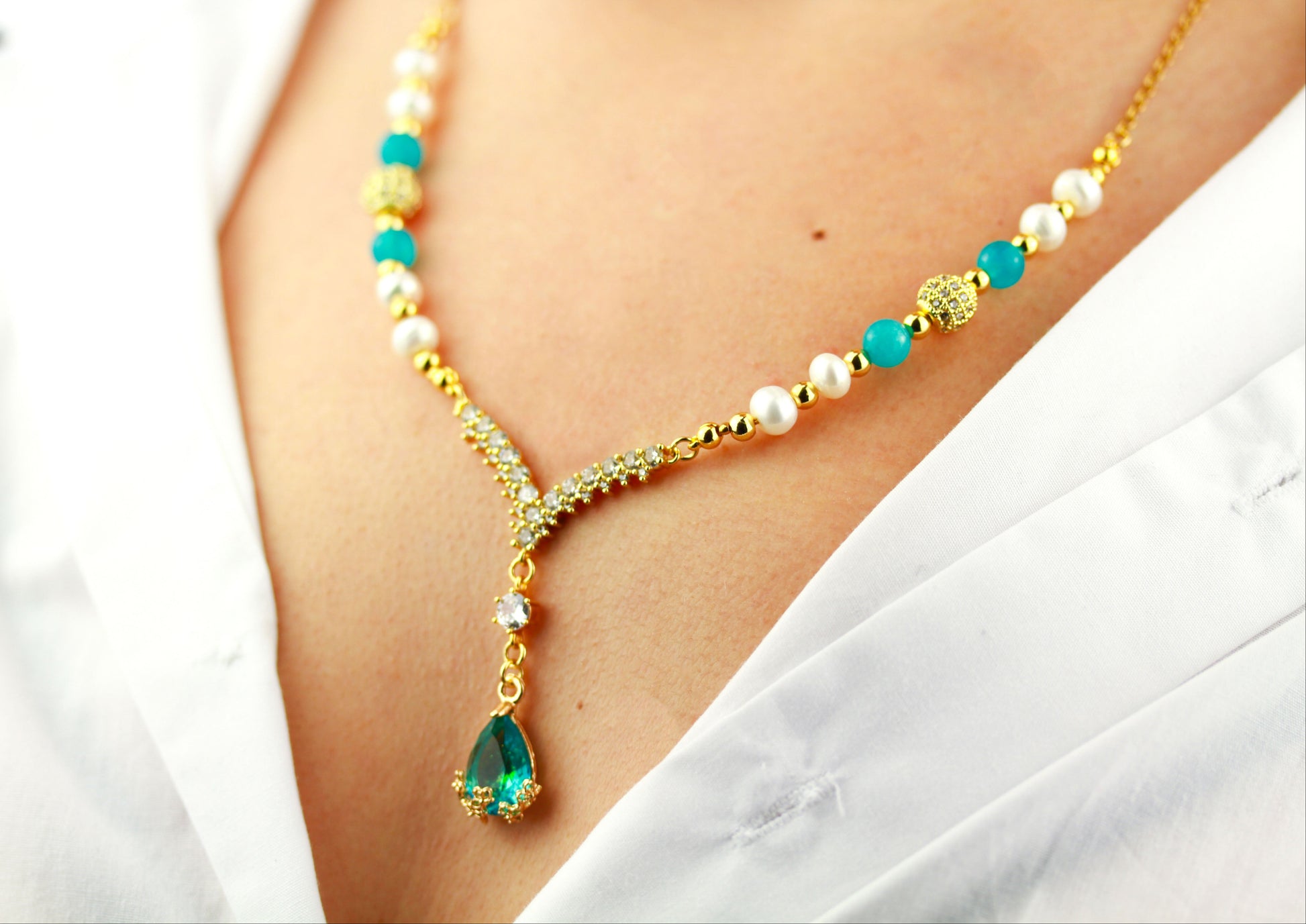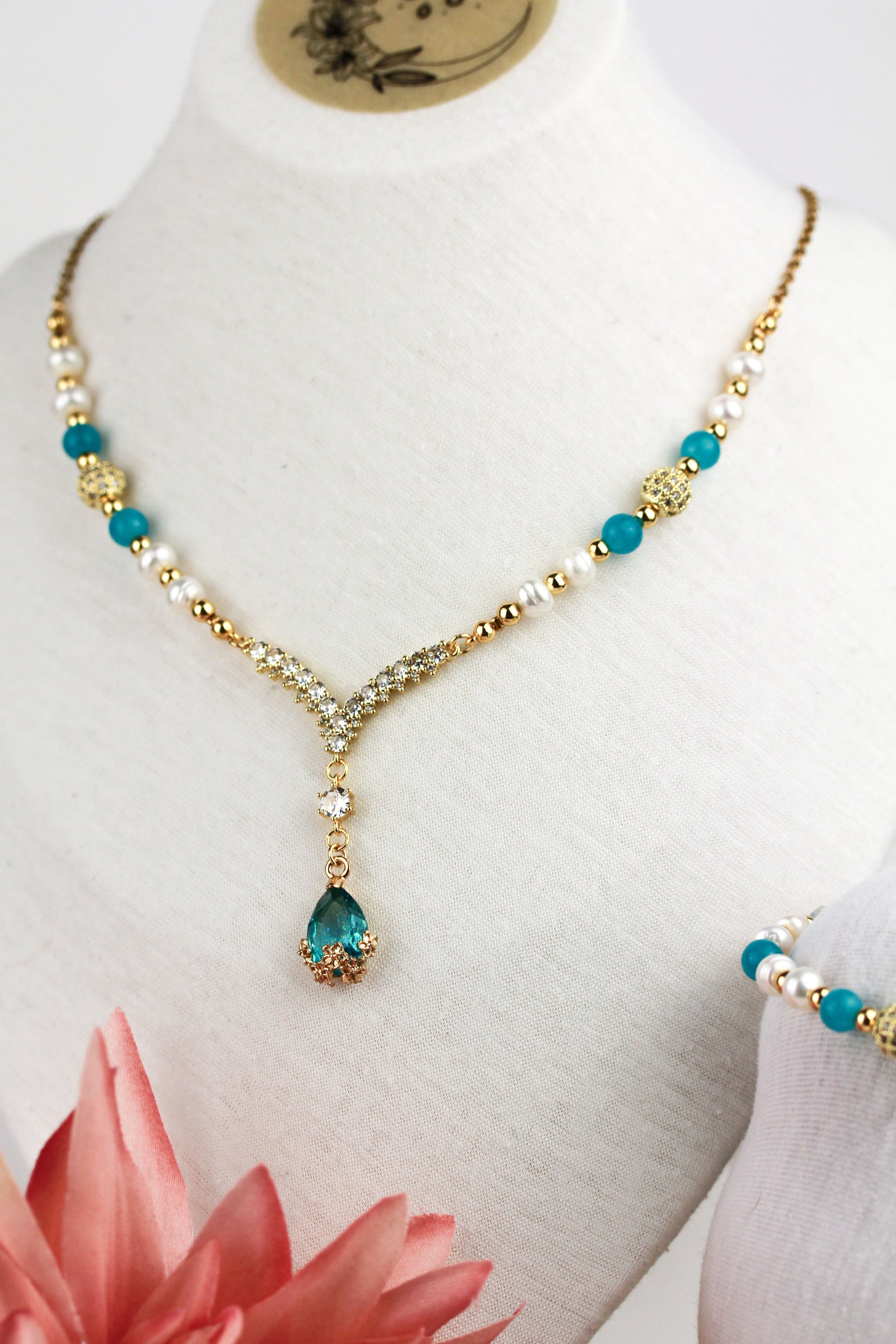 Amazonit und Süßwasserperlen Schmuckset – Perlenkette & Armband | Handgefertigt