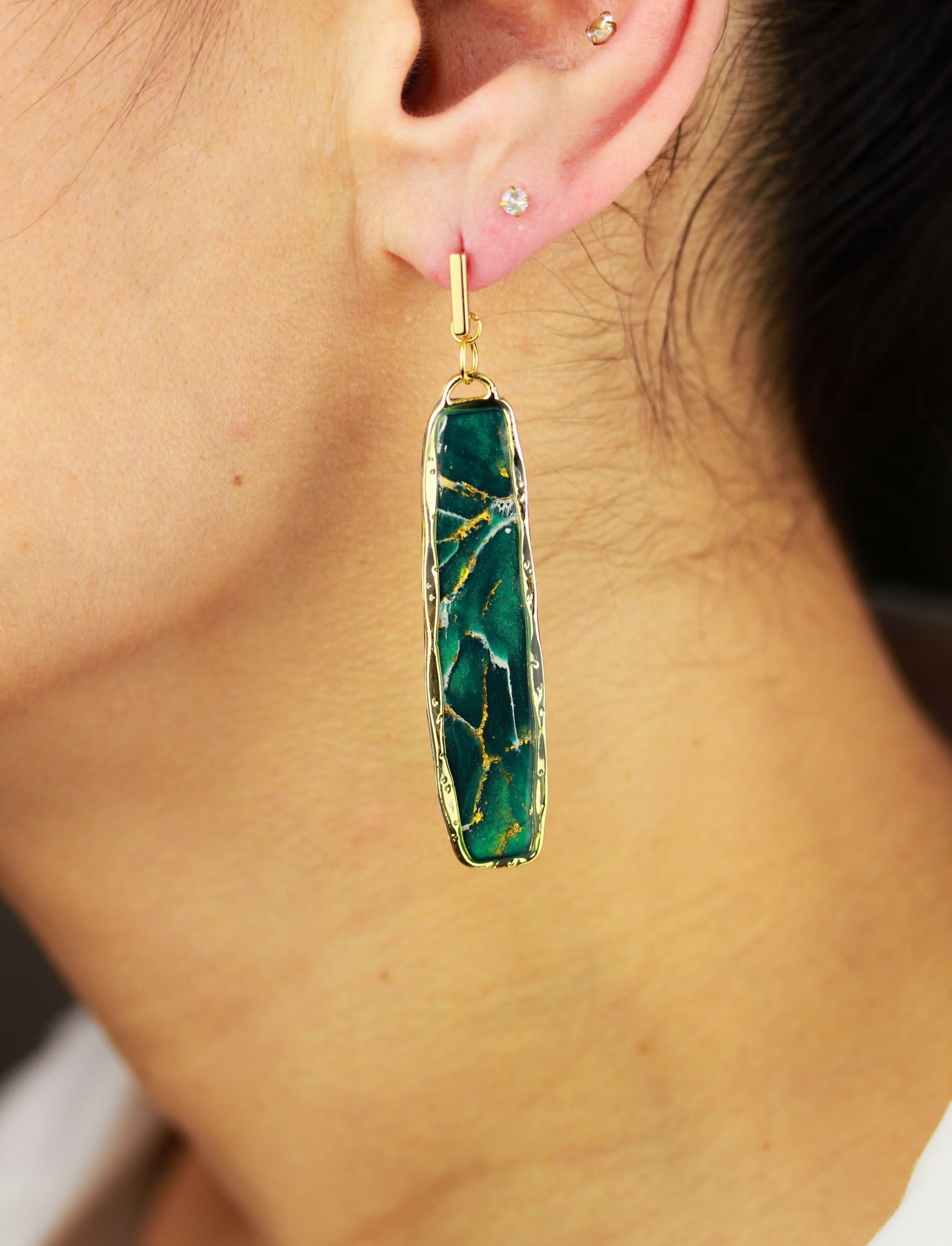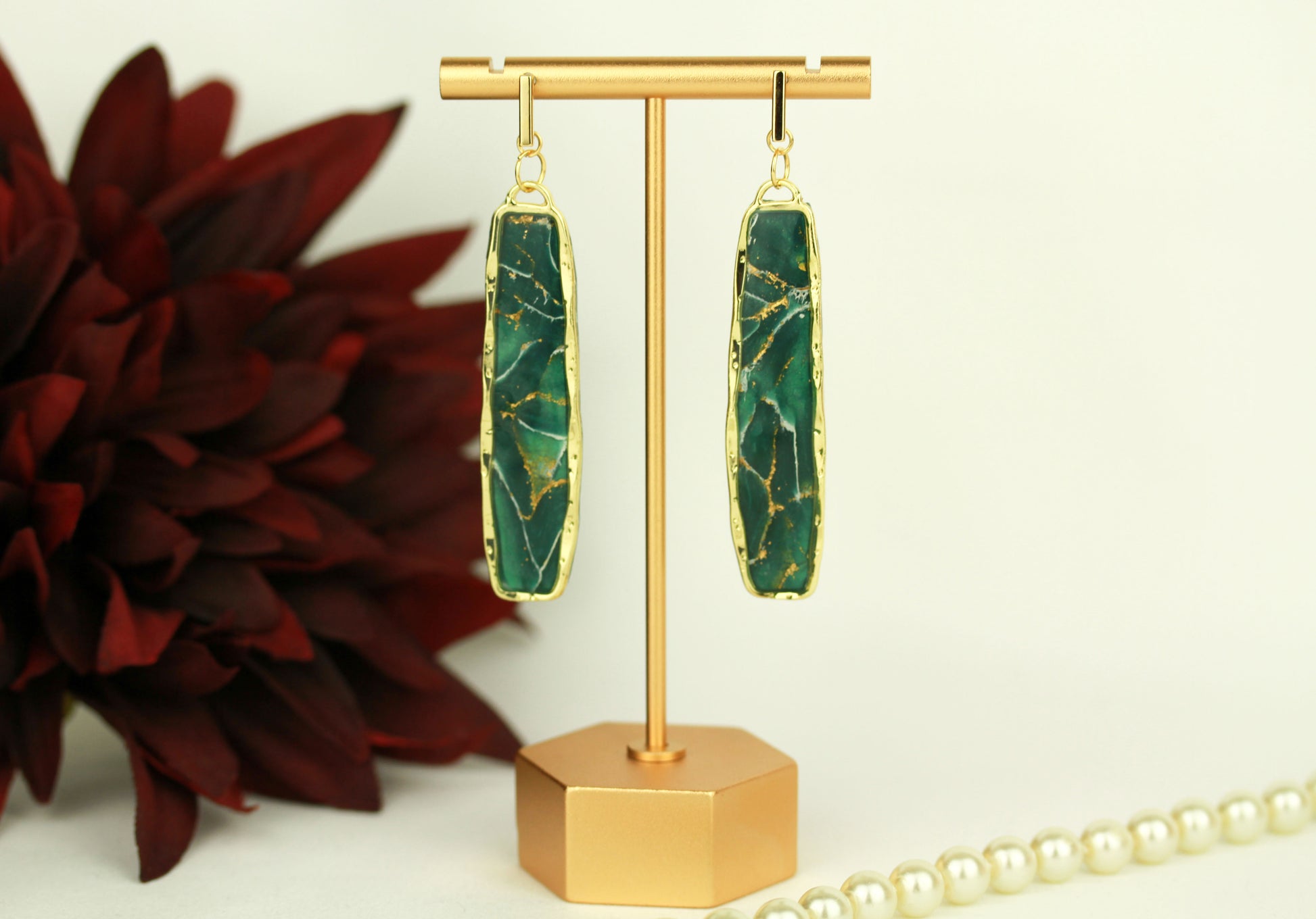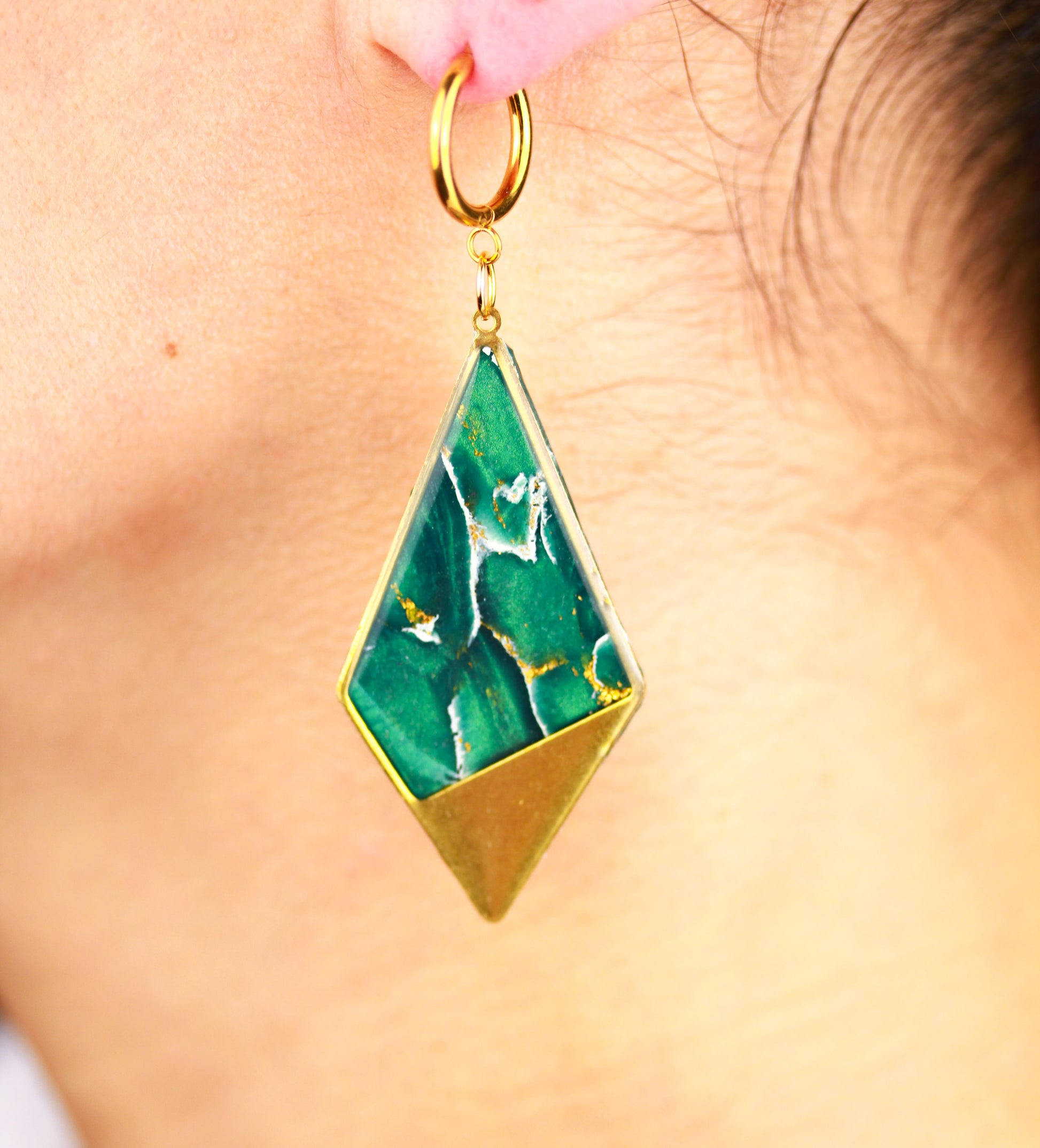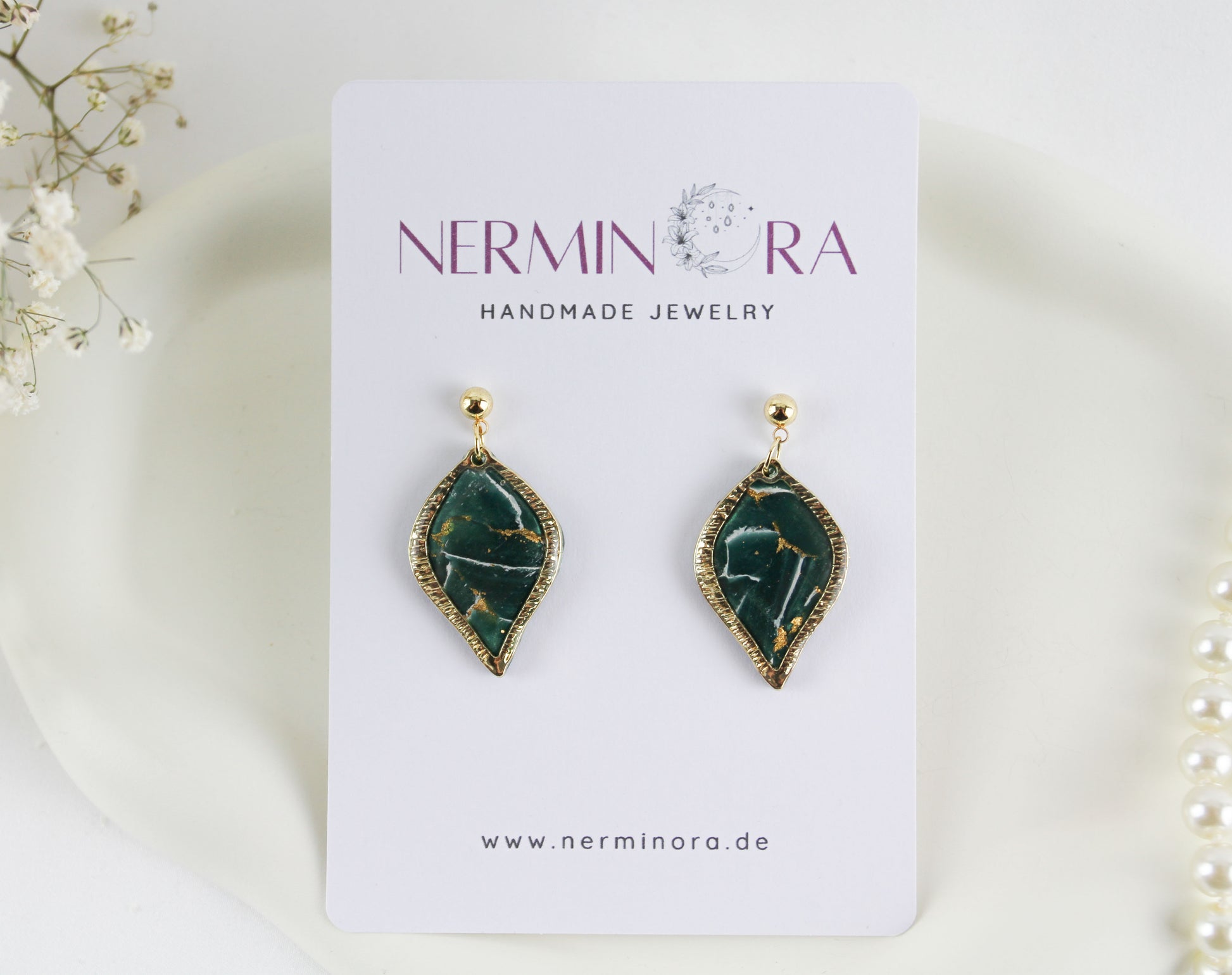 Grüne natursteininspirierte Statement Ohrringe – Kollektion Aureleaf | Handgemacht