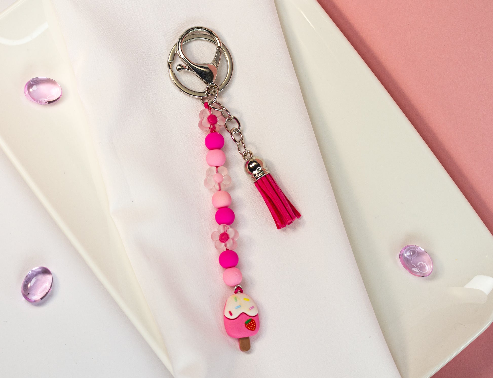 Happy Creamy Schlüsselanhänger - Perlen, Charm & Quaste