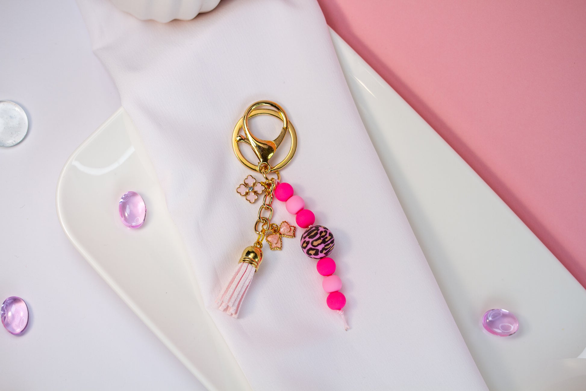 Happy Pink Leo Schlüsselanhänger - Perlen & Quaste