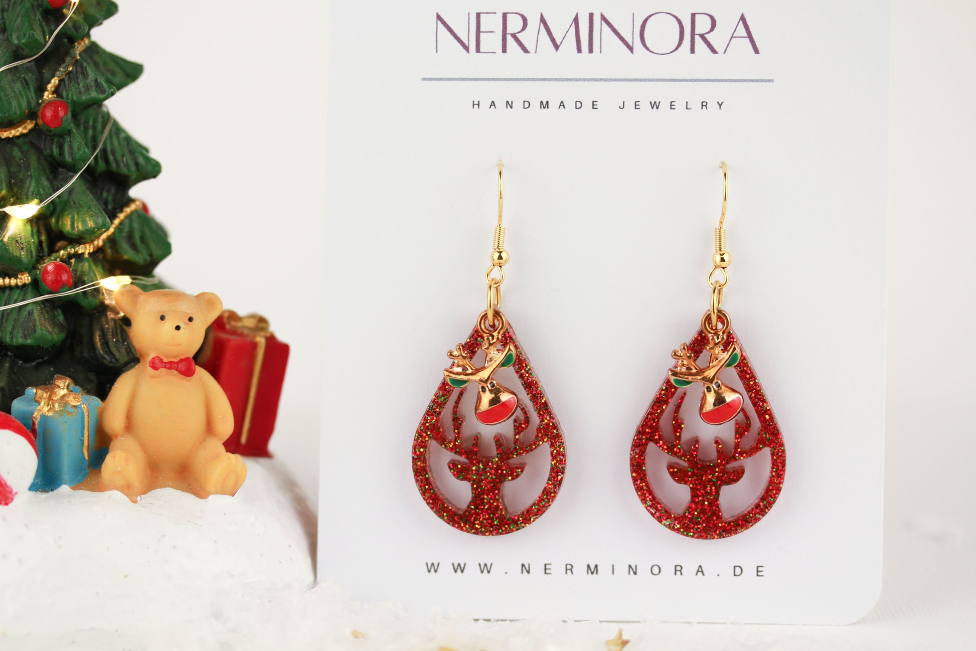 Rote Weihnachts Ohrringe mit Anhänger – Handgefertigte Harzschmuck