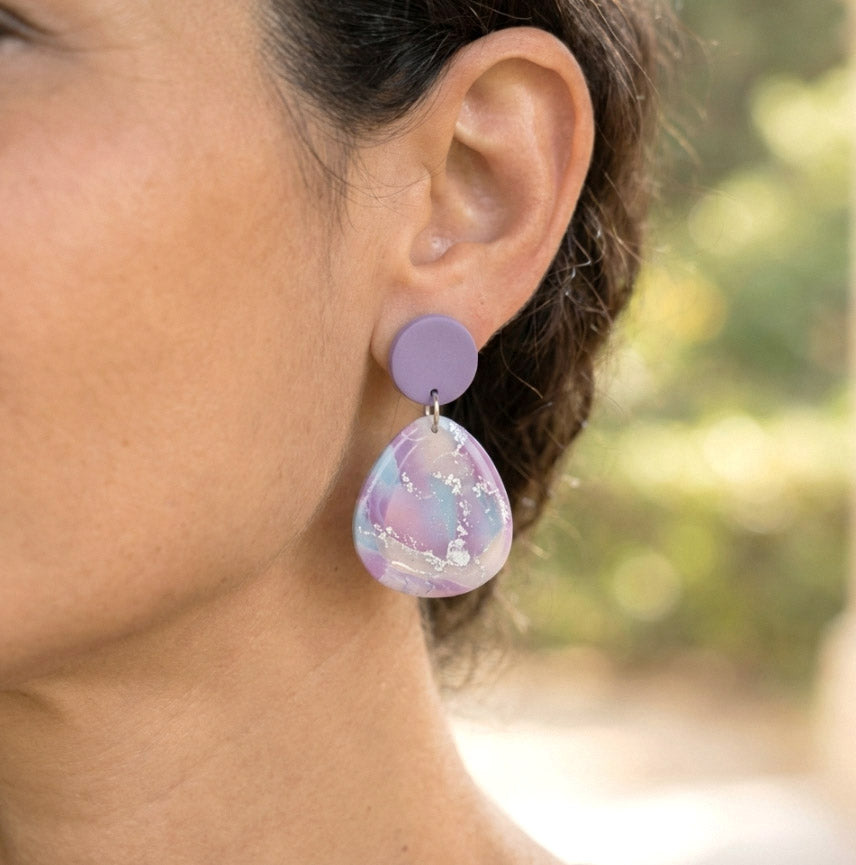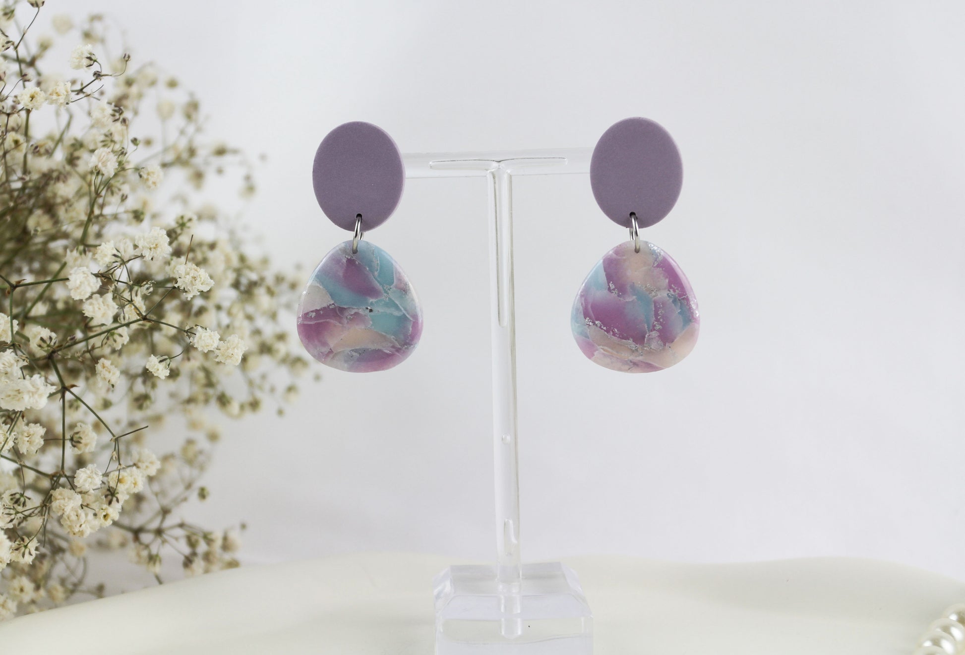 Pastell Lila-Blau Ohrringe – Handgefertigte Polymer Clay Statement Kollektion
