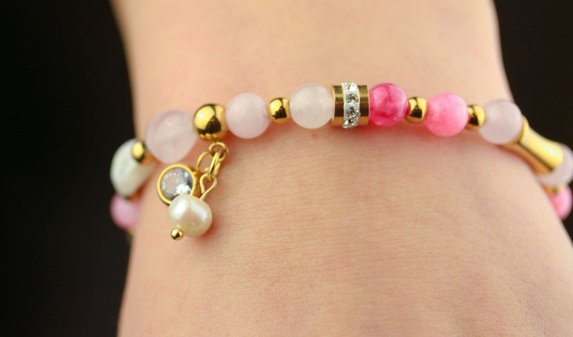 Rosenquarz Naturstein Armband – Handgefertigtes Perlenarmband