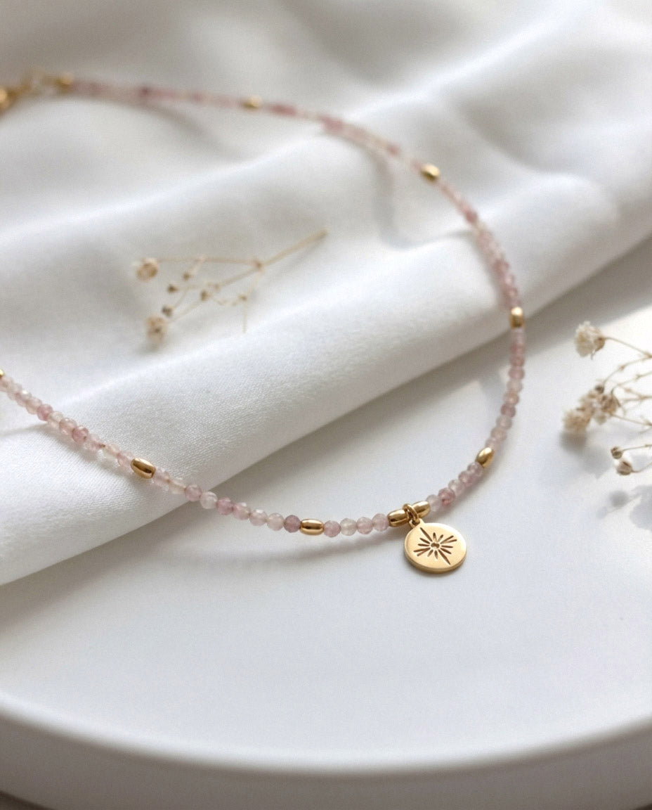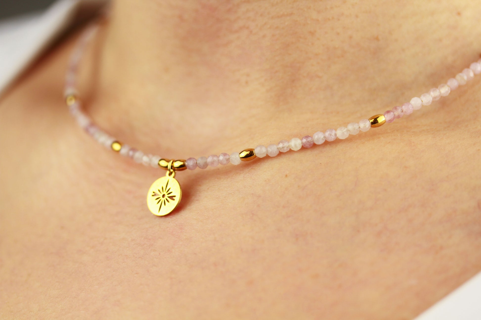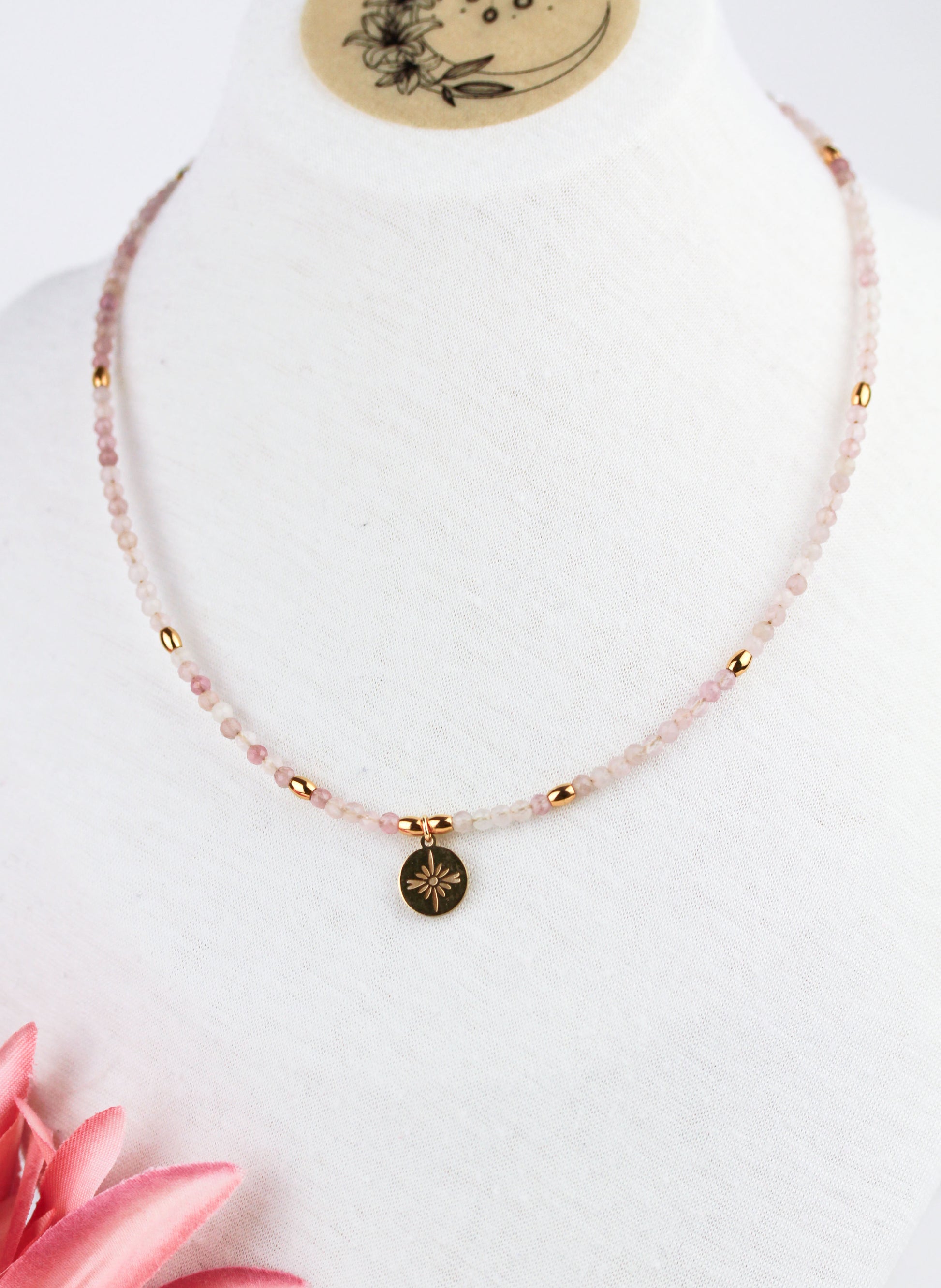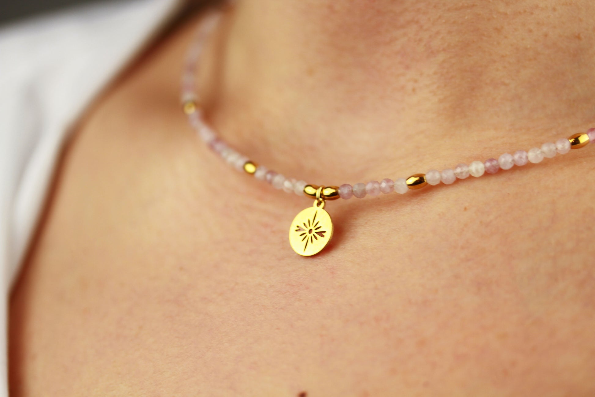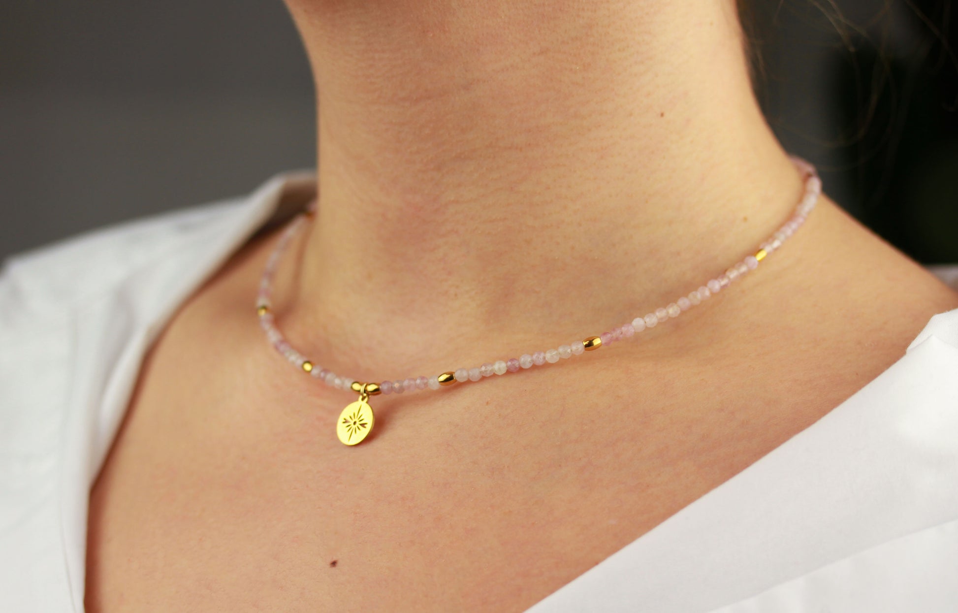 Rosenquarz Naturstein Perlenhalskette – Handgefertigt