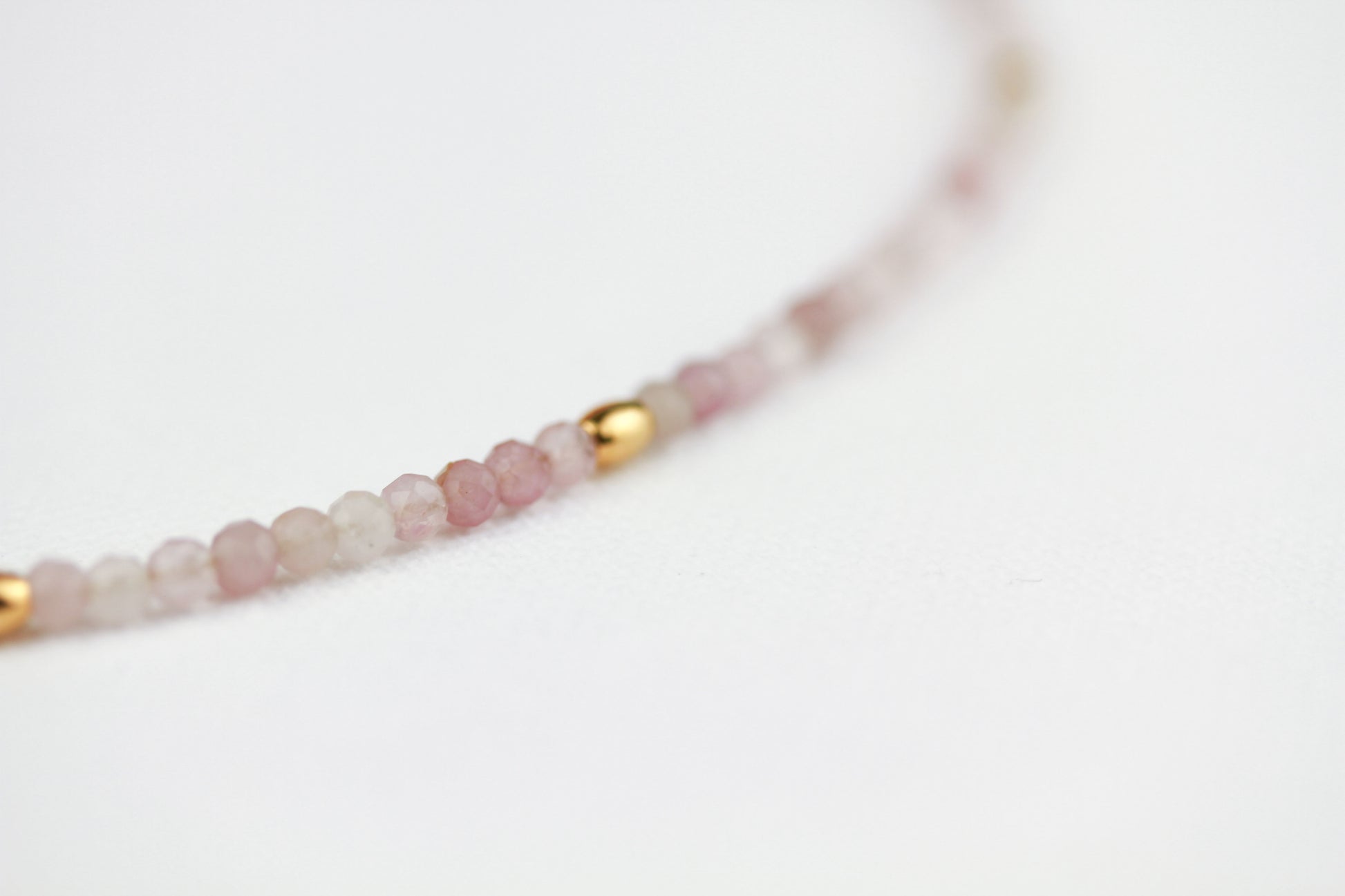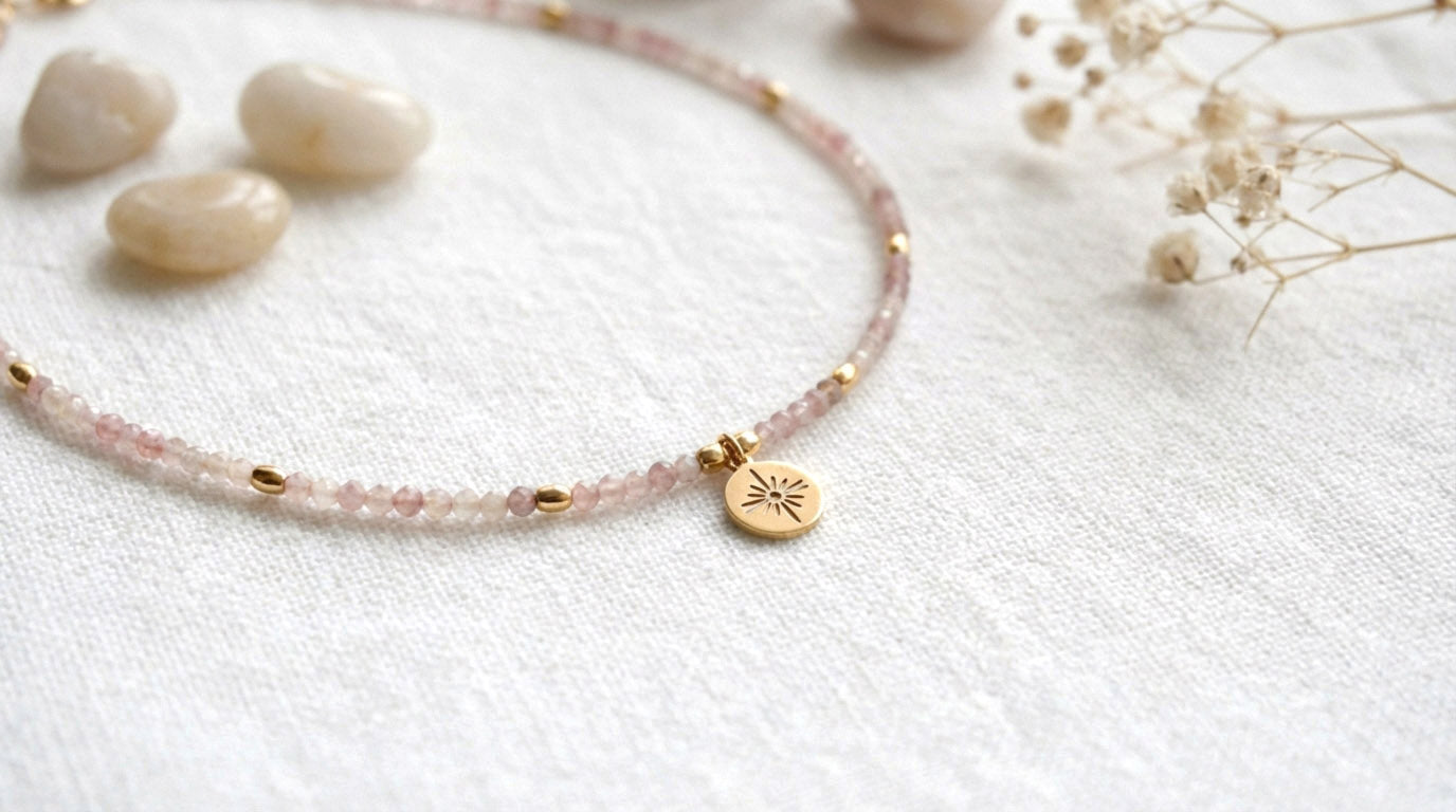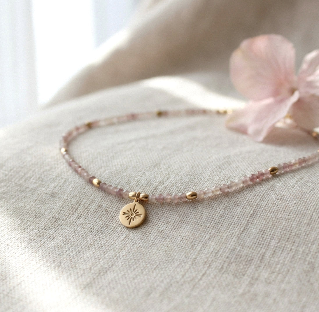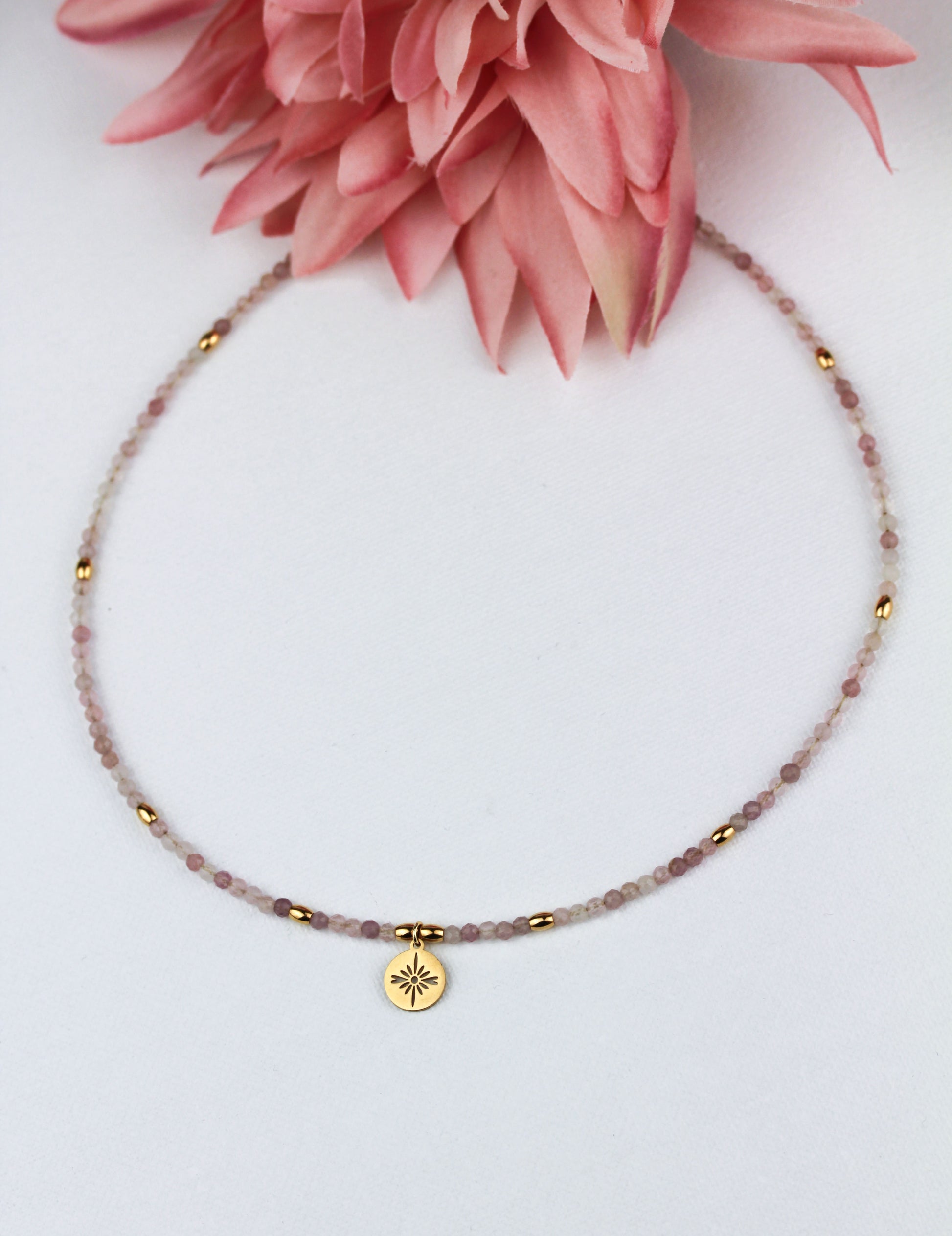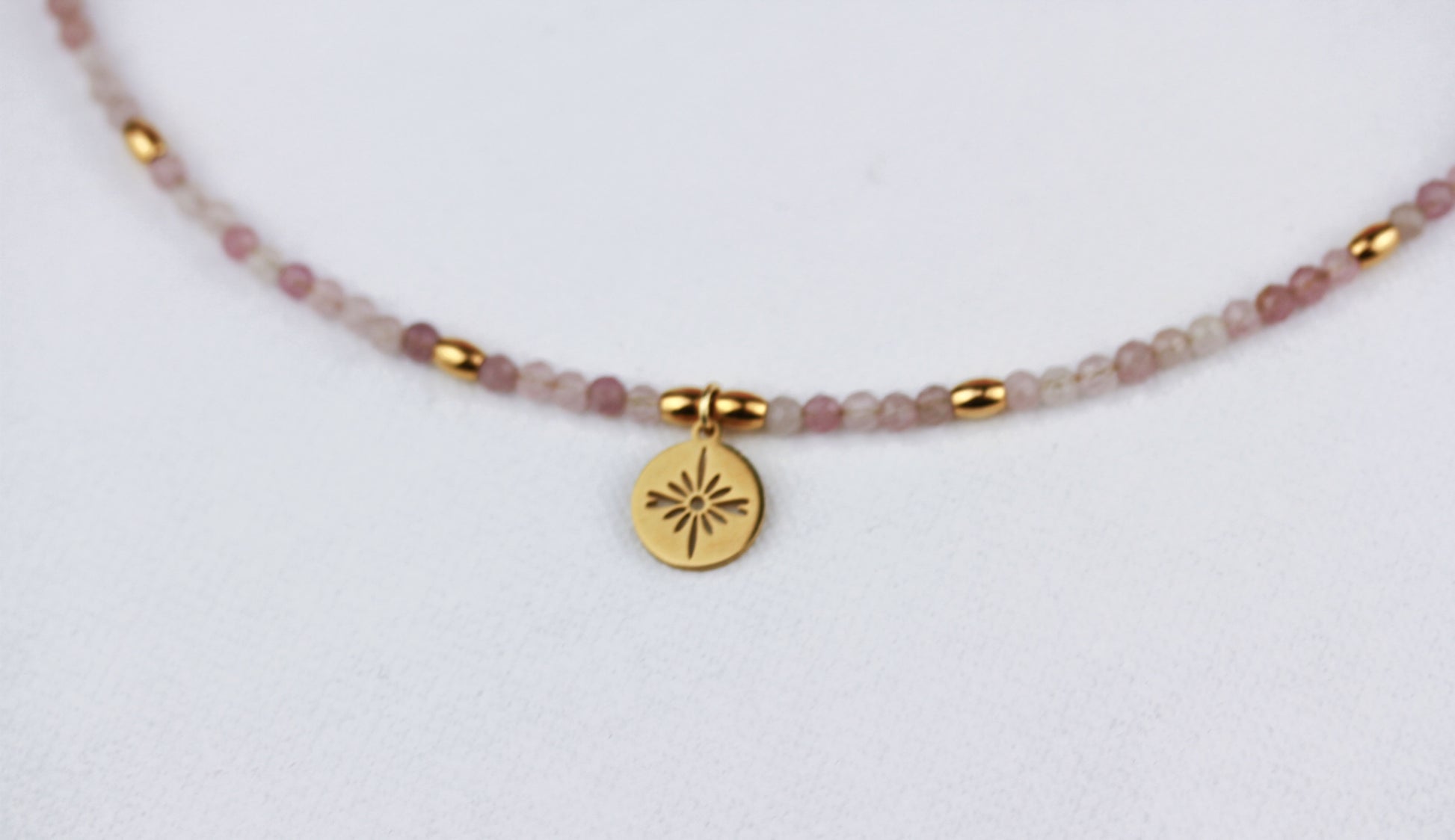 Rosenquarz Naturstein Perlenhalskette – Handgefertigt