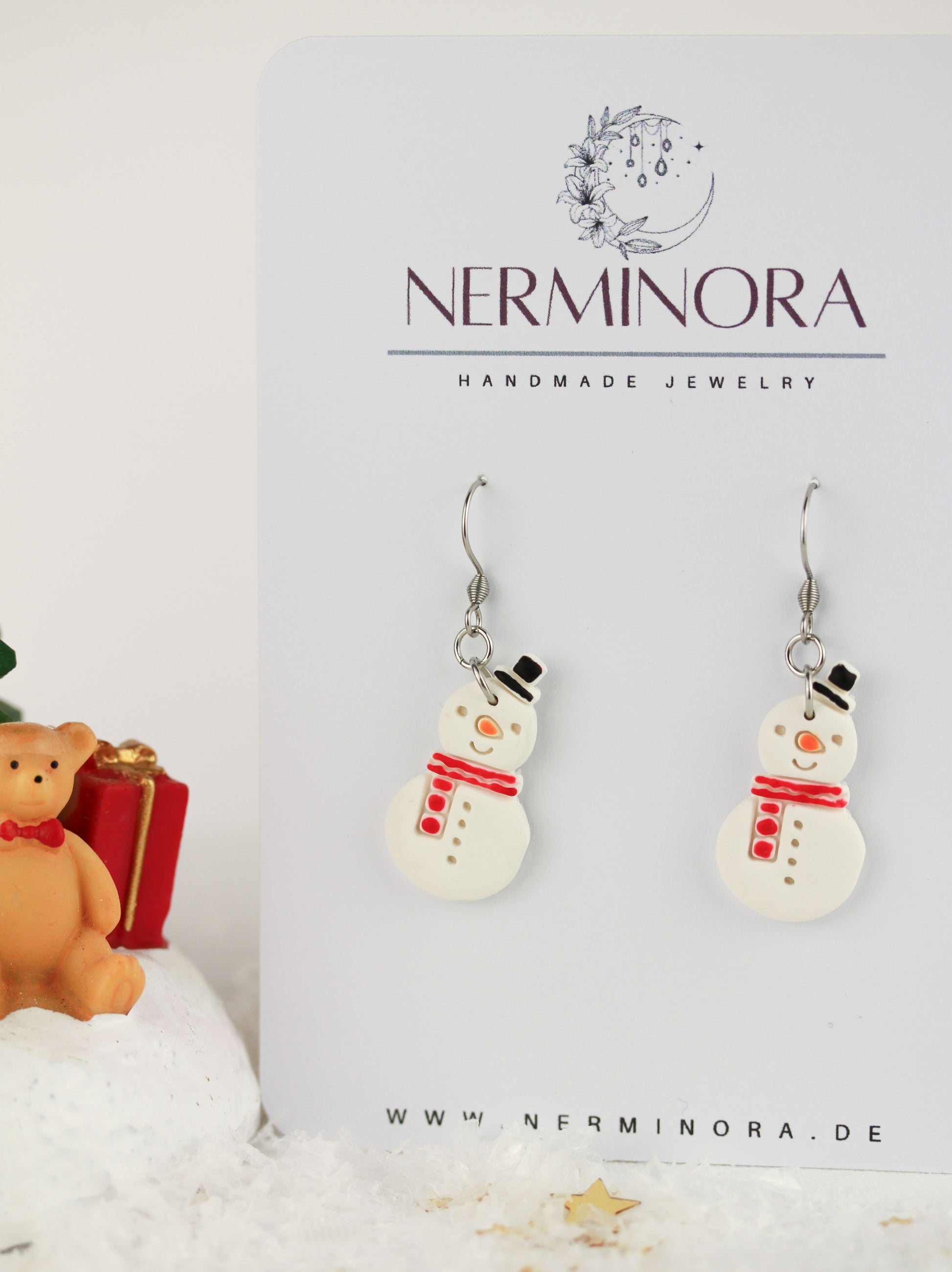 Niedliche Schneemann-Ohrhänger aus handgefertigter Polymer Clay mit winterlichem Charme. Diese verspielten Statement-Ohrringe verbinden süße Verspieltheit mit raffinierter Handwerkskunst und bringen frostigen Glanz in jeden Look. Jedes Paar ist ein Unikat, das die Magie verschneiter Tage einfängt.