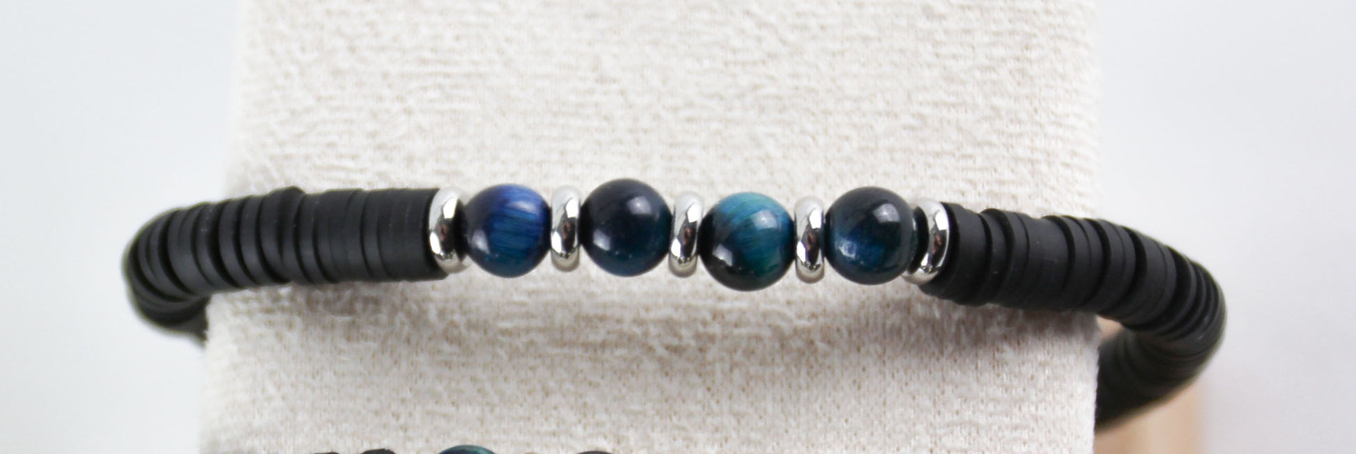 Herrenarmband – Schwarze Katsuki & Tigerauge Natursteine | Maskulines Handmade Perlenarmband