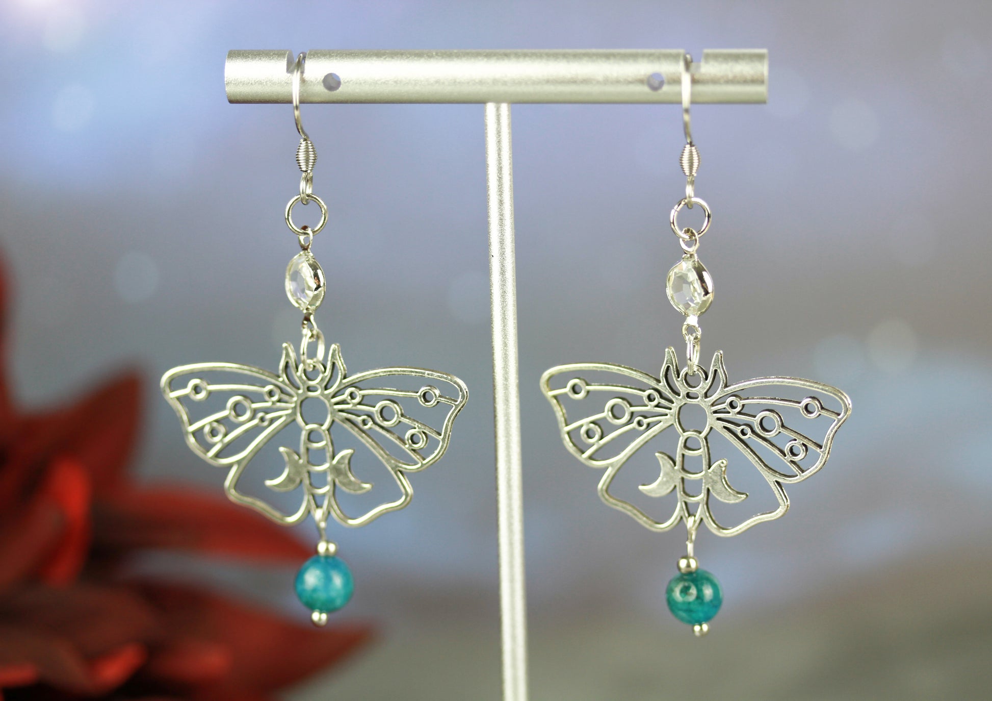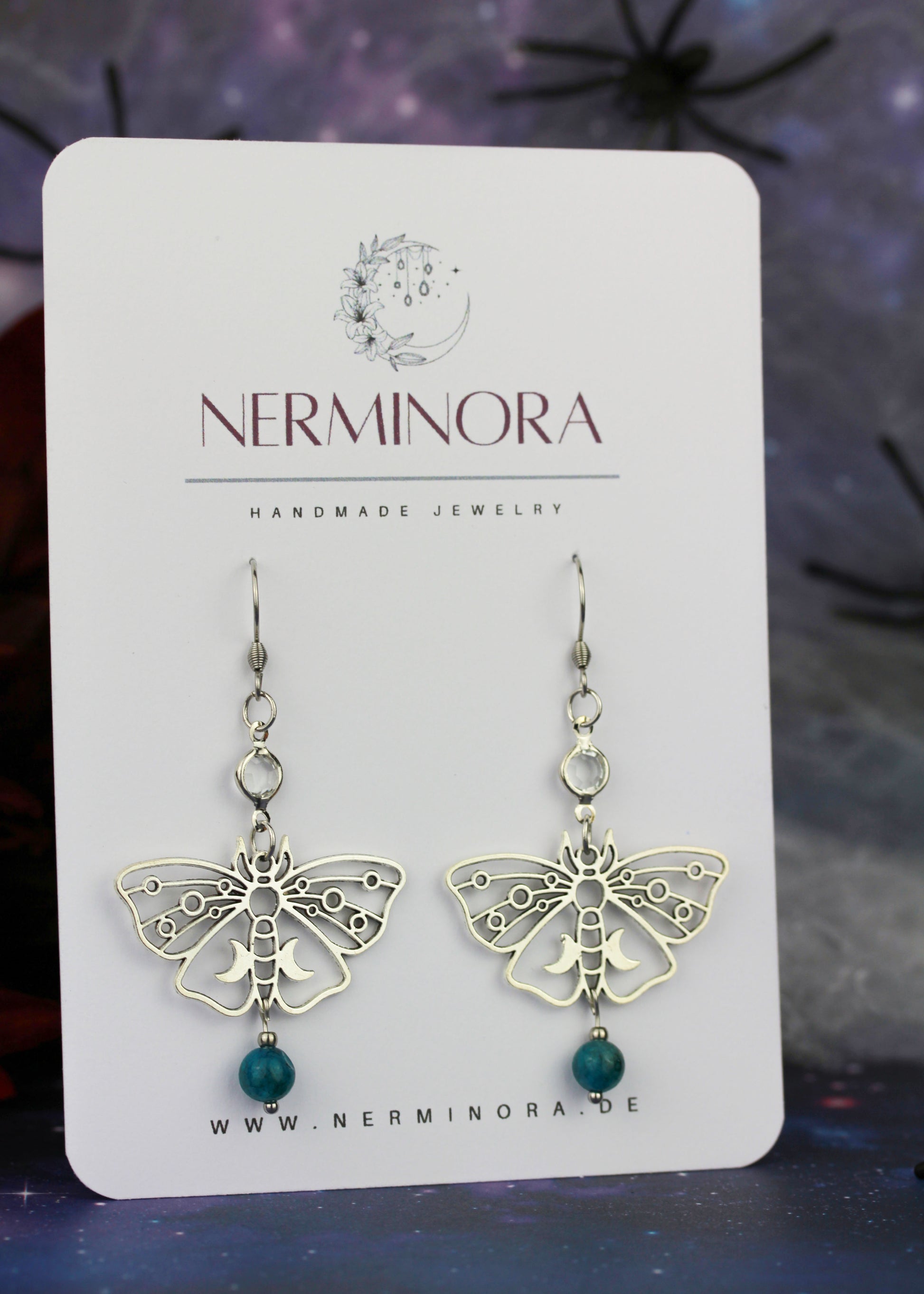Silberne Butterfly Ohrringe mit blauen Natursteinperlen – Amberwing Kollektion