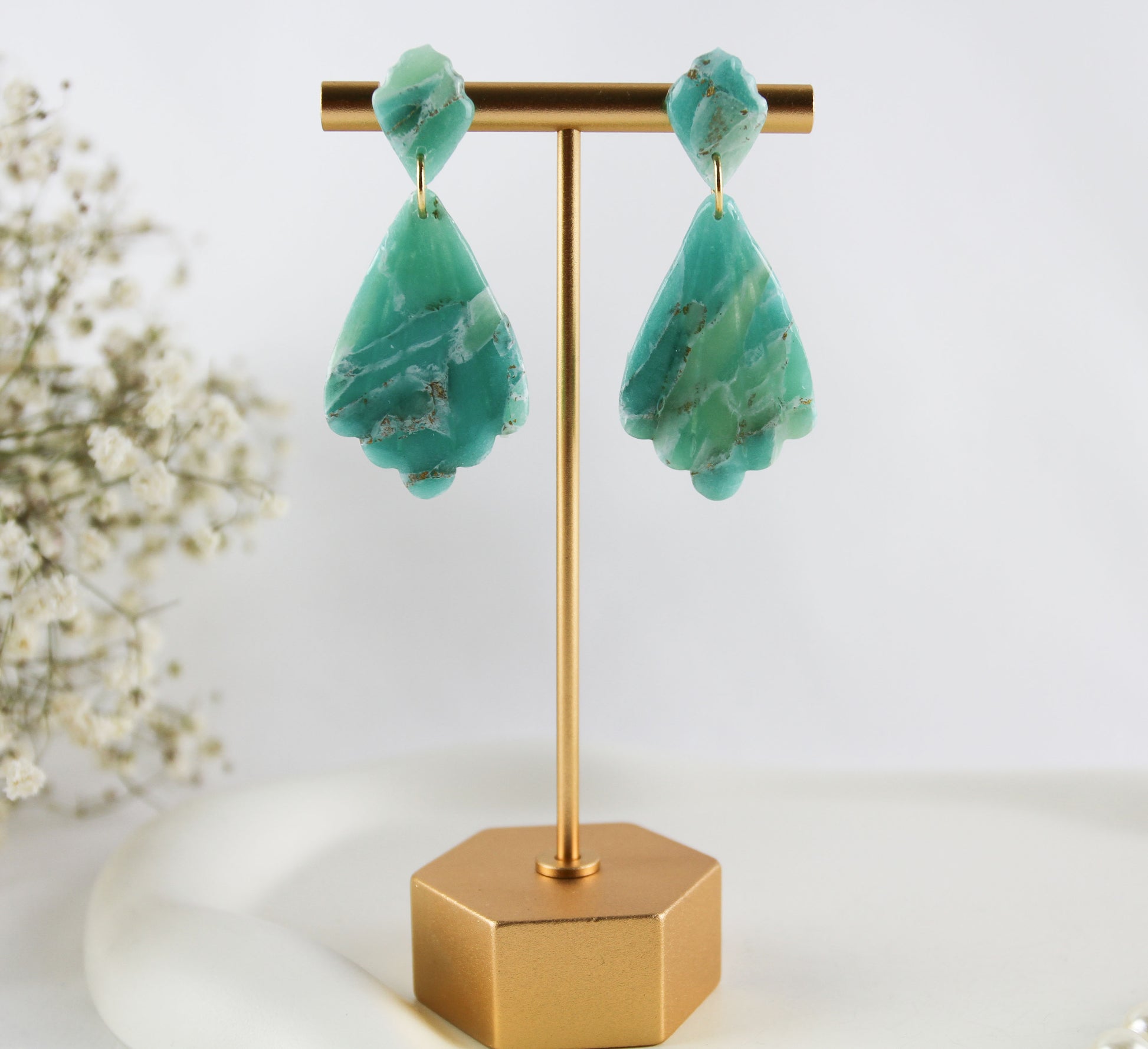 Entdecken Sie die maritime Eleganz unserer türkisfarbenen Sommer-Ohrring-Kollektion, inspiriert von Meer und Naturstein. Fünf individuelle Designs aus hochwertigem Polymer Clay verleihen jedem Outfit eine frische, raffinierte Note – perfekt für stilbewusste Sommermomente.