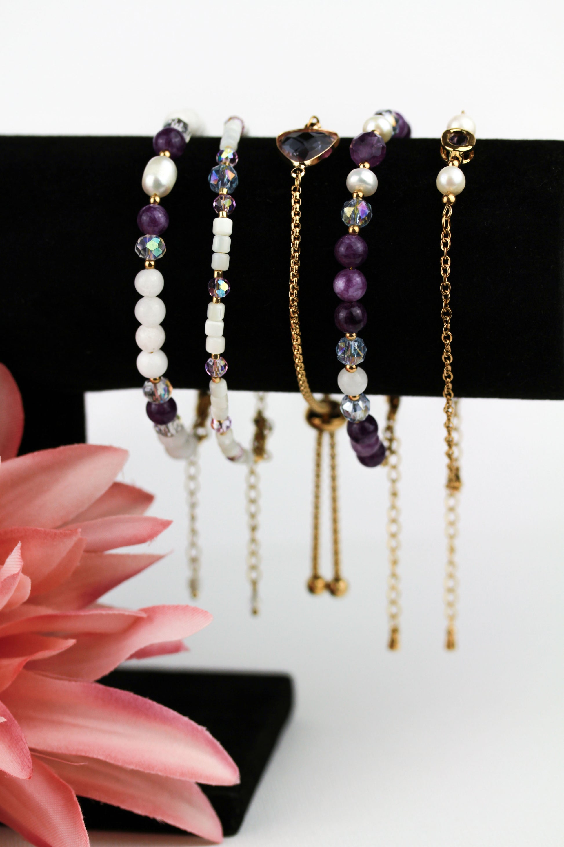 Amethyst & Muschelperlen Armband Set – 5-teilig | Handgefertigt | Spiritualität und inneren Ruhe